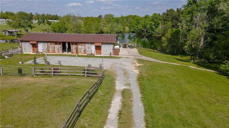 Welcome to High Cotton Acres, a wonderful retreat from the hustle and bustle of life in the city. Peace and quiet on this ten acre parcel is what you notice first. The party barn overlooks your pond which is mostly on this tract but, a small portion on the north side is shared with a neighbor. Great areas to fish from and several pastures if you want to bring your horses. The barn has several stalls and is setup as a wedding venue currently. The older home up front is not habitable and could possibly be negotiated to be removed. Some have expressed interest in keeping it. The owner has put A LOT of work in building this little paradise and while you do a have septic and well you could easily remove the older home and put your brand new home in it's place.So whether you are looking for a small horse farm, hobby farm, or homestead this could be it. Only approximately 15 min from Burlington, 19 min from Elon, and 39 min from downtown Greensboro. BY APPOINTMENT ONLY. NO trespassing.