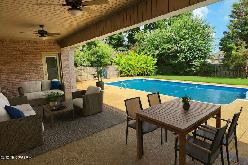 This home was originally built as a custom home with a circle drive. It features 3 bedrooms and 2 Bathrooms on the Main level and 1 bedroom with a full bath and a bonus on the upper level. The bonus could be used as a fifth bedroom. The home has a large living room a hearth room off the kitchen and a large dining room. With over 3,300 square feet of living space, this home has plenty of room to entertain. The master suite has an amazing walk-in shower. The backyard has a beautiful in-ground pool and a large covered porch.