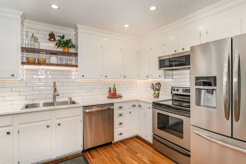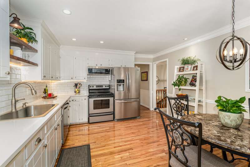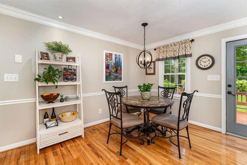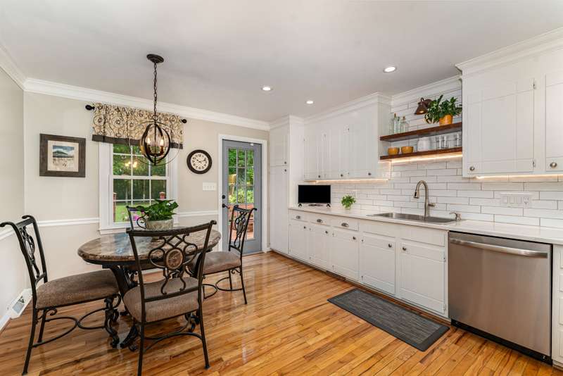 Nestled in a peaceful, mountain-like setting, this charming brick and vinyl home offers comfort and style with no HOA. Enjoy a living area with a fireplace, the remodeled 2022 kitchen with quartz countertops, updated light fixtures, and recessed lighting. Bathrooms feature granite counters and modern finishes. Beautiful pre-finished wood flooring enhances the kitchen and dining areas, while the basement offers LVP flooring and a storage room feel. Crown molding, replacement windows, and generous closets add extra appeal. Relax on the deck overlooking the serene backyard. Backs up to pasture (open space). Convenient to highways, shopping, dining, Kernersville, Winston-Salem, Greensboro, and High Point. Very convenient to Salem Lake access.