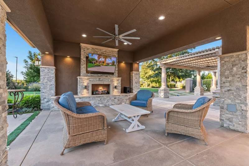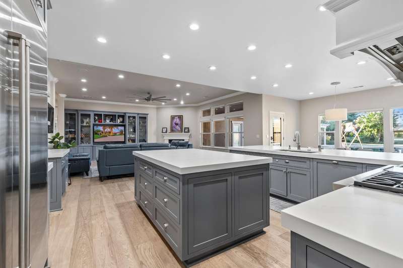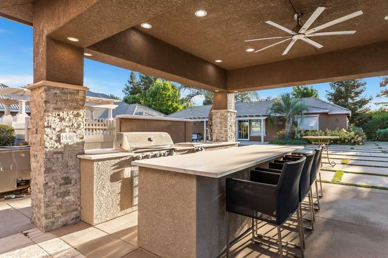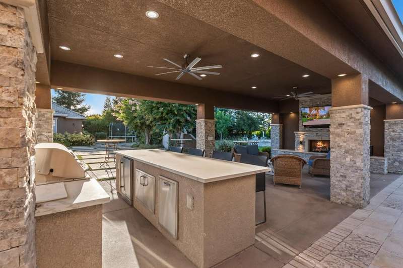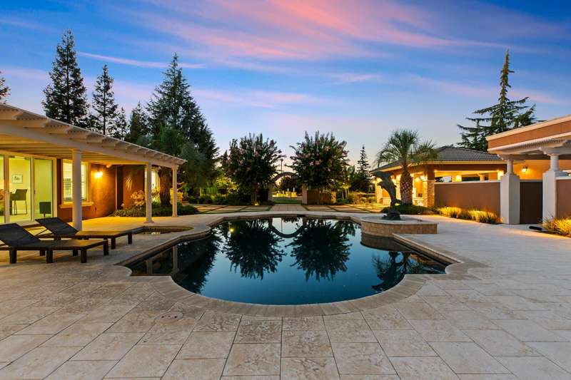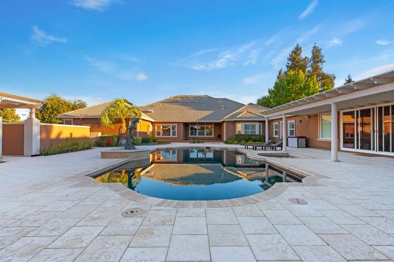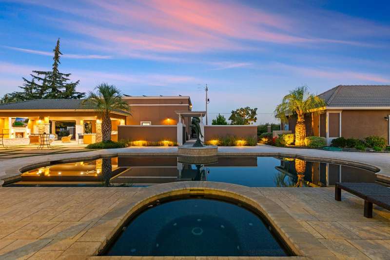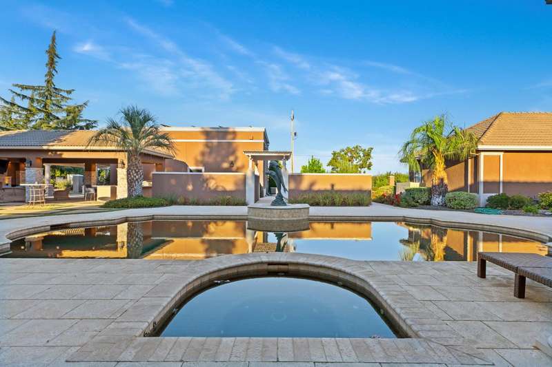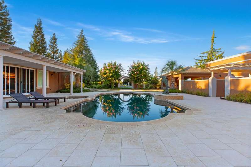 Welcome to 14971 Leroy Avenuean exceptional 2.4-acre gated estate in Ripon's desirable Potter Tract. Recently remodeled inside and out, the property showcases stunning updates to the main residence, guest cabana, and expansive backyard. The 3,656 sq. ft. custom home offers 4 bedrooms, 3 bathrooms, a 4-car garage, and modern upgrades including solar, water softener, and central vacuum. The 2,400+ sq. ft. guest cabana has been fully refreshed and features a full kitchen, sauna, gym, and entertainment space with retractable doors that open to the outdoors. The redesigned backyard is a true showpiece, boasting a resort-style pool with spa and waterfalls, pickleball and basketball courts, multiple fireplaces, and a fully equipped outdoor kitchenperfect for entertaining. A separate 2,500 sq. ft. office building provides the ideal work-from-home solution for business owners, while a spacious workshop adds even more versatility. Complete with designer touches throughout, this estate blends luxury, recreation, and everyday functionality in one private retreat.