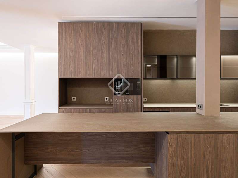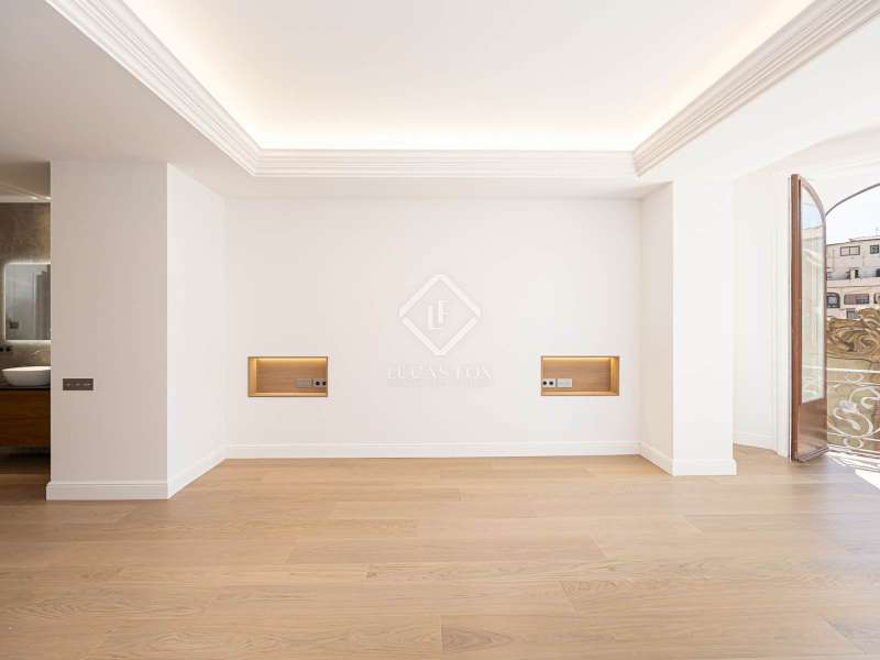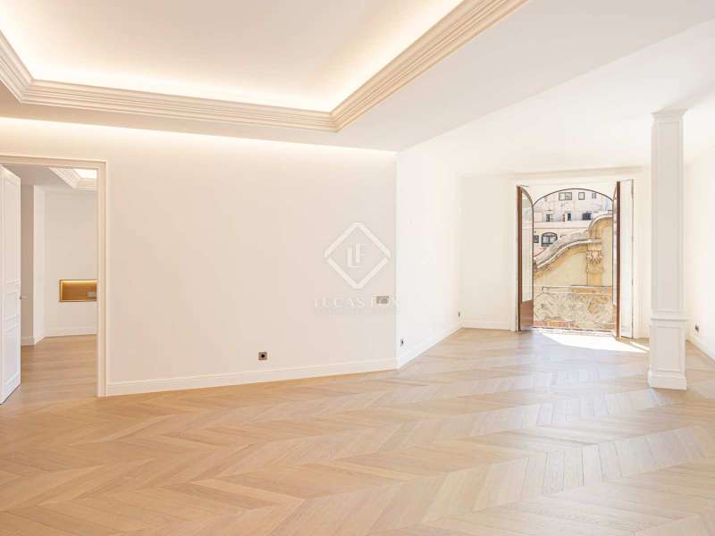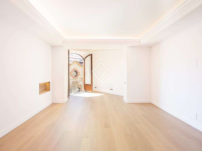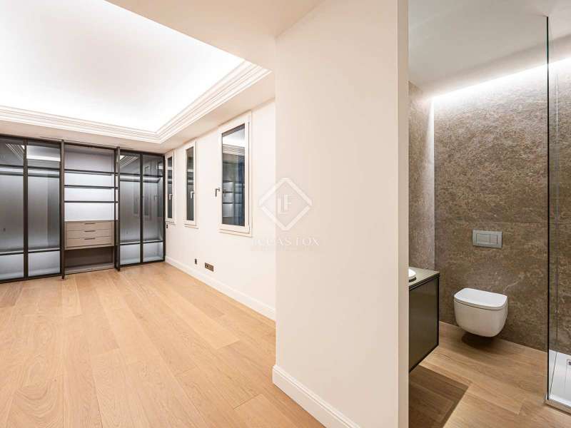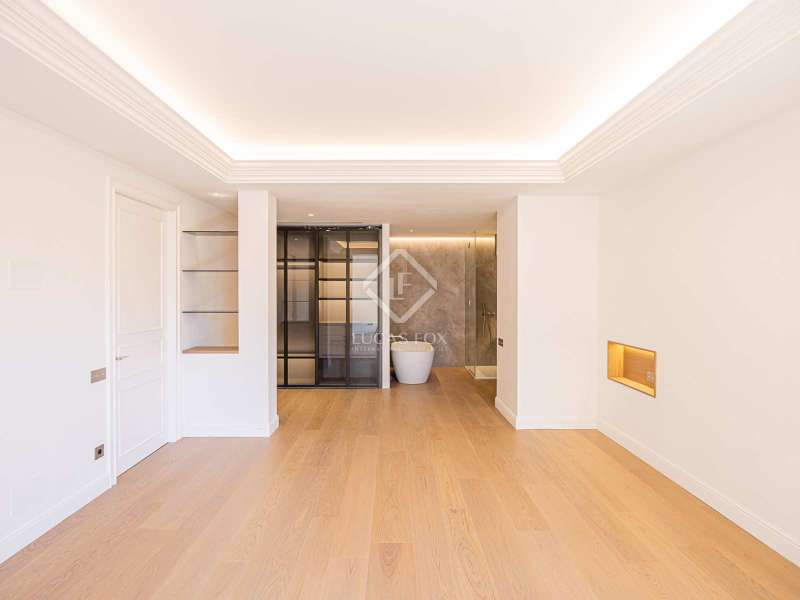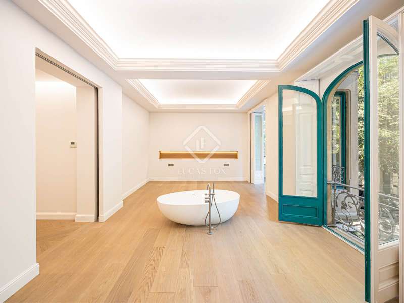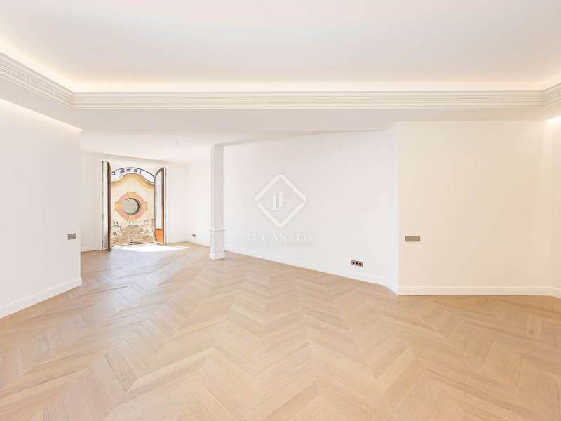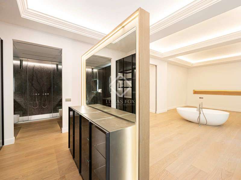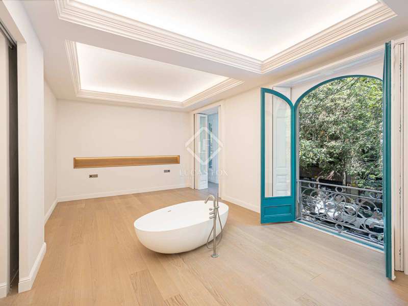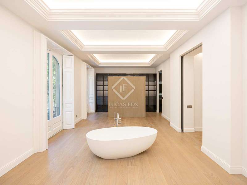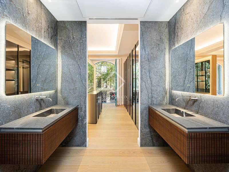 Lucas Fox presents this 347 m² brand-new flat, refurbished with top-of-the-line finishes and the utmost attention to detail and an old-meets-new, urban vibe, located in the most sought after area of Eixample Right. It is located on the first floor of a royal period building from 1885 with an entrance full of beautiful modernist details, an elevator and concierge service. Composed of four en-suite bedrooms with built-in wardrobes (the crown jewel of them being a huge main suite of about 60 m², accessible through automatic sliding doors and featuring a typical Catalan 'galería', a small living room adjacent to its own living room and a central bathtub, as well as two separate showers and sinks), a spacious, east-facing, bright living room of 110 m², featuring a magnificent open-plan kitchen with fitted appliances, a large island bar, a guest toilet, a spacious laundry with seperate washing machine and dryer. As an extra, this listing also includes a storage room of about 9 m² in the rooftop, accessible via a spacious lift. Completely refurbished from top to bottom, its current owners spared no expense when renovating and used the very best materials: 14 mm. thick, herringbone patterned Italian oak parquet, ducted air conditioning and heating, top-of-the-line acoustic insulation (original exterior carpentry upgraded with brand new 3+3 glass, and electrical mechanisms by Iconico - Palanca collection with brushed nickel finish). There is a Modulnova furnished kitchen and Moongrey surface top, household appliances from De Dietrich and Miele brands (including its 90 cm induction hob and extractor), 2 fitted ovens of 60x60 cm and 60x45 cm as well as a microwave, warming drawer, integrated dishwasher and wine cooler, as well as a Liebherr double American refrigerator. The bedrooms also feature the very best specifications, including Novamobili wardrobes and dressing rooms with smoked glass and matt black profiles, Porcelanosa and Matimex tiles, Nic Design Ovvio sanitary ware, Inbani washbasins, Lasser shower enclosures, brushed-nickel taps by Formma Design and Iconico and a stylish Inbani freestanding bathtub with Solid Surface finish in the main suite. Please feel free to contact us for further information and to arrange a viewing.