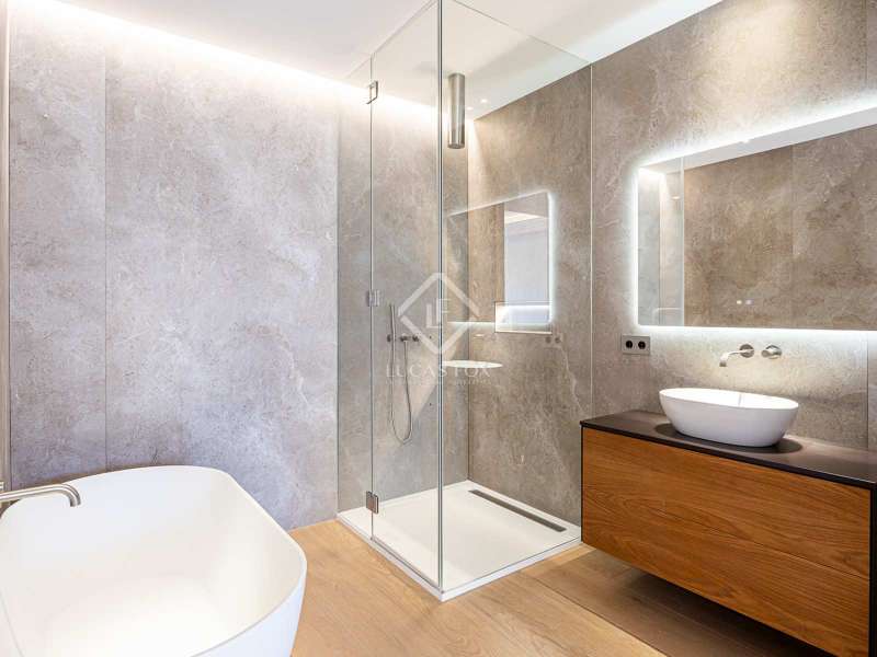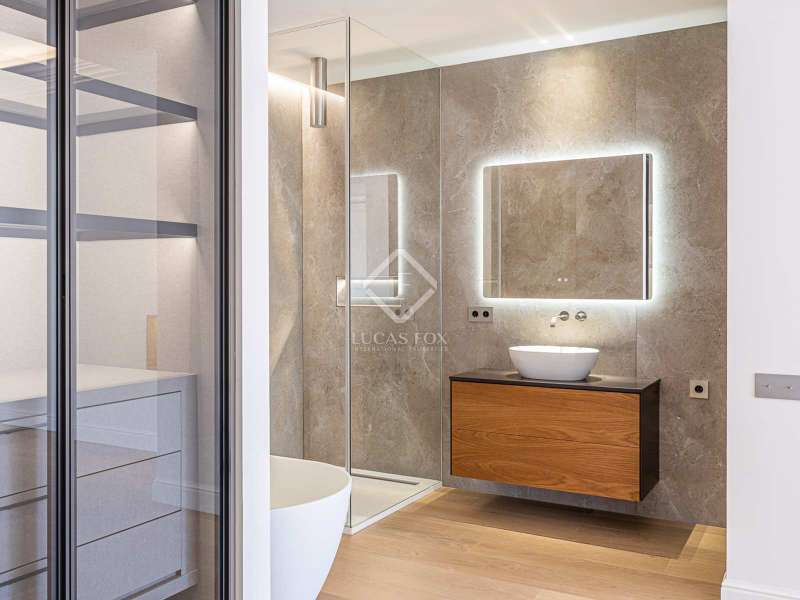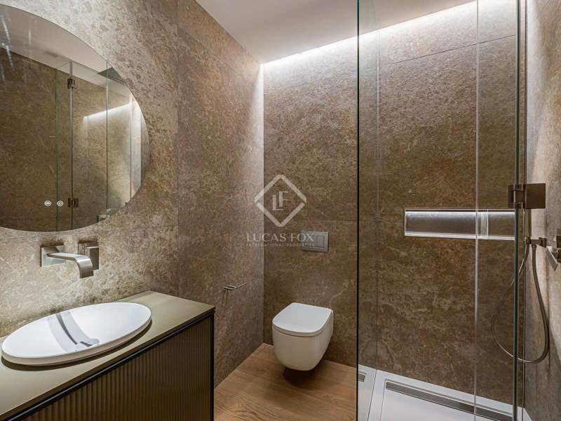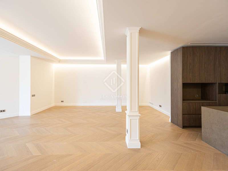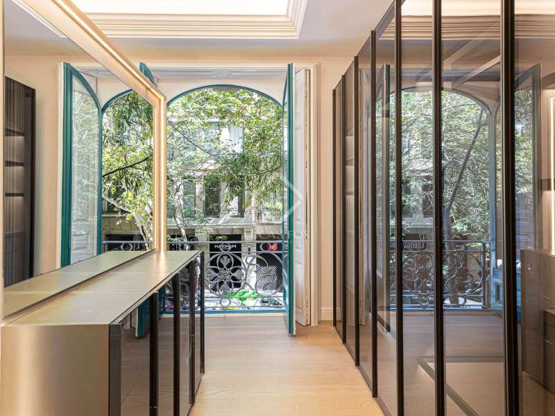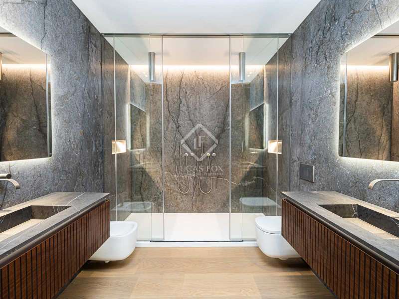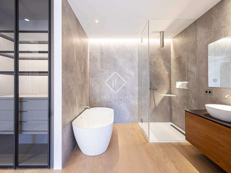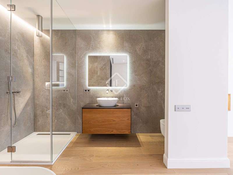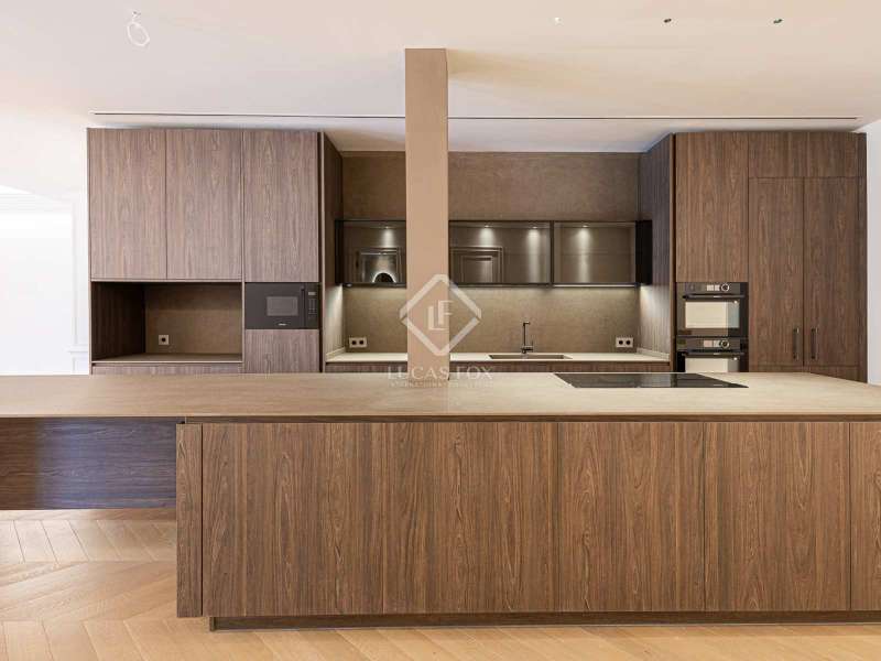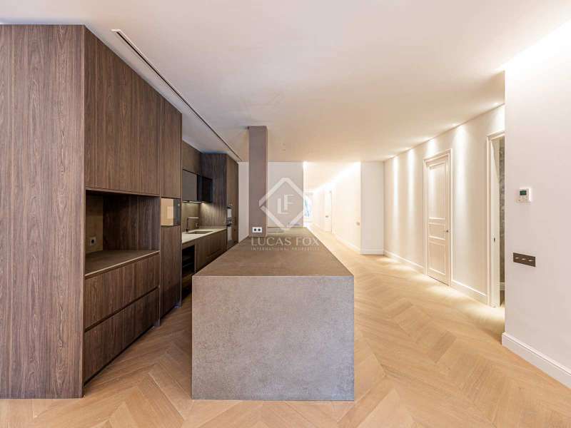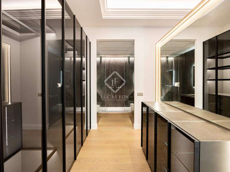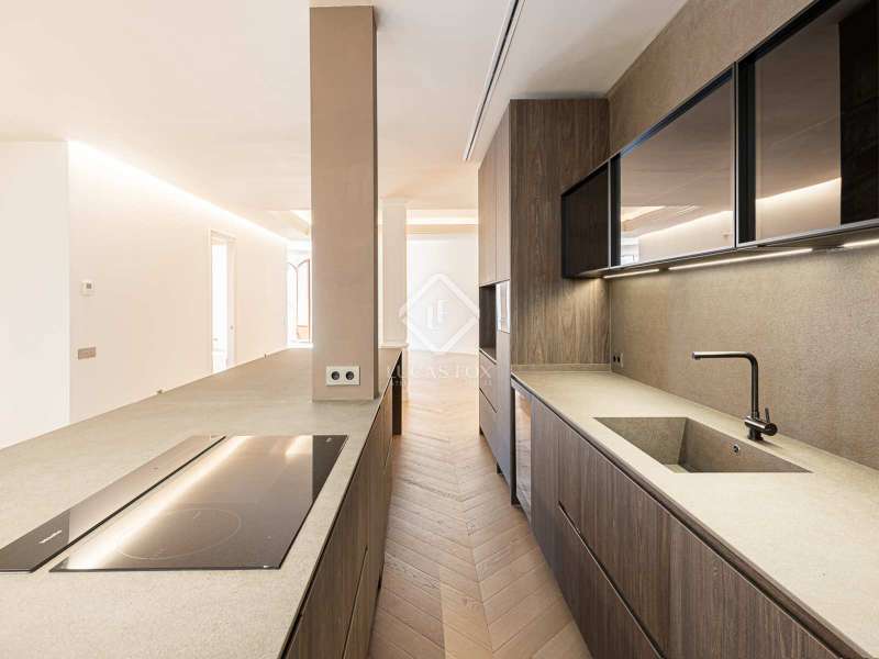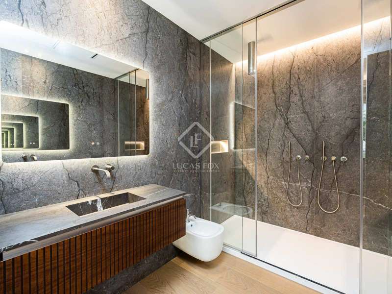 Lucas Fox presents this 347 m² brand-new flat, refurbished with top-of-the-line finishes and the utmost attention to detail and an old-meets-new, urban vibe, located in the most sought after area of Eixample Right. It is located on the first floor of a royal period building from 1885 with an entrance full of beautiful modernist details, an elevator and concierge service. Composed of four en-suite bedrooms with built-in wardrobes (the crown jewel of them being a huge main suite of about 60 m², accessible through automatic sliding doors and featuring a typical Catalan 'galería', a small living room adjacent to its own living room and a central bathtub, as well as two separate showers and sinks), a spacious, east-facing, bright living room of 110 m², featuring a magnificent open-plan kitchen with fitted appliances, a large island bar, a guest toilet, a spacious laundry with seperate washing machine and dryer. As an extra, this listing also includes a storage room of about 9 m² in the rooftop, accessible via a spacious lift. Completely refurbished from top to bottom, its current owners spared no expense when renovating and used the very best materials: 14 mm. thick, herringbone patterned Italian oak parquet, ducted air conditioning and heating, top-of-the-line acoustic insulation (original exterior carpentry upgraded with brand new 3+3 glass, and electrical mechanisms by Iconico - Palanca collection with brushed nickel finish). There is a Modulnova furnished kitchen and Moongrey surface top, household appliances from De Dietrich and Miele brands (including its 90 cm induction hob and extractor), 2 fitted ovens of 60x60 cm and 60x45 cm as well as a microwave, warming drawer, integrated dishwasher and wine cooler, as well as a Liebherr double American refrigerator. The bedrooms also feature the very best specifications, including Novamobili wardrobes and dressing rooms with smoked glass and matt black profiles, Porcelanosa and Matimex tiles, Nic Design Ovvio sanitary ware, Inbani washbasins, Lasser shower enclosures, brushed-nickel taps by Formma Design and Iconico and a stylish Inbani freestanding bathtub with Solid Surface finish in the main suite. Please feel free to contact us for further information and to arrange a viewing.