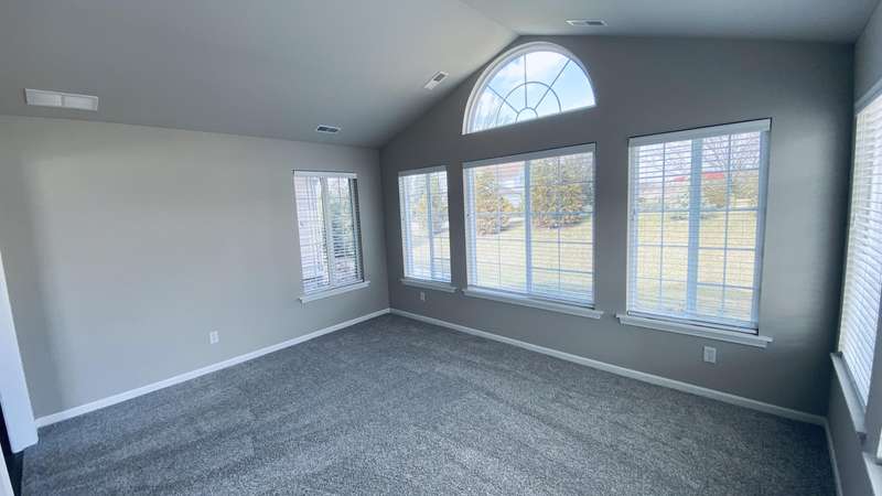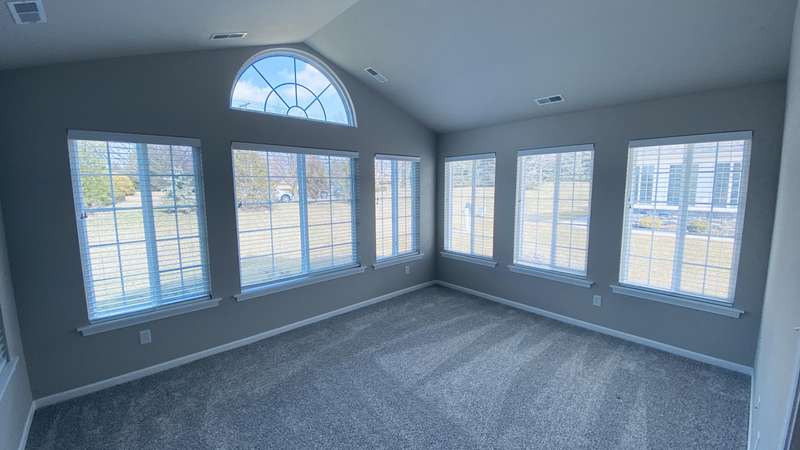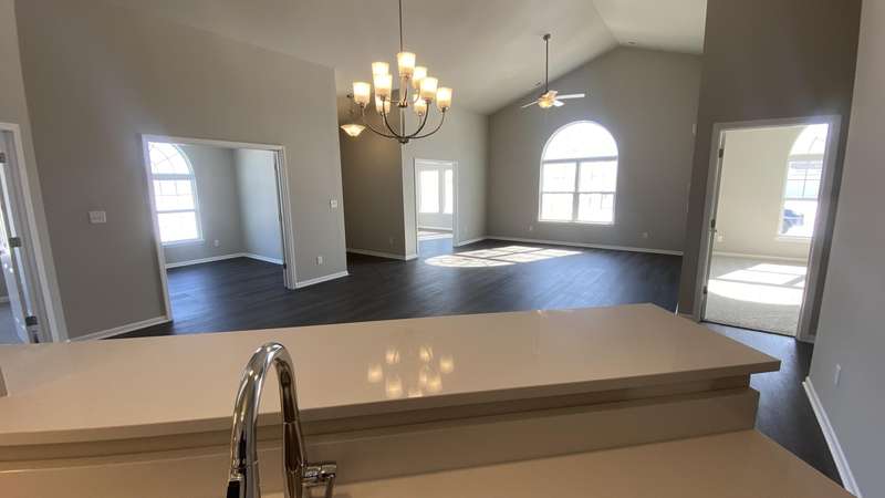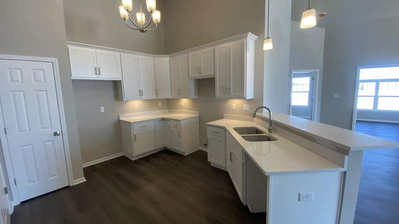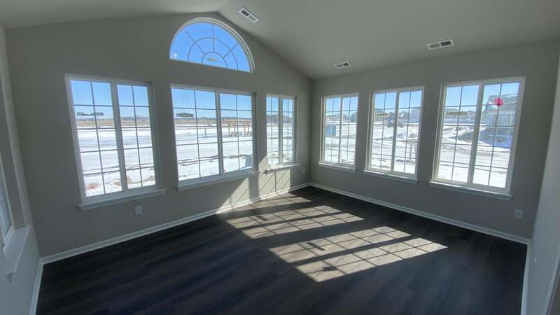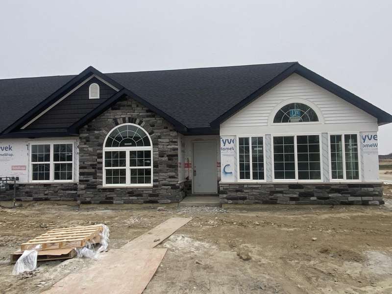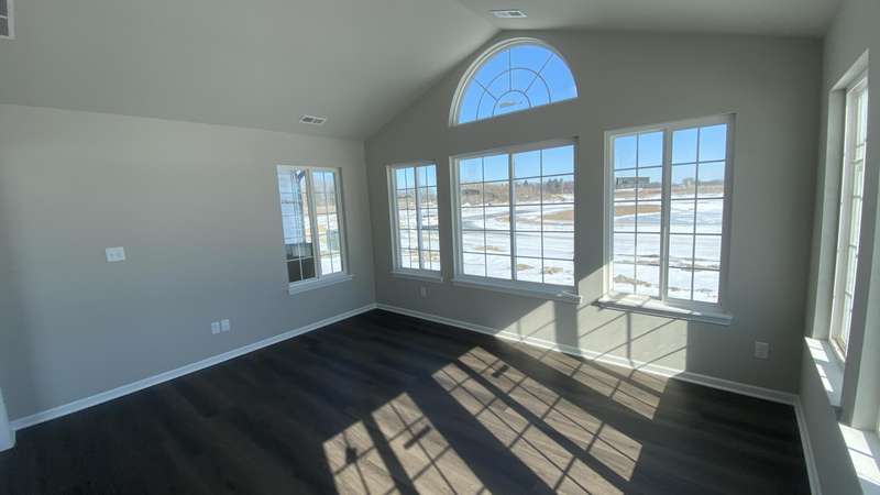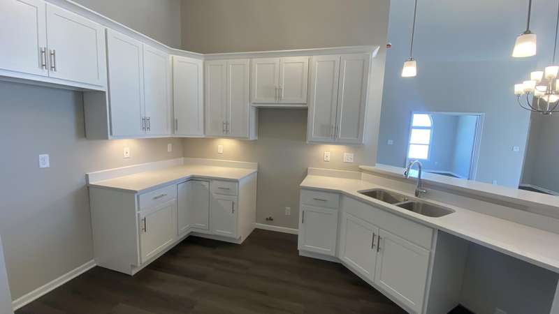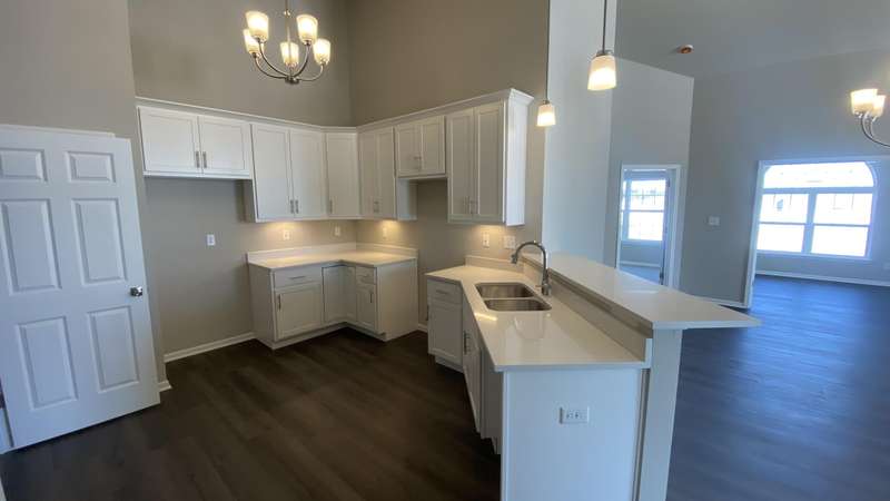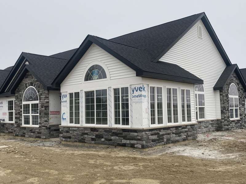 Maintenance Free One Level living in Winfield's newest offering Wyndance Springs located long established community of Wyndance! This bright, open concept villa features 2 bedrooms, an office and Large Sunroom. This 2 bedroom 2 bath villa is on Great lot with a pond view. The Large primary bedroom features tall Ceilings, big windows, a walk in closet, and ensuite with double vanity + walk in shower! There is also a 2nd generous bedrooms plus a office with French doors and cathedral ceilings. The Living room is Light and Bright and Wide Open to Dining Area, and Kitchen all with Tall Ceilings! The kitchen boasts tons of storage and 42' cabinets, counters, pantry, soaring ceilings and breakfast bar. The Kitchen, Living Room and Dining areas all Feature luxury vinyl plank flooring and cathedral ceilings! There is also an Awesome airy Sunroom with windows on 3 walls, and cathedral ceilings. Over 1700 sq ft of living space! Plus a laundry/mudroom with closet and access from garage. The Garage is finished and has attic ladder pull down to access more storage. The Outdoor Patio area offers a nice outdoor sitting area! HOA fees cover lawn/yard maintenance and snow removal. Great Location in Winfield of Crown Point with close access to Highways and an close drive to all Crown Point has to Offer! -Maintenance free for you to relax and enjoy!! Some Photos are of other finished units. Colors and finishes may vary.