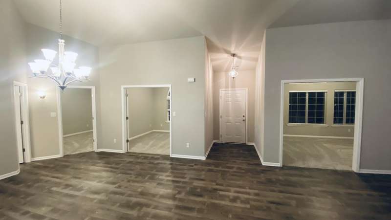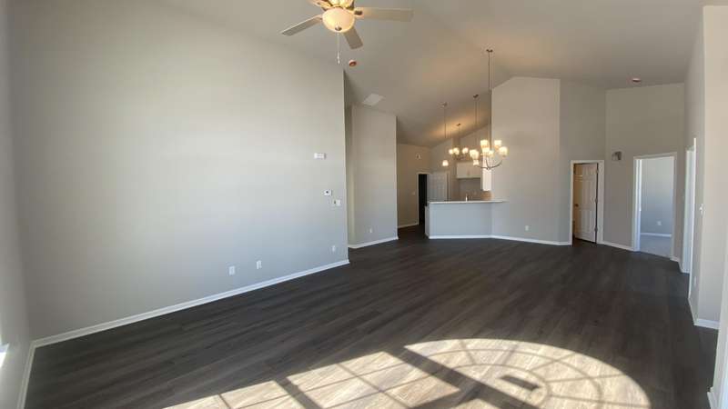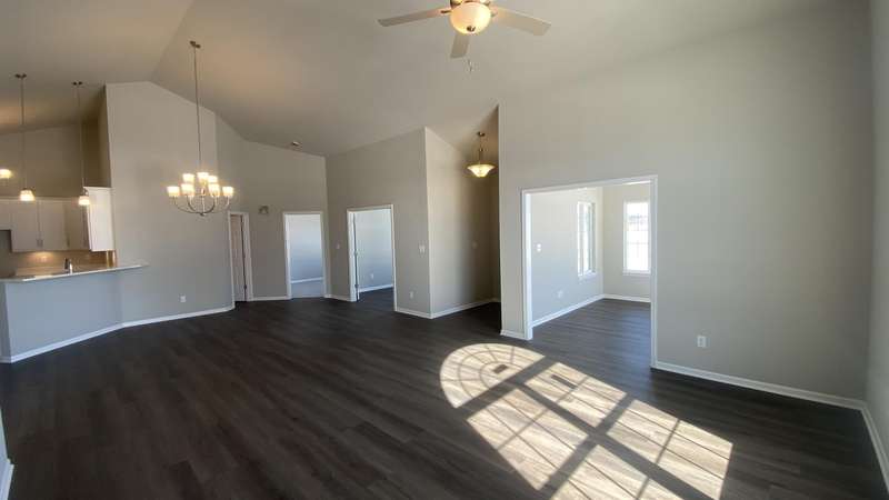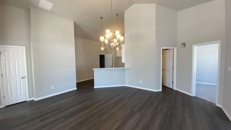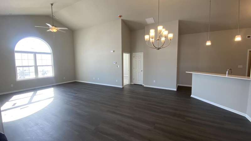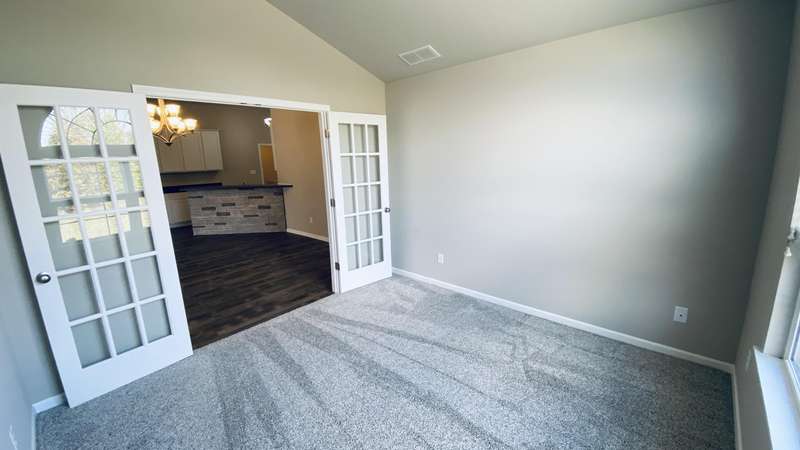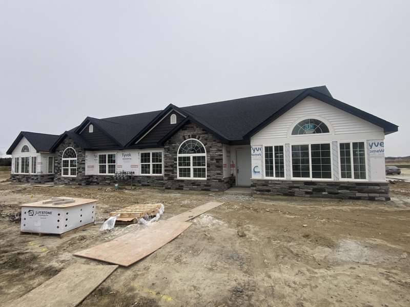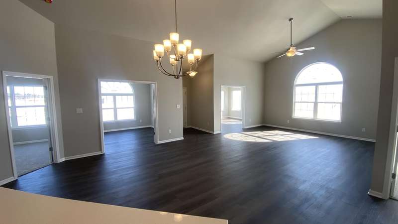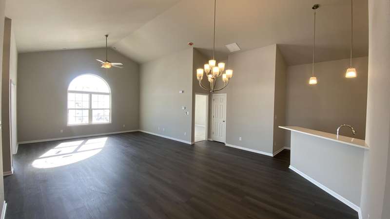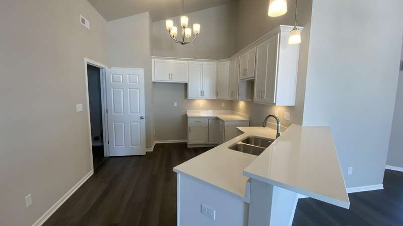 Maintenance Free One Level living in Winfield's newest offering Wyndance Springs located long established community of Wyndance! This bright, open concept villa features 2 bedrooms, an office and Large Sunroom. This 2 bedroom 2 bath villa is on Great lot with a pond view. The Large primary bedroom features tall Ceilings, big windows, a walk in closet, and ensuite with double vanity + walk in shower! There is also a 2nd generous bedrooms plus a office with French doors and cathedral ceilings. The Living room is Light and Bright and Wide Open to Dining Area, and Kitchen all with Tall Ceilings! The kitchen boasts tons of storage and 42' cabinets, counters, pantry, soaring ceilings and breakfast bar. The Kitchen, Living Room and Dining areas all Feature luxury vinyl plank flooring and cathedral ceilings! There is also an Awesome airy Sunroom with windows on 3 walls, and cathedral ceilings. Over 1700 sq ft of living space! Plus a laundry/mudroom with closet and access from garage. The Garage is finished and has attic ladder pull down to access more storage. The Outdoor Patio area offers a nice outdoor sitting area! HOA fees cover lawn/yard maintenance and snow removal. Great Location in Winfield of Crown Point with close access to Highways and an close drive to all Crown Point has to Offer! -Maintenance free for you to relax and enjoy!! Some Photos are of other finished units. Colors and finishes may vary.