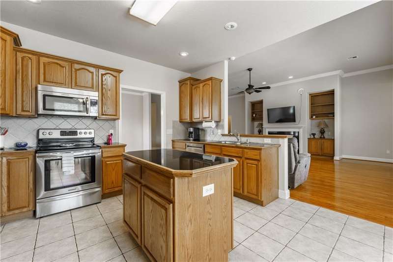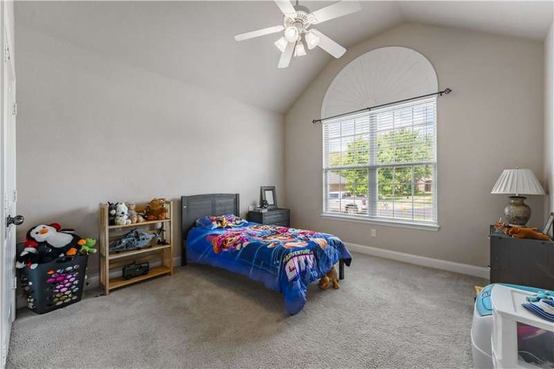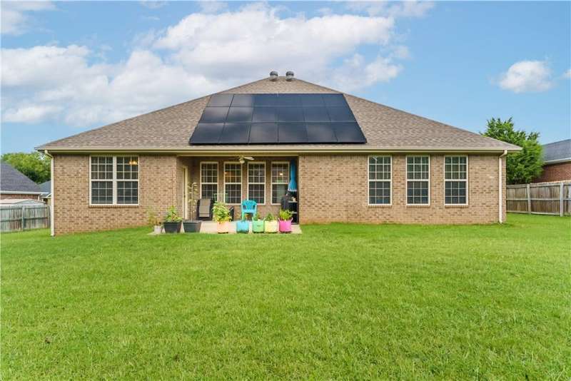 Welcome to your new home in the sought-after Stonebridge Meadow Subdivision in Fayetteville! This beautifully maintained home features a neutral color palette, ready for new owners to make it their own. The split floor plan offers privacy, with a spacious primary suite separate from the well-sized secondary bedrooms. The kitchen includes black countertops, stainless appliances, a double sink, eating bar island, and stylish cabinetry. A separate dining area adds flexibility?ideal for meals or a sunny home office. The tranquil primary bedroom features a tray ceiling and spa-like ensuite with dual vanity, large shower, jetted tub, and two walk-in closets. Enjoy mornings on your covered patio. Solar panels provide energy savings and will be paid in full by the seller at closing. Stonebridge Meadow offers fantastic amenities, including an 18-hole golf course and White River access. This move-in ready home is a must-see!