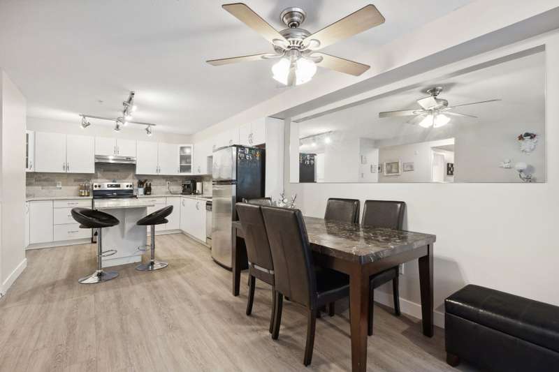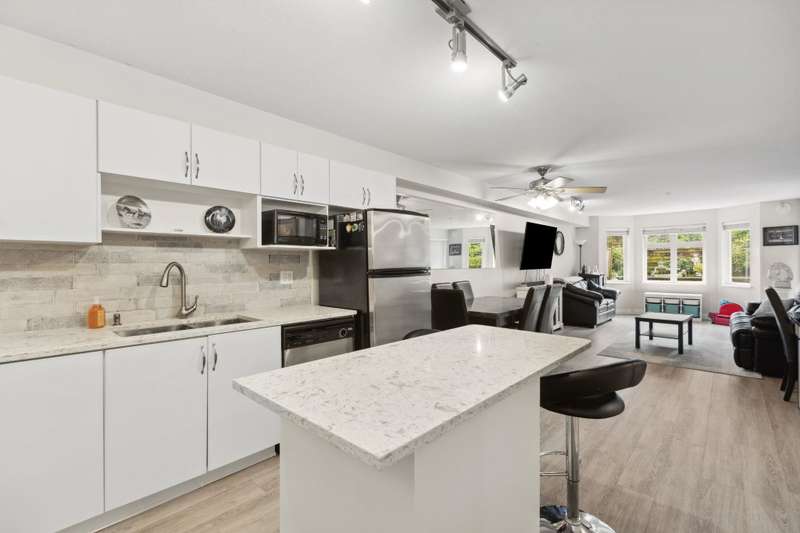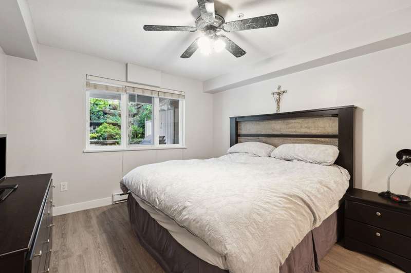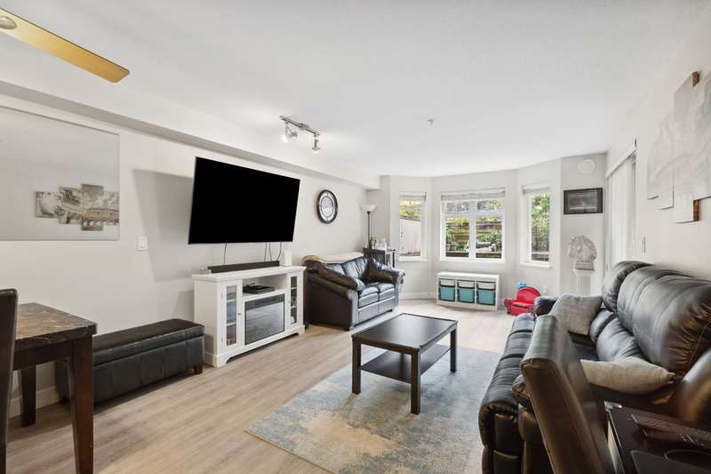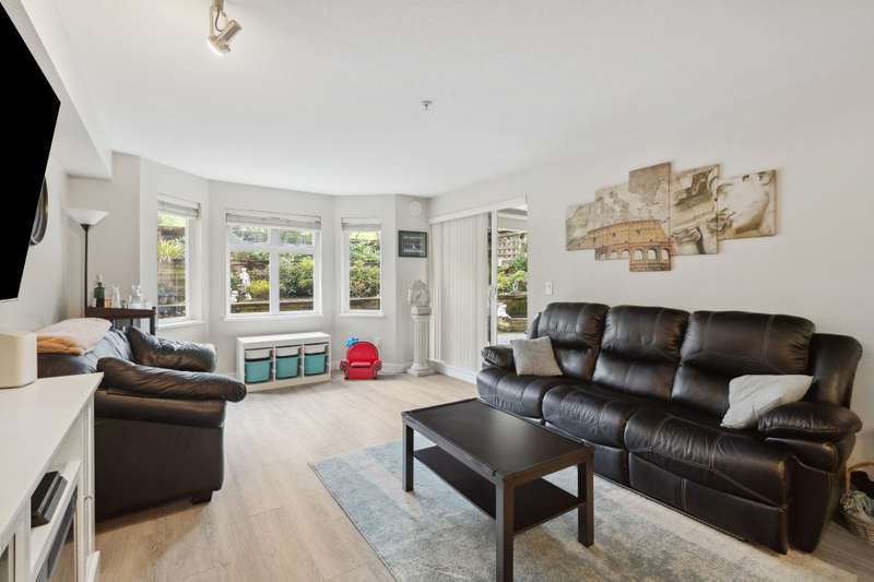 INCREDIBLE VALUE...Welcome to Shoreline Villa, an incredibly serene development centrally located in Port Moody. BOASTING OVER 1100 SQFT OF TASTEFULLY UPDATED living, this 2 BED, DEN & 2 FULL BATH home has everything you need for 1 LEVEL LIVING. The home features an open concept kitchen, dining & living space, stainless steel appliances, breakfast bar & loads of storage. Large primary bed featuring a walk-through closet & ensuite. WALK OUTSIDE TO YOUR BRIGHT, PRIVATE 500 SQFT PARTIALLY COVERED PATIO PERFECT FOR GARDENING & ENTERTAINING year round. Peace of mind in a well maintained building nestled in College Park close to the West Coast Express, East Hill Park, Rocky Point, amenities & so much more! BONUS: 2 side by side parking. Don’t miss this great opportunity!