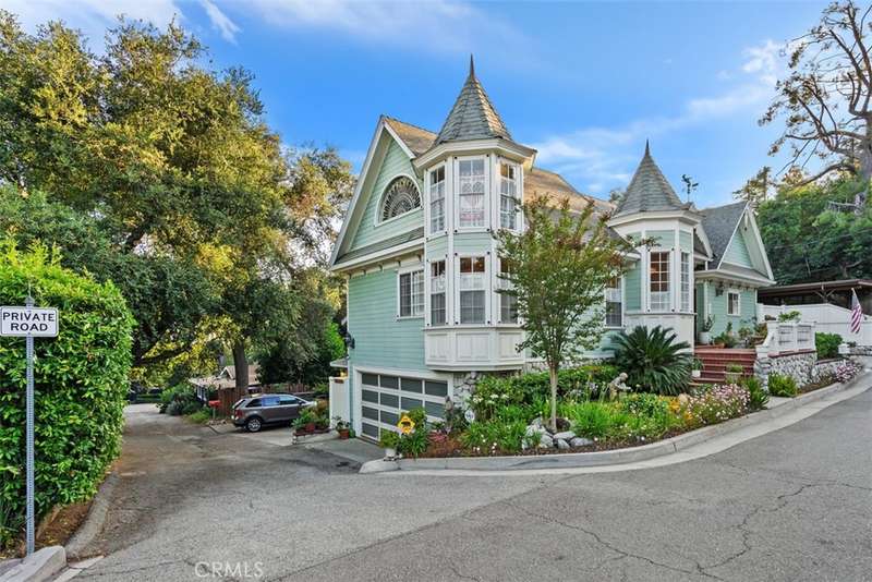 Tucked away, in a historic town called Sierra Madre. At the foothills of the San Gabriel Valley and below the southern edge of the Angeles National Forest. Surrounded by lush green trees and beautiful wild flowers, the wind whistles through. Crisp air and occasional wild life make for a peaceful setting no matter the time of day. This timeless Victorian masterpiece, is now open for new memories to call your own. Newly built in 1989, with the great outdoors in mind, windows were placed throughout the home to welcome the nature that surrounds. Backed to a Private Road is a 2 car garage. A third option carport is on the North-West side of the property. Morning coffee or afternoon tea favorite spots are out front on the porch bench or in the covered sun room open breezeway. Meticulously maintained and well-loved. Upon entering is a cozy living space. An open floorplan makes for a spacious feel. The expansive master suite is located on the main floor. A gorgeous wooden staircase provides optional separate living with 2 additional bedrooms, a full bath, and a sitting room. French doors lead to a near wrap around patio currently enjoyed as an outdoor lounge area. Additionally, an estimated 300 square foot attic space (not included in advertised square footage) with high ceilings has been converted into a fully functionally living space. Feel like taking a walk or hike? This is the place to do it! Explore local beautiful sites, curbless roads, churches, and Downtown shopping and dining. With the city life close by, you will find this location, the perfect getaway, to call home.