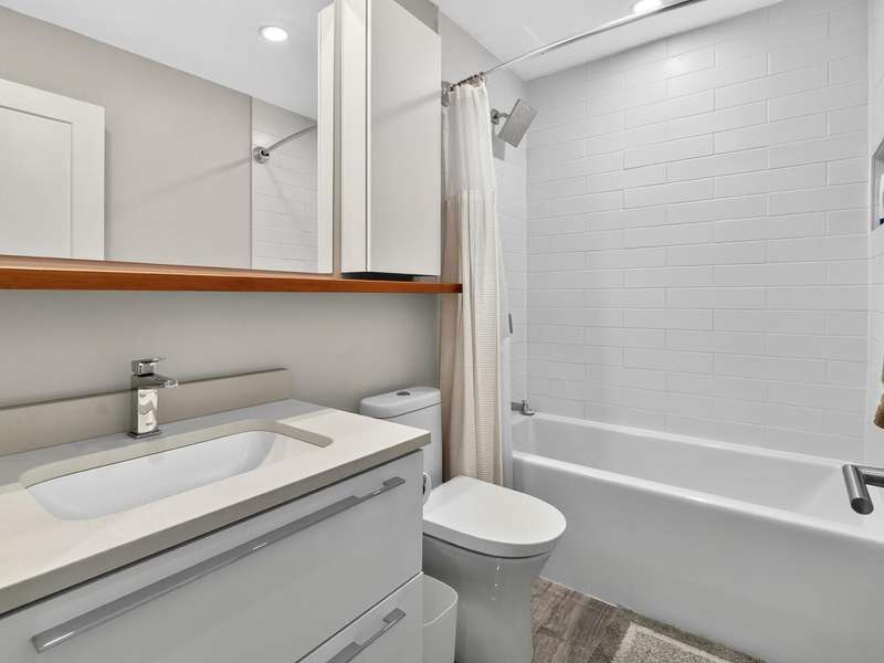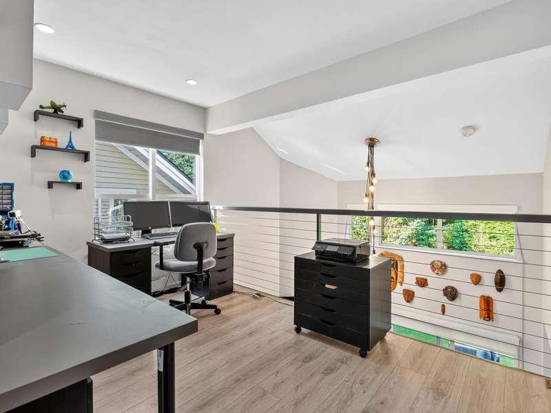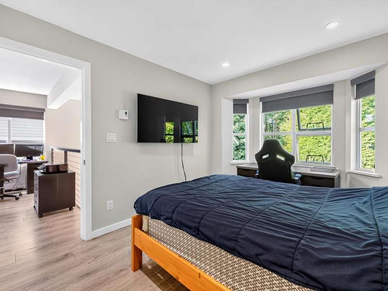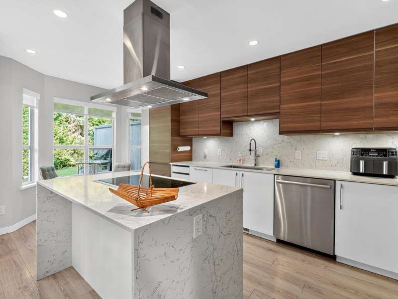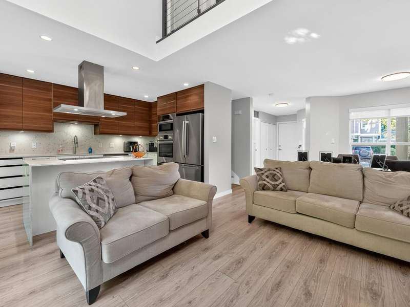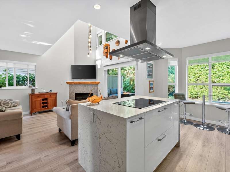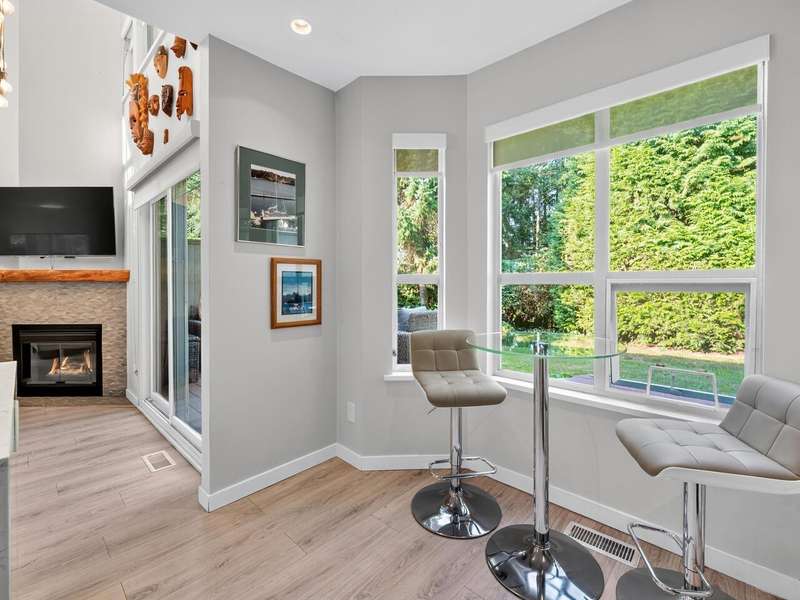 Welcome to Raven Woods at Roche Point. This stunning 2-bed, 3-bath corner unit townhome is in the heart of it all. Steps away from Mount Seymour, Parkgate shopping centre, 2 golf courses and top rated elementary and secondary school, this is the location you've been dreaming of. While currently a 2-bed+den, it can easily be converted into a 3-bed if needed. The 19' ceiling in the living area lets in the afternoon sun, brightening the entire unit while backing onto the private patio and greenbelt for those summer evenings. Completely renovated in 2020 with new floors, kitchen, bathrooms, on demand hot water and radiant floor heating. 1 car garage with storage room for bikes, skis and whatever else you need plus a separate parking spot out front.