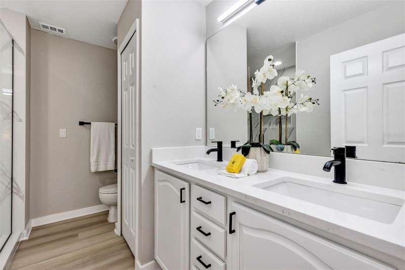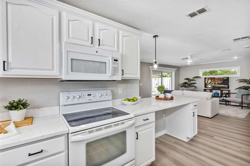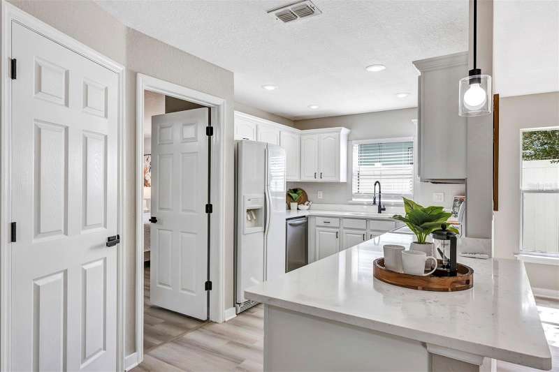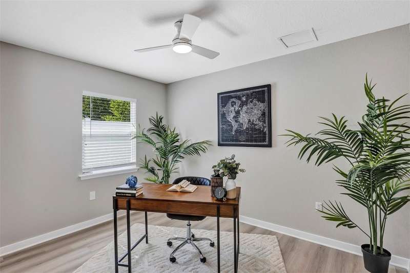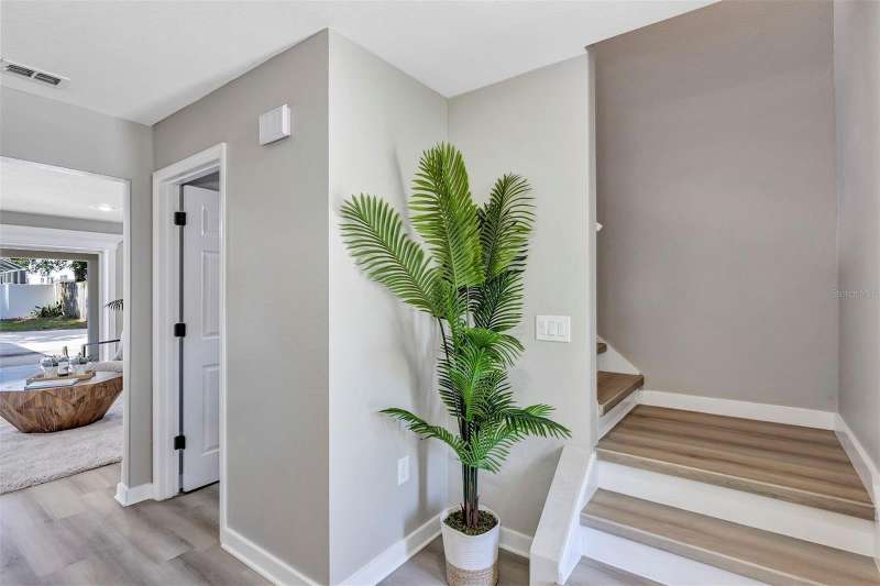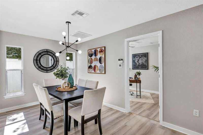 Welcome to this beautifully updated 4-bedroom, 2.5-bathroom single-family home, From the moment you walk in, you'll notice the luxury vinyl plank flooring flows seamlessly throughout, offering durability and elegance in every room. The open-concept living area is filled with natural light, enhanced by new ceiling fans and designer light fixtures that bring warmth and style to every gathering. At the heart of the home is the recently upgraded kitchen, featuring sparkling white Carrara quartz countertops and a sleek 4 inch tall backsplash. Need a quiet place to work from home? You’ll love the dedicated home office, thoughtfully designed for focus and productivity. When it's time to unwind, retreat to your private back patio, ideal for morning coffee or sunset dinners while providing great shade from the Florida heat. All bathrooms have been completely renovated with custom tile flooring and contemporary touches. With the split bedroom floorplan, you will find the primary bedroom on the main floor and on the second floor you are greeted by yet another living room space and the remaining 3 bedrooms. There’s plenty of room for your growing family, guests, or creative hobbies. And thanks to thoughtful upgrades throughout, you can move right in without lifting a finger. Rest easy knowing that the roof was just replaced in 2023 (with a transferable warranty) and HVAC was replaced in 2024. Minutes from top-rated schools, parks, shopping, and easy access to I-4, this home offers both convenience and connection to a vibrant community. Visit College Park's most beloved breakfast spot: Shaker's American Cafe; a staple in the community since 1993 that is less than a block away! or take a 3 minute walk in the opposite direction and visit the Jack Kerouac House: a haven for literary enthusiasts. There truly is something for everyone! Don’t miss the opportunity to make this Orlando gem yours.