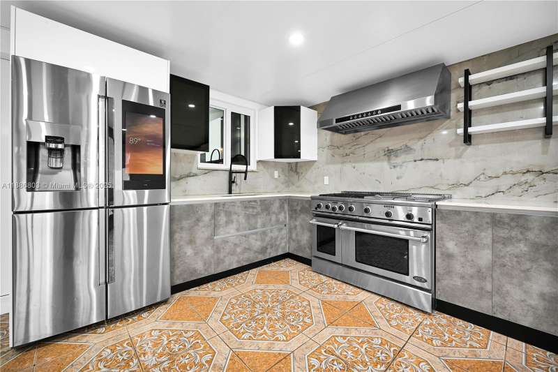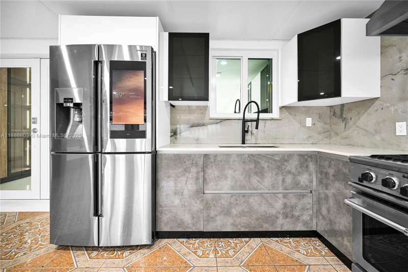 Experience luxury living in this stunningly renovated single family home, where modern design meets ultimate comfort. Situated in a cul-de-sac, this contemporary gem features an open concept layout with soaring 12-foot ceilings, creating bright and spacious living areas. The home is adorned with premium finishes, including high-end appliances, sleek cabinetry, and a Cristallo island with LED lighting. Elegant porcelain flooring flows throughout, complemented by beautifully designed bathrooms and bedrooms with custom closets. The fully equipped second kitchen and family room enhance the home's functionality, while the private backyard provides the perfect setting for entertaining or relaxing in style. With a new metal roof, impact windows, and impact doors for added security and insulation.