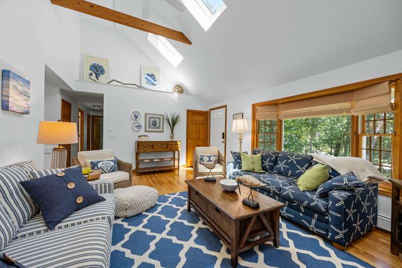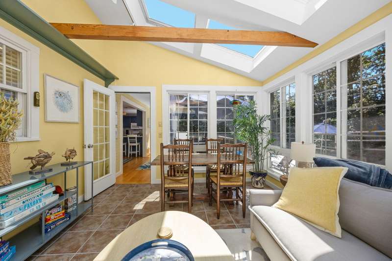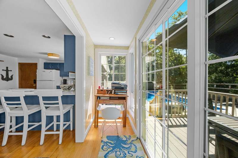 Tucked away on a quiet cul-de-sac, this inviting 3-bedroom, 2-bath ranch offers the perfect blend of comfort and coastal charm. The vaulted living room, enhanced by skylights and a cozy fireplace, creates a bright and welcoming gathering space. A sunroom with a warming stove overlooks the private backyard, while the spacious deck and sparkling pool are ideal for summer living and entertaining. The lower level includes an exercise room, abundant storage, and excellent potential for additional living space. With a newer roof and a quiet setting close to the beach, this home offers privacy, convenience, and an easy Cape Cod lifestyle