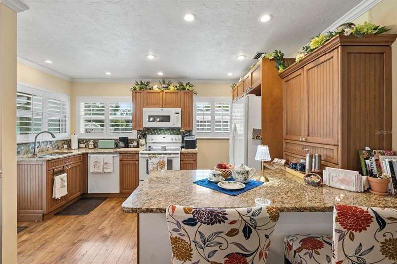 Under contract-accepting backup offers. Charming West Bradenton Bungalow - Priced to Sell!Cute as a button and lovingly cared for by the same owner for over 50 years, this vintage 1947 bungalow is a rare find. Recent updates make it move-in ready: a brand-new metal roof (2025), double-pane windows with hurricane shutters (2010), and a remodeled kitchen and bath (2013).Step inside to find an inviting screened front porch, cozy fireplace flanked by built-in bookshelves, and plenty of storage throughout. The spacious, traditional floor plan offers generously sized rooms, while the kitchen steals the show with custom cabinetry, stone counters, and convenient in-home laundry.The back screened porch offers potential for expansion, and the corner lot provides alley access, parking for boat or RV, and a beautifully manicured yard shaded by majestic oaks. Best of all, this West Bradenton gem comes with no HOA or CDD fees and is just blocks from a City park with tennis, pickleball, and a playground.Don't miss this opportunity to own a piece of Bradenton history-at a price that makes sense!