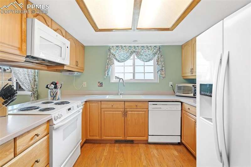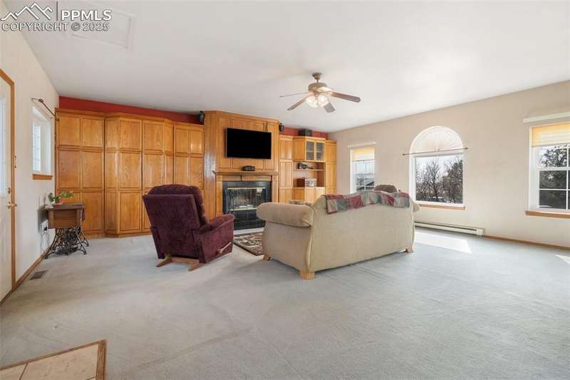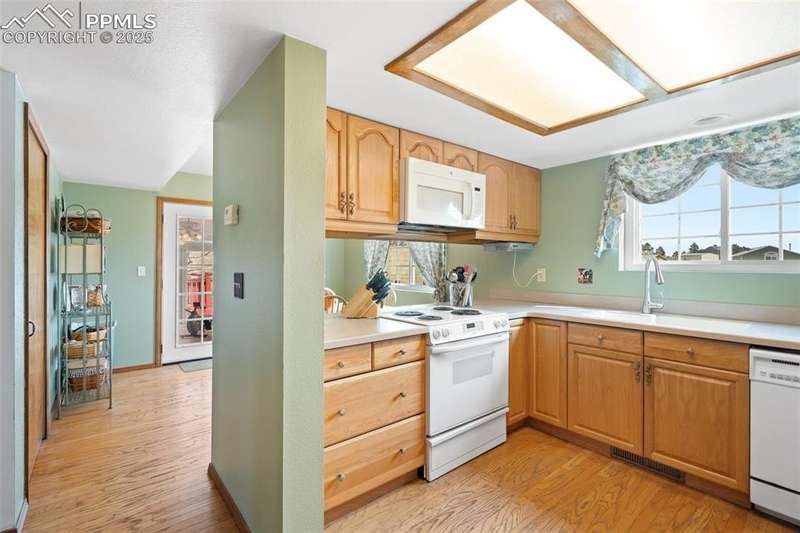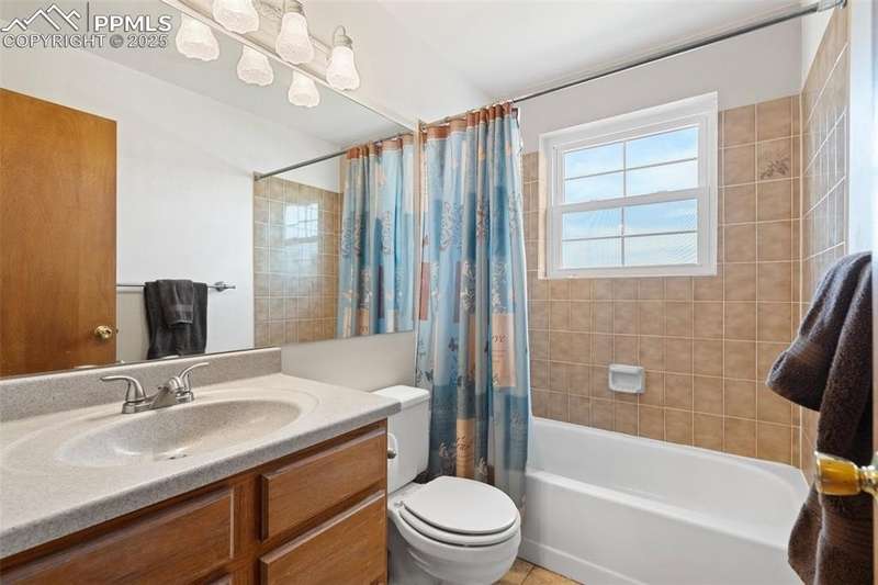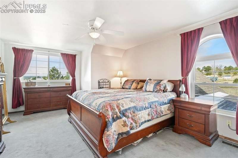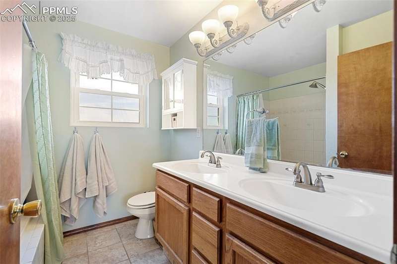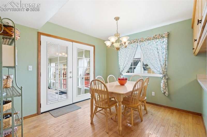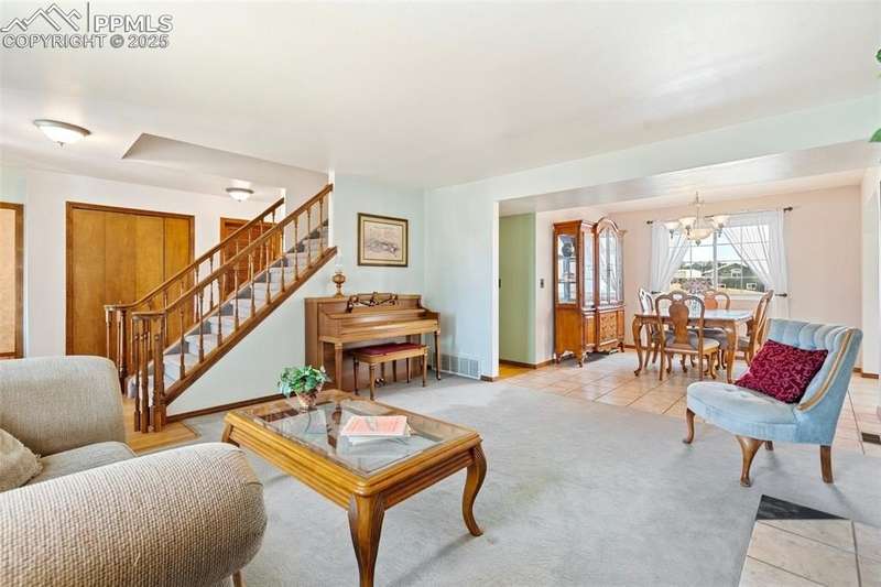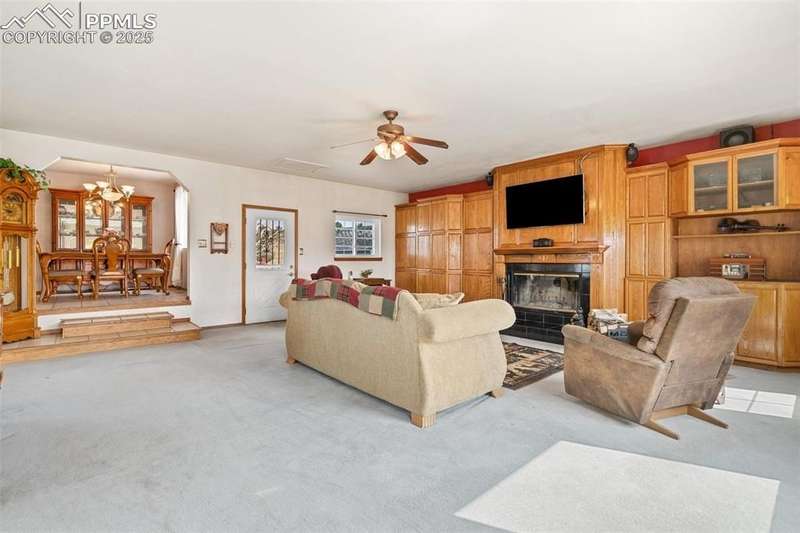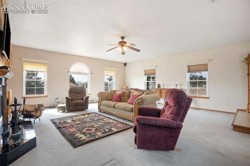 Situated in the desirable Latigo neighborhood, this home offers a tranquil setting with stunning views of Pikes Peak & a spacious, level lot adorned with mature pine trees. The property provides a peaceful & functional space, perfect for enjoying the natural surroundings. The exterior features a large, covered front porch & a generous back deck, ideal for outdoor relaxation & entertaining. A 24x20 shed/workshop with attached loafing shed provides convenient storage & shelter, with plenty of space for hay storage as well. The front yard is fully fenced & two separate pastures in the back offer secure areas for animals or recreational use. Inside, the home boasts a thoughtfully laid-out floor plan with separate living & dining rooms, along with a spacious family room that has abundant natural light from large windows, built-in shelves & a cozy fireplace. The family room also offers direct access to the back yard. The kitchen features an eat-in area that flows into a large, tiled sunroom with walk-out to back deck, creating a great flexible space for various needs. The main level also includes a half bath & a laundry room for added convenience. Upstairs, you'll find three well-sized bedrooms & two full bathrooms, including a dedicated primary suite with an attached bathroom & a walk-in closet. The fully finished basement offers even more living space, with a large rec/family room & an additional flexible area, currently used as a non-conforming bedroom. A third bathroom & extra laundry hook-up in the basement provide additional functionality. This home offers a fantastic blend of indoor & outdoor living, with plenty of space & beautiful views, all in the desirable Latigo neighborhood. Residents enjoy access to the Latigo Equestrian Center as well as the planned neighborhood easements for riding. Located in the highly regarded D-49 school district, this property also provides quick access to Meridian Road & Highway 24, making commuting & daily errands a breeze.