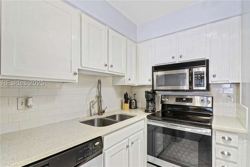 Very nicely renovated & maintained. Tile floors in Kitchen & living areas, wood in Bedrooms. Smooth ceilings throughout. Beautiful Kitchen w/Quartz counters, tile backsplash, newer appliances. Quartz counter at wet-bar. Pedestal sinks in both Baths. Newer HVAC air hander & water heater. Building 2 is at front of the Complex & close to beach & all amenities. Turn-key unit w/ good rental history.
