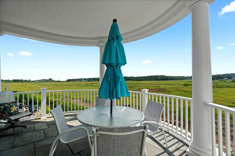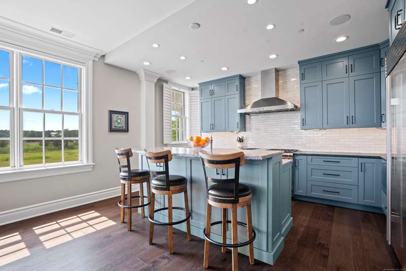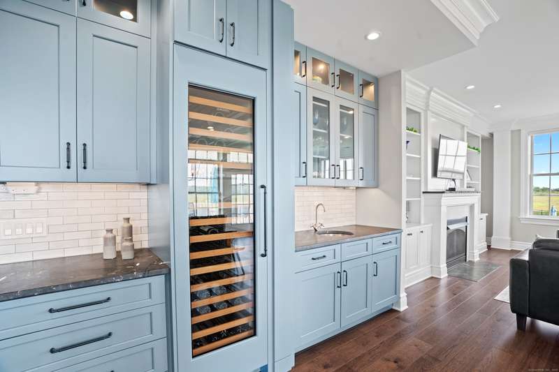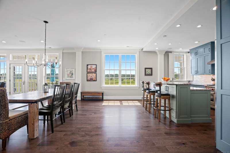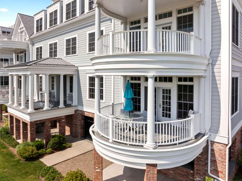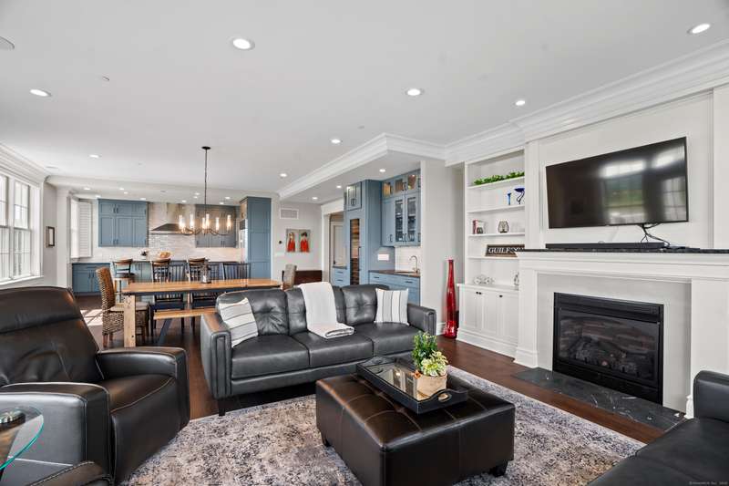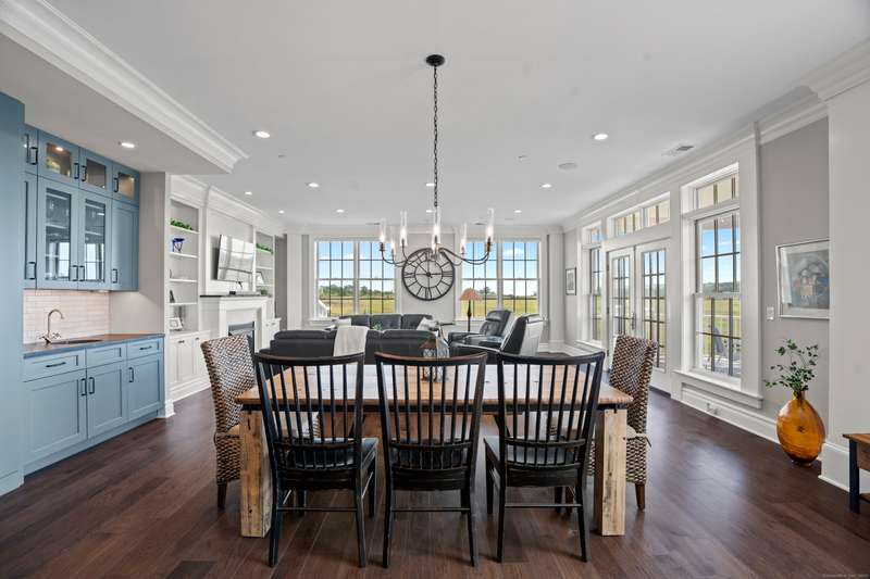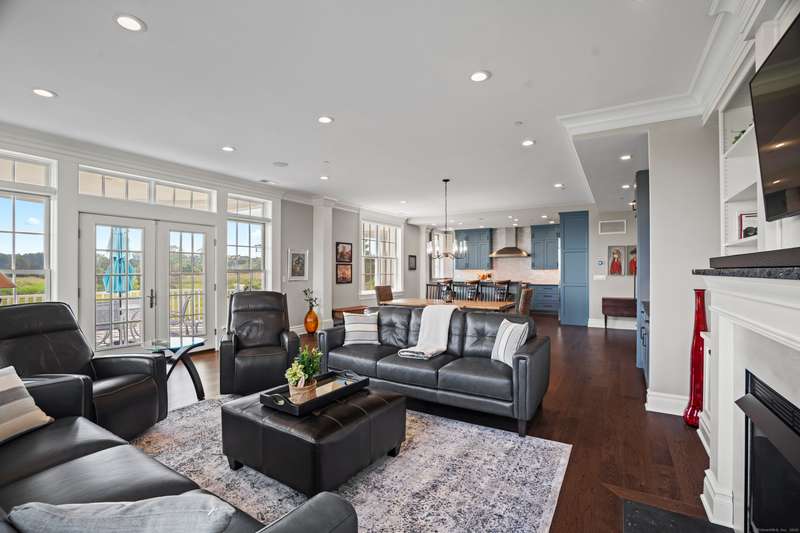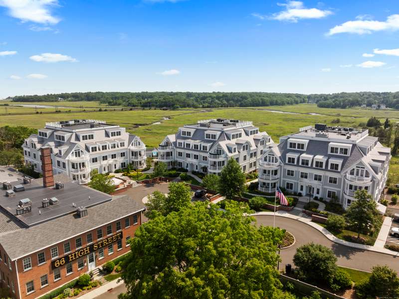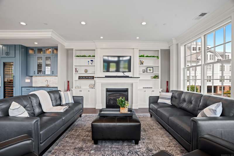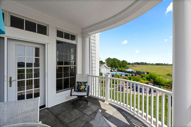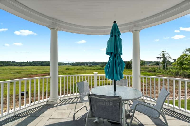 Spectacular Marsh Views and Refined Living at 66 High Street - Guilford, CT! Perfectly positioned on the first floor of the Leete Building, Step into unit 31, a thoughtfully designed open floor plan that blends historic charm with contemporary style. To the right of the welcoming hallway, the chef's kitchen is outfitted with premium stainless-steel appliances-including a Wolf gas range, Sub-Zero refrigerator, granite countertops, a center island, and custom cabinetry. A tall wine cooler and wet bar with leathered soapstone countertops complete the entertainer's dream space. The kitchen flows seamlessly into the dining area and living room, where built-in shelving flanks a cozy gas fireplace. French doors open to a semi-circular balcony offering yr-round, panoramic views of marshland and shoreline. The spacious primary suite also overlooks the scenic views and features a large walk-in closet and luxurious en-suite bath with double vanities, walk-in shower, and radiant heated floors. The