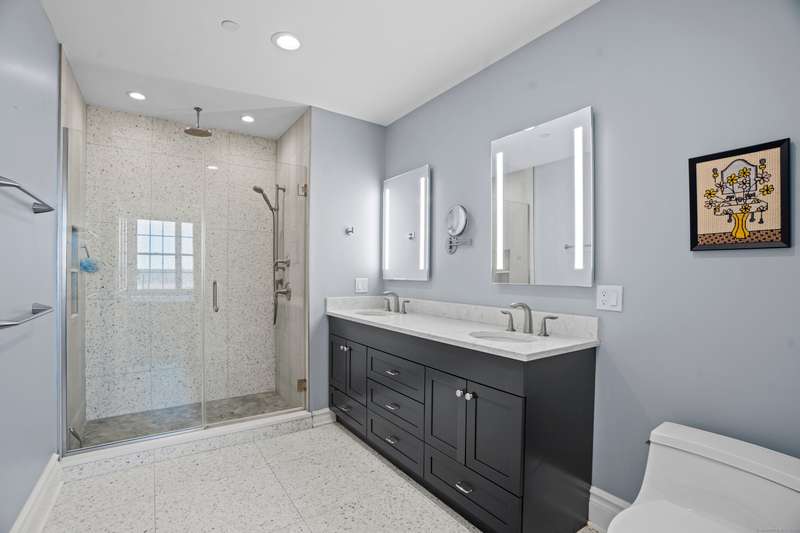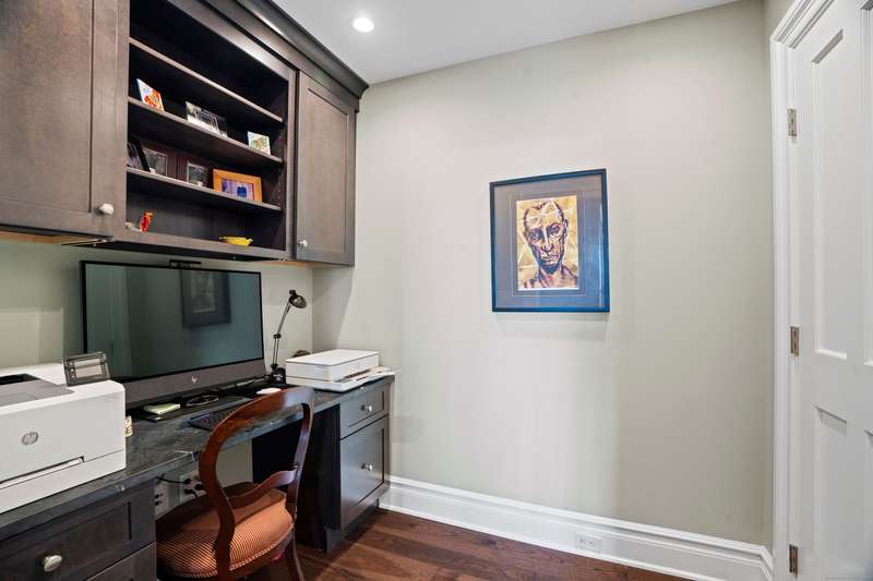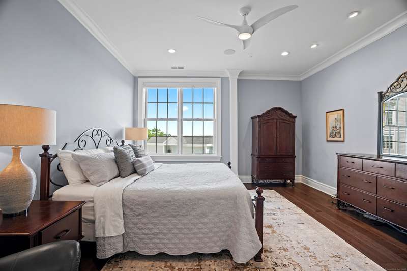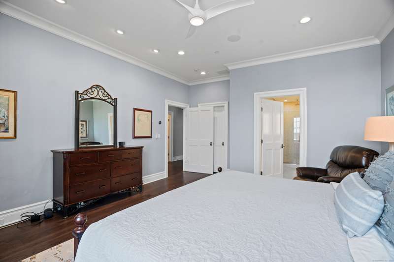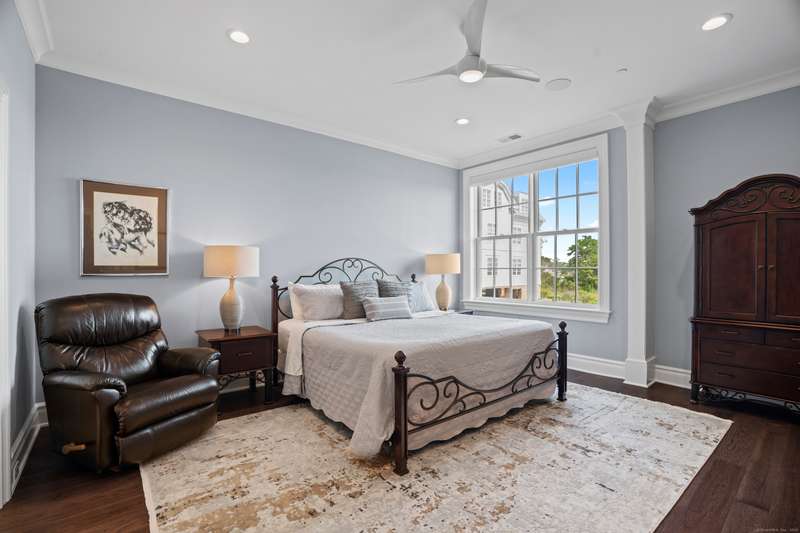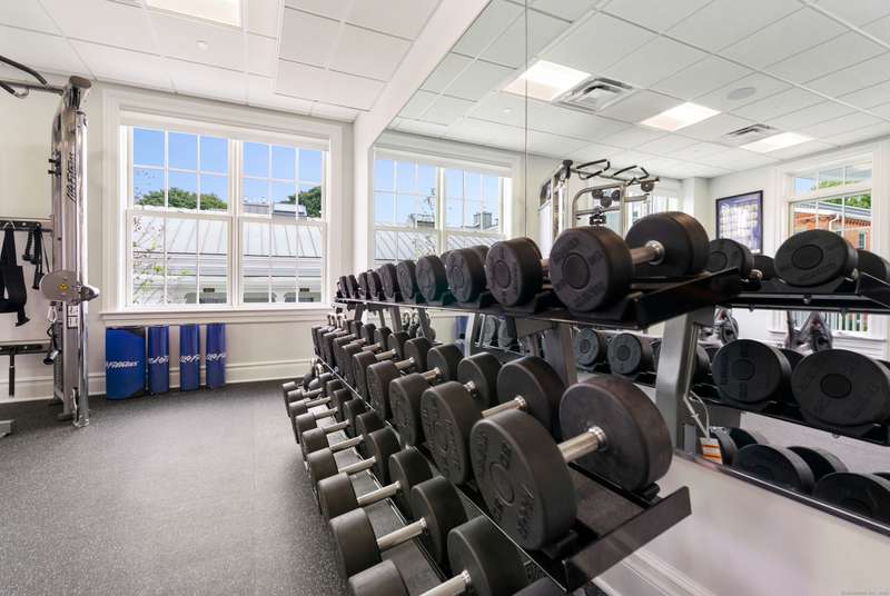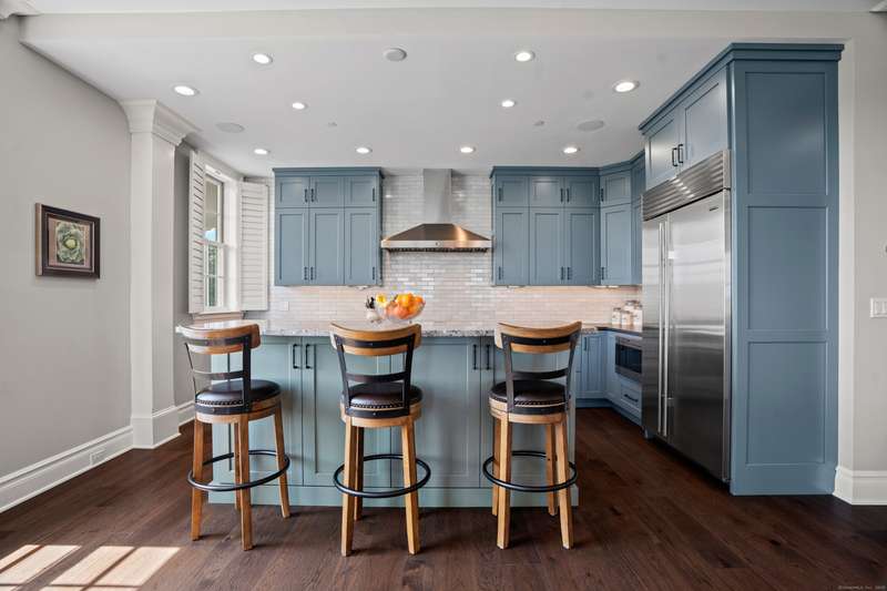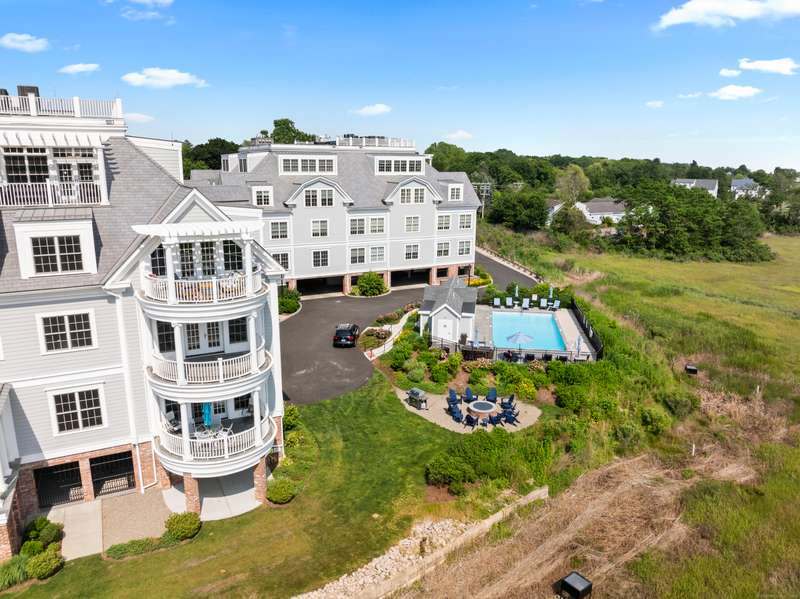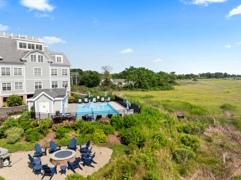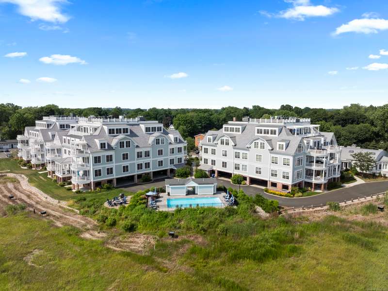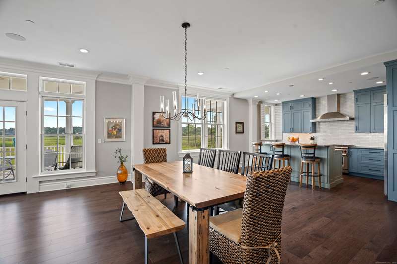 Spectacular Marsh Views and Refined Living at 66 High Street - Guilford, CT! Perfectly positioned on the first floor of the Leete Building, Step into unit 31, a thoughtfully designed open floor plan that blends historic charm with contemporary style. To the right of the welcoming hallway, the chef's kitchen is outfitted with premium stainless-steel appliances-including a Wolf gas range, Sub-Zero refrigerator, granite countertops, a center island, and custom cabinetry. A tall wine cooler and wet bar with leathered soapstone countertops complete the entertainer's dream space. The kitchen flows seamlessly into the dining area and living room, where built-in shelving flanks a cozy gas fireplace. French doors open to a semi-circular balcony offering yr-round, panoramic views of marshland and shoreline. The spacious primary suite also overlooks the scenic views and features a large walk-in closet and luxurious en-suite bath with double vanities, walk-in shower, and radiant heated floors. The