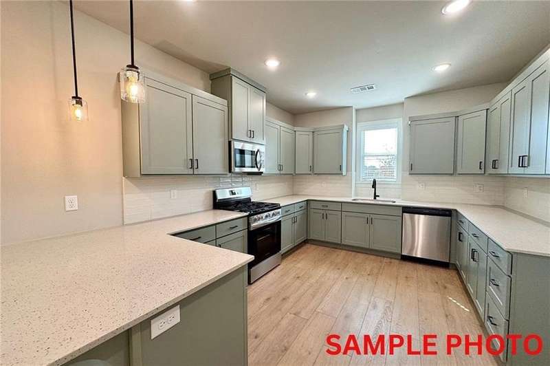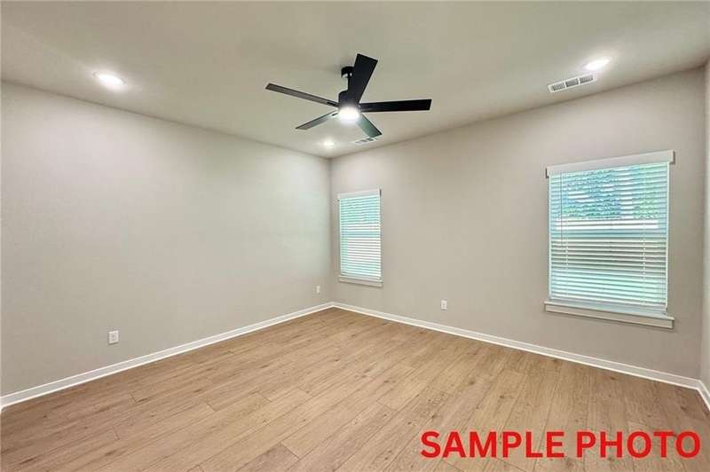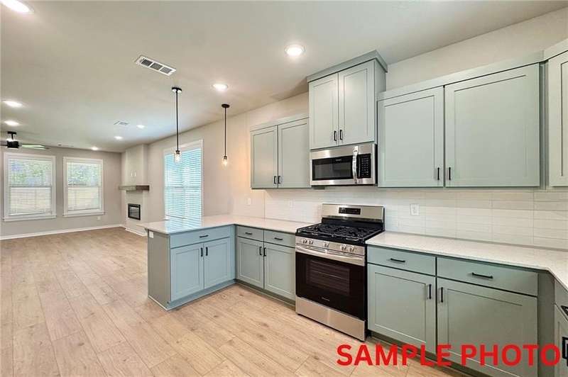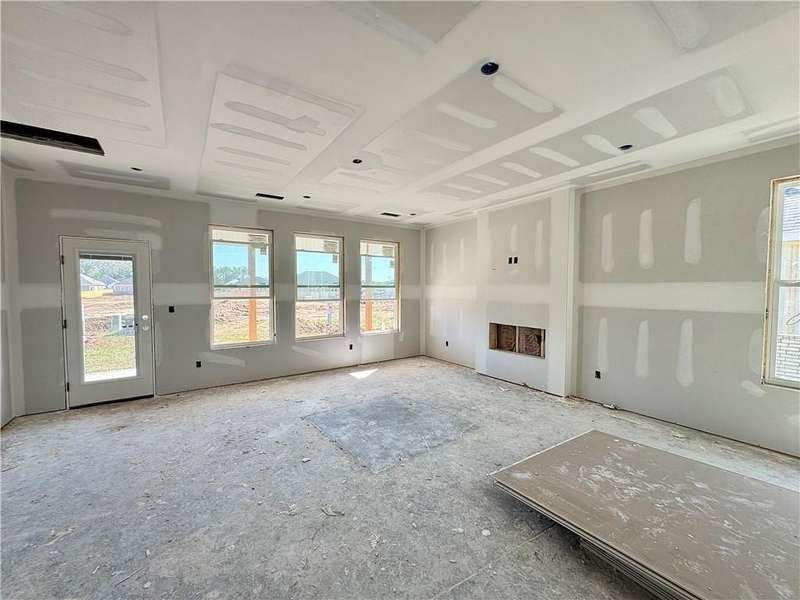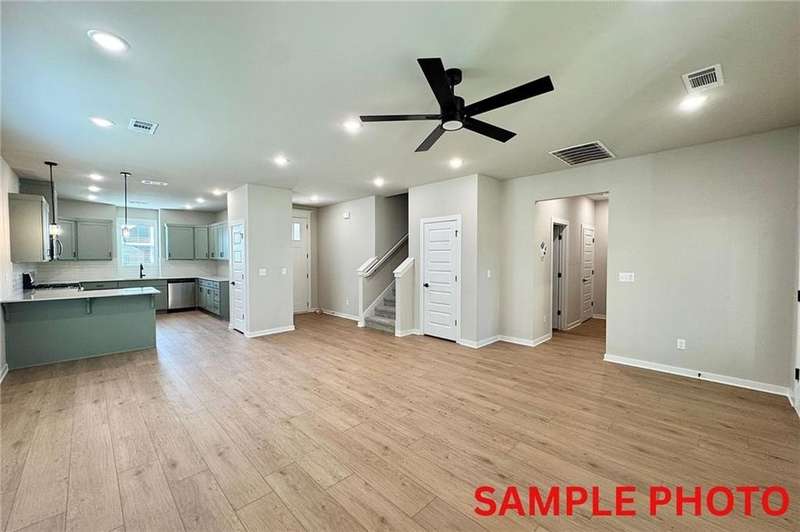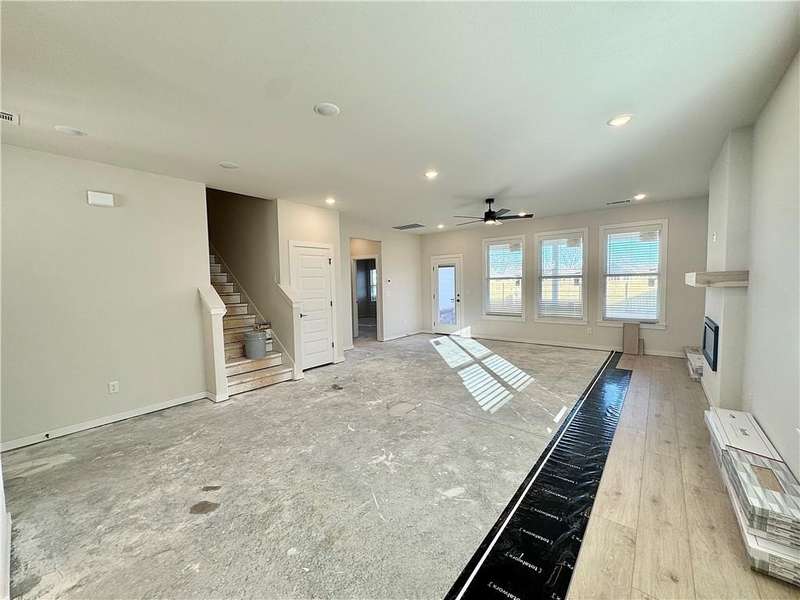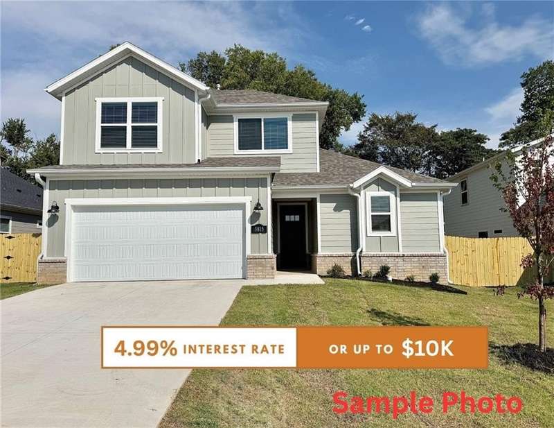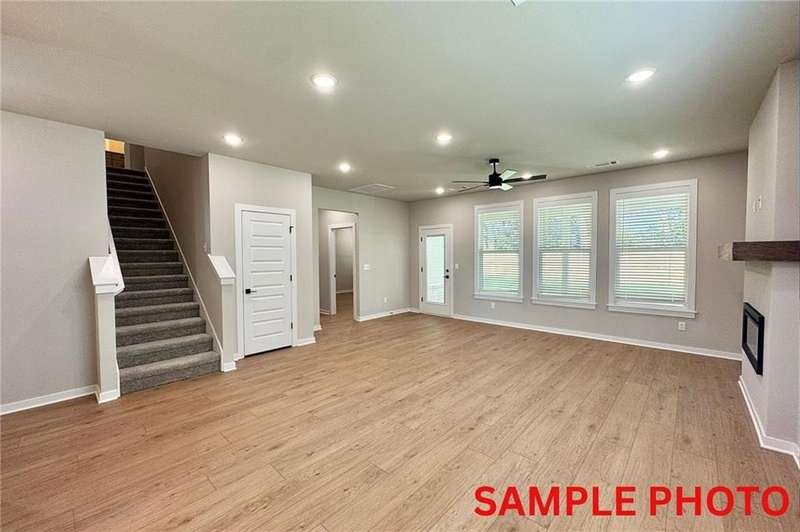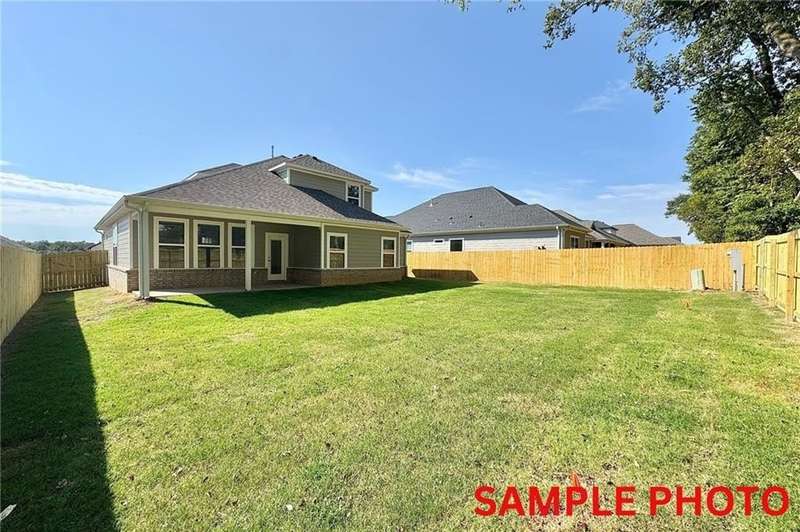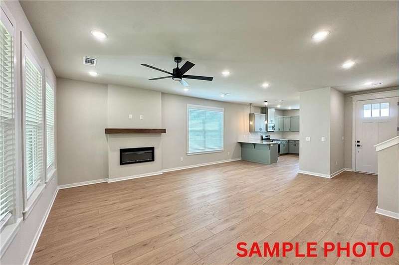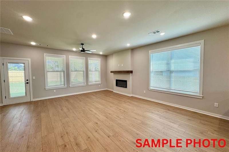 Fence, blinds and gutters included! Discover your dream home in the new neighborhood- Jacob's Crossing. Aiden plan with garage on the left and West facing! 9 ft ceilings, linear electric fireplace in the living room, LVP flooring throughout the main living areas and primary bedroom, quartz countertops and more. Chef's kitchen boasting frigidaire stainless steel appliances, gas range, pantry, quartz countertops, bar pull handles, tons of counter space and gorgeous backsplash. Luxurious primary bedroom features abundant natural light, while the spa-like primary bathroom offers a walk-in shower, double sinks, and spacious walk-in closets. Additional features include three large secondary bedrooms upstairs and a functional laundry room. Nestled on a generous lot with covered patio that overlooks the serene sodded, fully fenced backyard. Sturdy concrete siding! Model home located at 3631 Tranquility St- Lot 1.