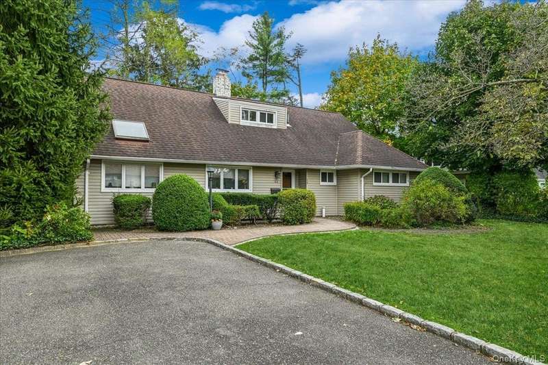 Welcome to 16 Ridge Drive East, Flower Hill, Roslyn- an elegant five-bedroom, two-bath Cape Cod that perfectly balances modern comfort with timeless charm. The first floor features an open and inviting layout, showcasing a spacious kitchen with an island, stainless steel appliances, and a spacious dining area that flows seamlessly into the living room with its cozy fireplace. An oversized den with a second fireplace offers the ideal space for relaxing or entertaining, while two well-sized bedrooms and an updated full bath complete the main level. Upstairs, you'll find two/three beautifully appointed bedrooms and another updated full bath. Ample closet space throughout provides plenty of storage for today's lifestyle. Set on a quarter-acre lot in a peaceful, tree-lined neighborhood, this home is located in Flower Hill within the Roslyn School District and offers convenient access to the Port Washington train station. Discover the warmth, character, and effortless charm of 16 Ridge Drive East-where classic design meets modern living.