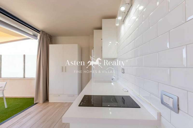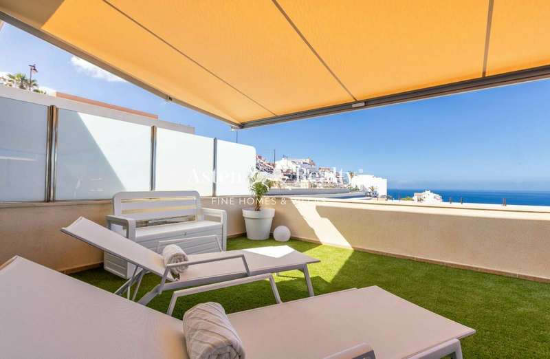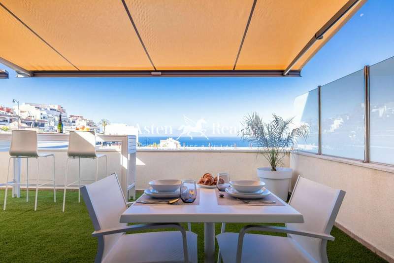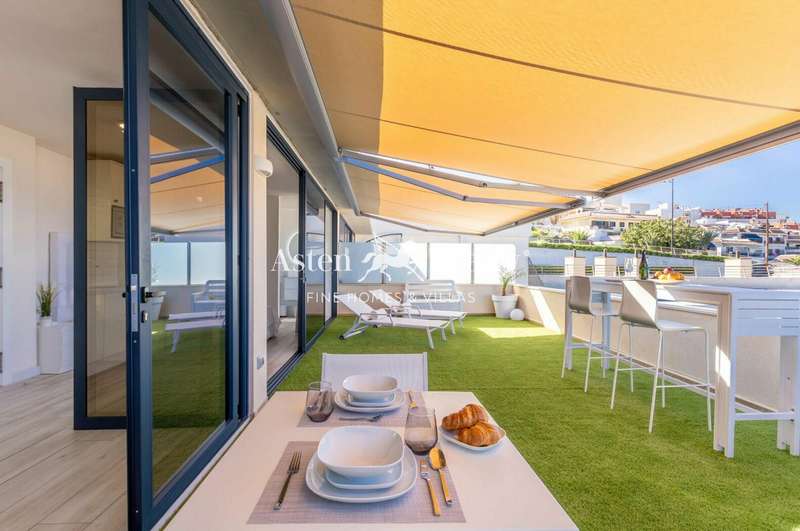 2 penthouses for sale together, located next to each other. One of them is a recently completely renovated studio of 30 m2 and a terrace of 40 m2 with panoramic ocean views. The second penthouse of 78 m2 and 27 m2 of terrace consists of 2 double bedrooms with fitted wardrobes, a complete bathroom, another bathroom en suite, semi-independent kitchen and living room. In total the property has 165 m2.