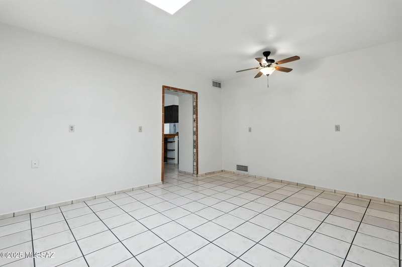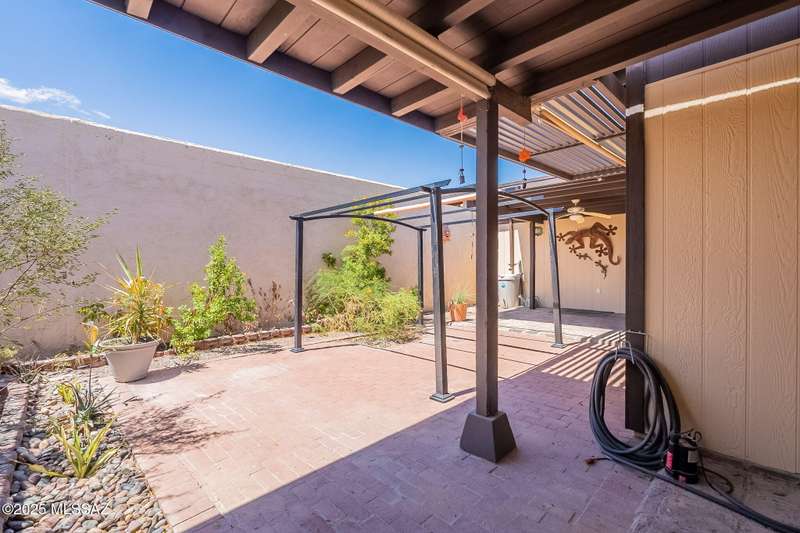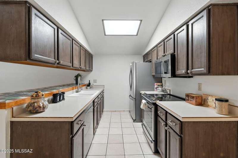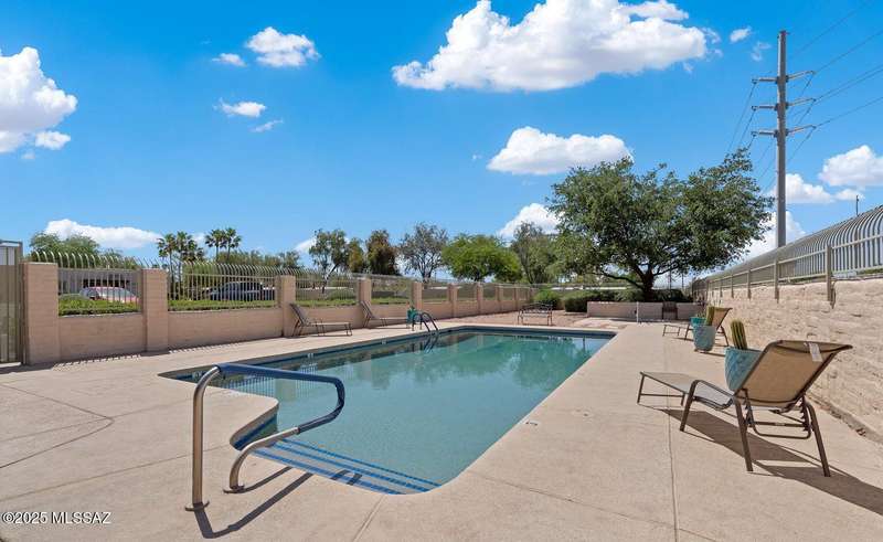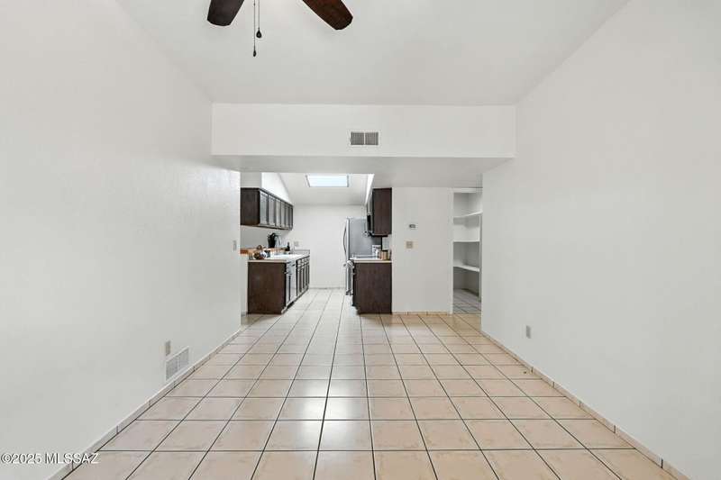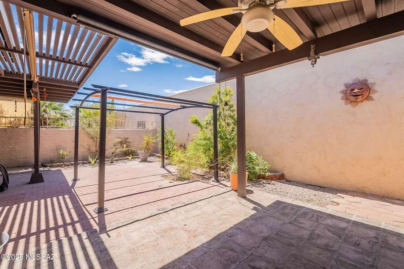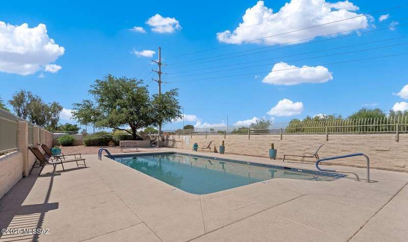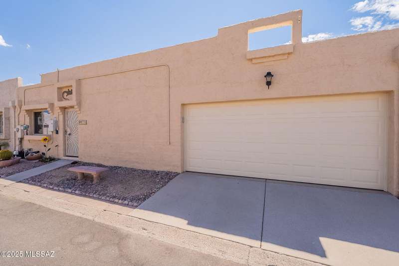 Authentic charming Tucson TH! Bright & airy w/nice neutral tile, multiple skylights & storage galore! Spacious living rm w/plant shelves & plantation shutters adjoins nice kitchen w/built-in shelving, ample cabinet space, tasteful Mexican tile & cozy bar for casual dining. Spacious dining area off kitchen leads out to patio for indoor/outdoor entertaining & can double as a den. Primary suite features patio access & very lg walk-in closet w/ensuite bath. 3rd bd at front of home can be used as office or family rm. Includes massive closet for storage or reconfigure for additional clothing space. Freshly painted interior! Located in desirable community w/access to sparkling pool & spa just minutes from great shopping, dining & other amenities offering comfort, convenience & charm all in one!