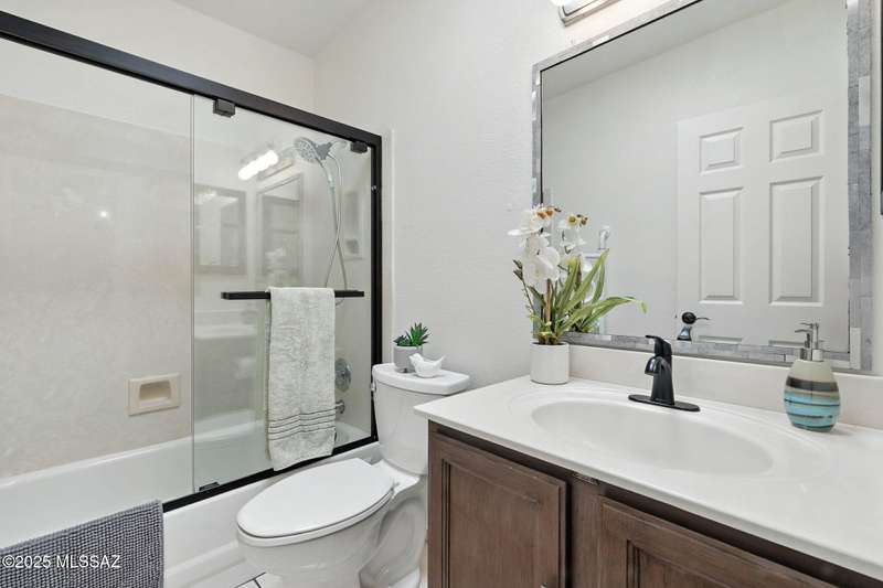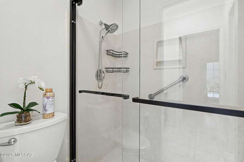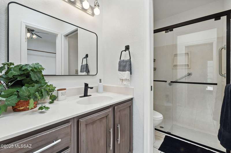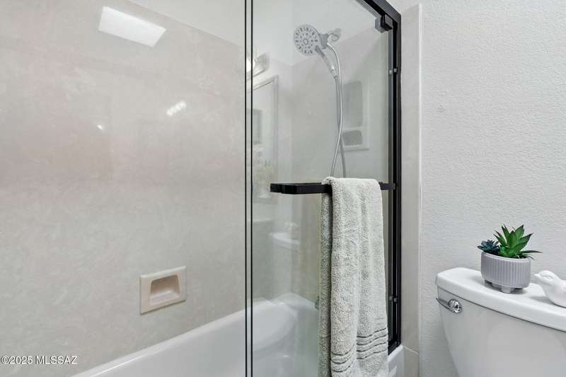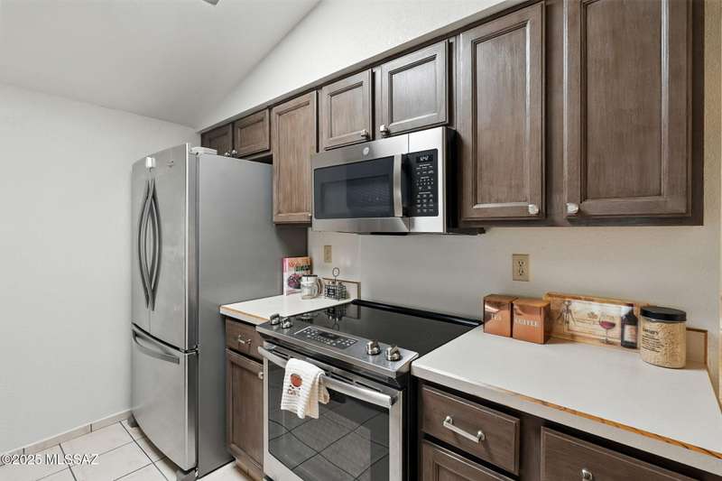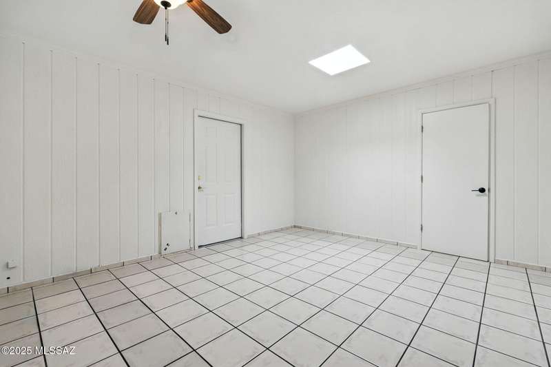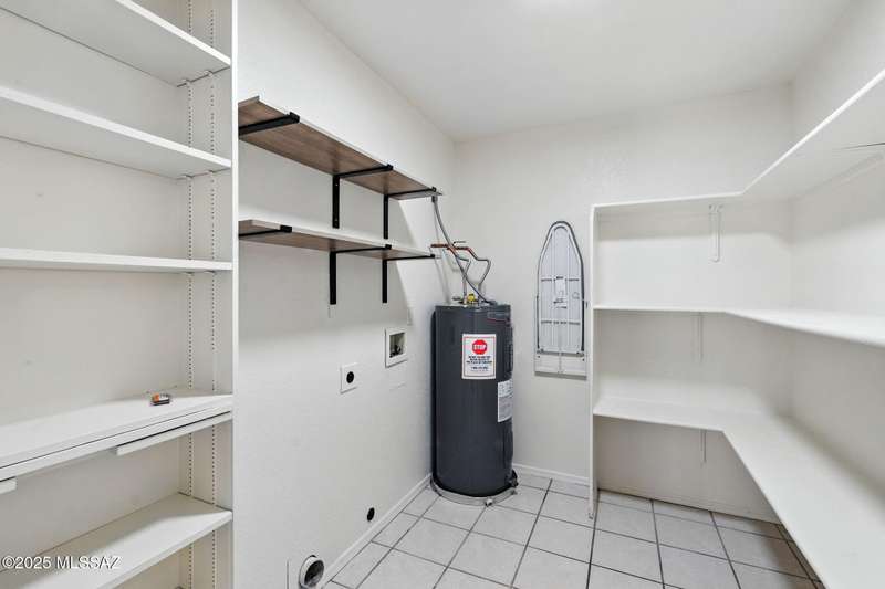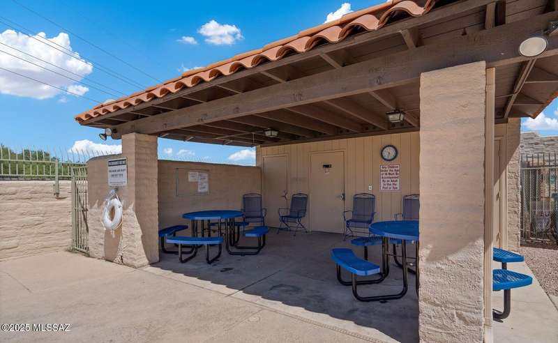 Authentic charming Tucson TH! Bright & airy w/nice neutral tile, multiple skylights & storage galore! Spacious living rm w/plant shelves & plantation shutters adjoins nice kitchen w/built-in shelving, ample cabinet space, tasteful Mexican tile & cozy bar for casual dining. Spacious dining area off kitchen leads out to patio for indoor/outdoor entertaining & can double as a den. Primary suite features patio access & very lg walk-in closet w/ensuite bath. 3rd bd at front of home can be used as office or family rm. Includes massive closet for storage or reconfigure for additional clothing space. Freshly painted interior! Located in desirable community w/access to sparkling pool & spa just minutes from great shopping, dining & other amenities offering comfort, convenience & charm all in one!