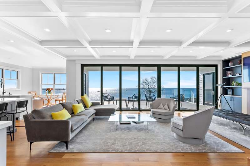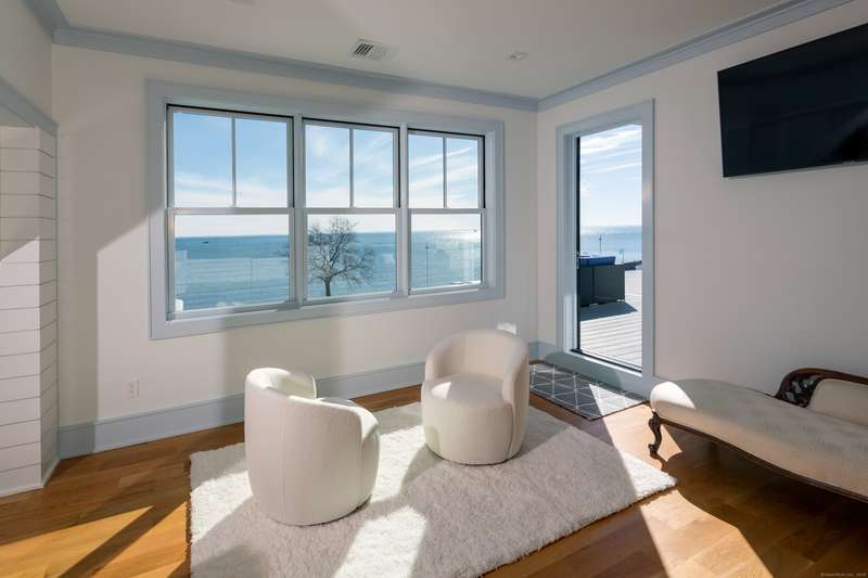 Welcome to 69 Armitage Drive - A Coastal Masterpiece in Black Rock. Discover the ultimate in waterfront luxury at this stunning, newer built residence nestled along the scenic shoreline of Long Island Sound. A true coastal paradise, this modern masterpiece offers panoramic water views, vibrant sunrises & a resort-style lifestyle to enjoy year-round. Spanning 3 beautifully designed levels, this 4-bedroom, 5.5-bath home combines contemporary elegance with thoughtful comfort across 10 spacious rooms. Every room showcases breathtaking views, creating an immersive coastal experience. Key features include, Chef's eat-in kitchen with high-end appliances - perfect for entertaining, two luxurious primary suites - one on the main floor & one upstairs, ideal for guests, in-laws or au-pair, an elegant formal dining room & casual kitchen dining area, multiple waterfront decks for seamless indoor-outdoor living, private in-ground pool & sauna - your personal wellness retreat & professionally landsca