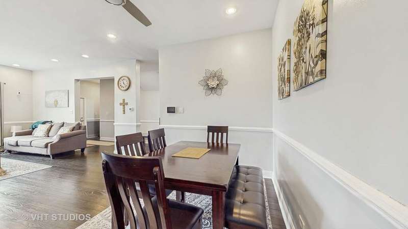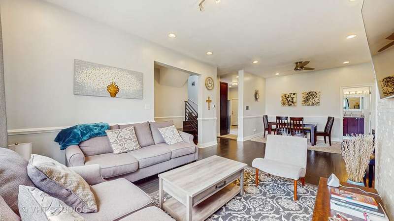 Welcome to this magnificent 4 bedroom/3 bathroom 3-story home, updated to today's style! Gorgeous dark hardwood flooring sets a sophisticated tone as you enter the home, complemented by the over-sized white casement trim and doors that create a fresh and elegant atmosphere. Main level provides a large living and dining room, as well as a spacious family room for memorable gatherings. Spacious chef's kitchen boasts chocolate cabinets, custom glass backsplash, and quartz countertop, accentuating the modern aesthetic. Level 2 has three generous bedrooms, each equipped with ample closet space, and full bath near primary bedroom, offering both comfort and luxury. The third level reveals the fourth bedroom, providing versatility for your needs. Finished basement offers even more livable square footage, with abundant storage options, full renovated bathroom and laundry area. Amazing layout and space under one roof!