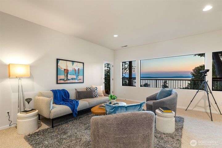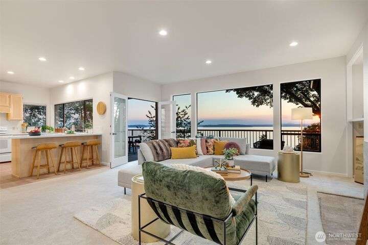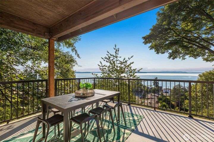 Wake up to sweeping Sound views and unwind with endless Puget Sound sunsets in this Contemporary View Home above Beach Drive. The views stretch from nearly every room, and two large covered decks allow for outdoor living year-round. Solidly Built in 1990 and ready for your updates, the main floor features soaring ceilings, walls of windows, an expansive primary suite, office/second bedroom, full bath, and laundry. The lower level offers a huge rec room, two bedrooms, large bath, and bonus room with its own entrance—perfect for guests or a MIL. Just down the hill are Me-Kwa-Mooks and Emma Schmitz waterfront parks, with Lincoln Park, Alki Beach, and the lively Alaska Junction all nearby.