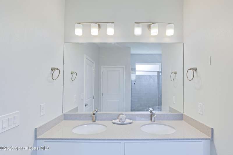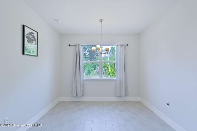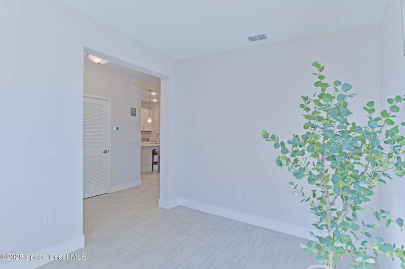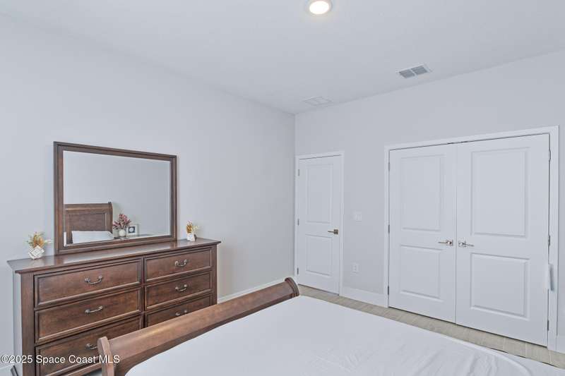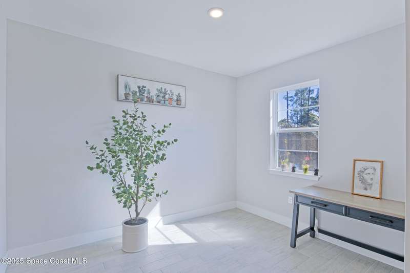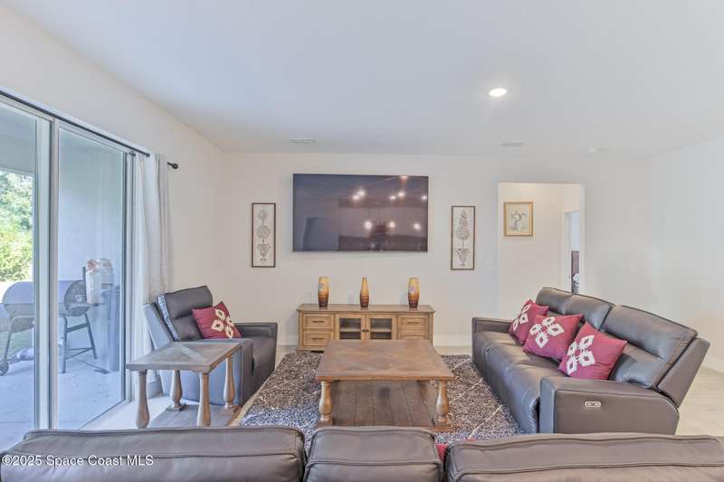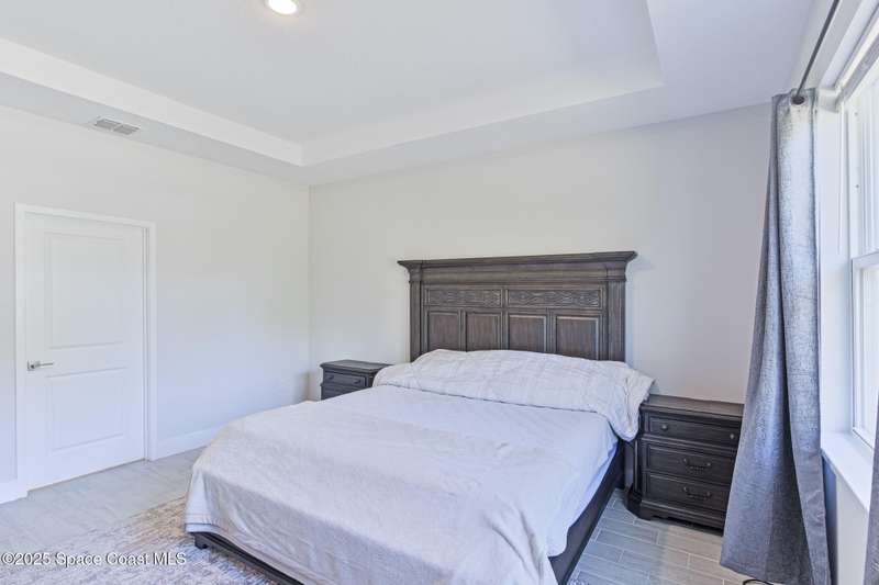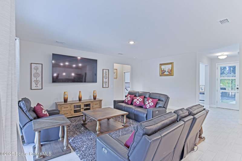 Experience modern Florida living in this brand-new 2023 construction, energy-efficient 3BR/2BA home with huge bonus room in a quiet, desirable area of Palm Bay. This high-quality build offers quartz countertops, luxury tile plank flooring, 42'' hardwood cabinets, LED lighting, and one of the best price-per-square-foot values in Palm Bay. Enjoy an open floor plan with 9'4'' ceilings, a tray ceiling in the master, Energy Star stainless appliances, a 15-16 SEER AC, hybrid water heater, Low-E double-pane windows, and spray foam insulation in exterior walls and the attic for exceptional efficiency and sound reduction. Additional features include a covered lanai, irrigation system, and rain gutters. The elevated lot offers great curb appeal, and the backyard features mature mango and coconut trees for a true tropical touch. Style, efficiency, and value come together in this beautiful home!