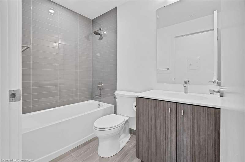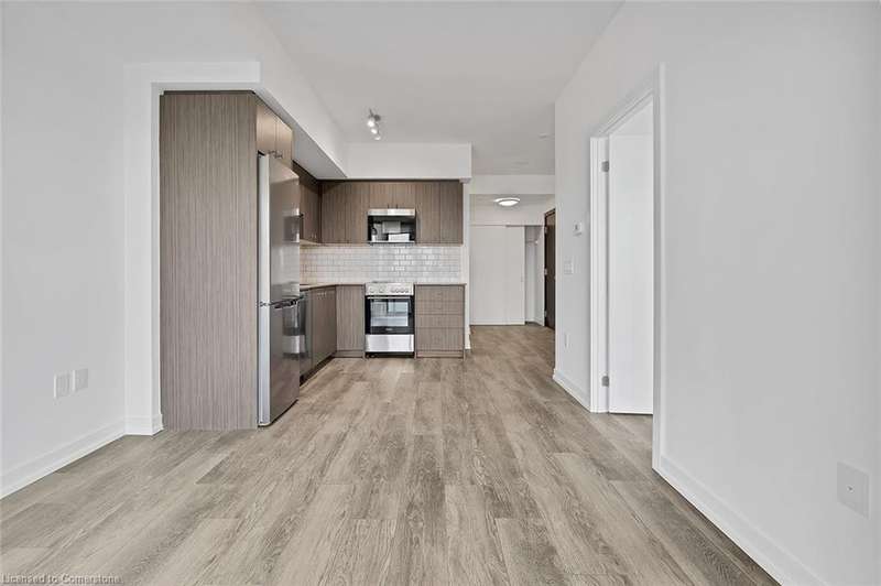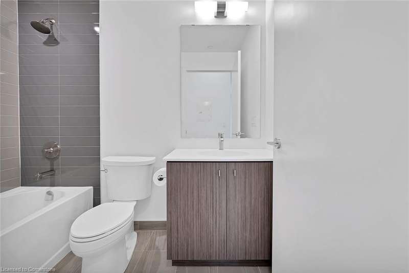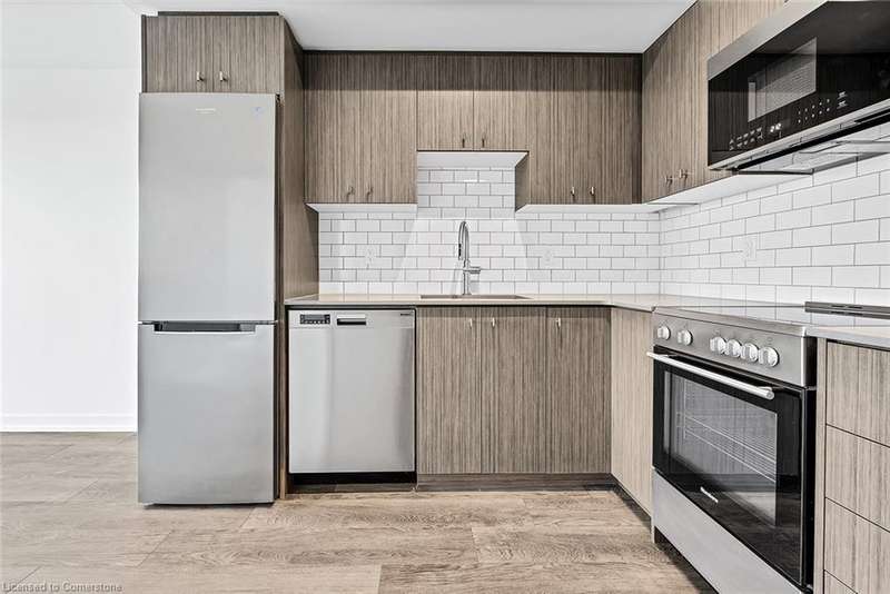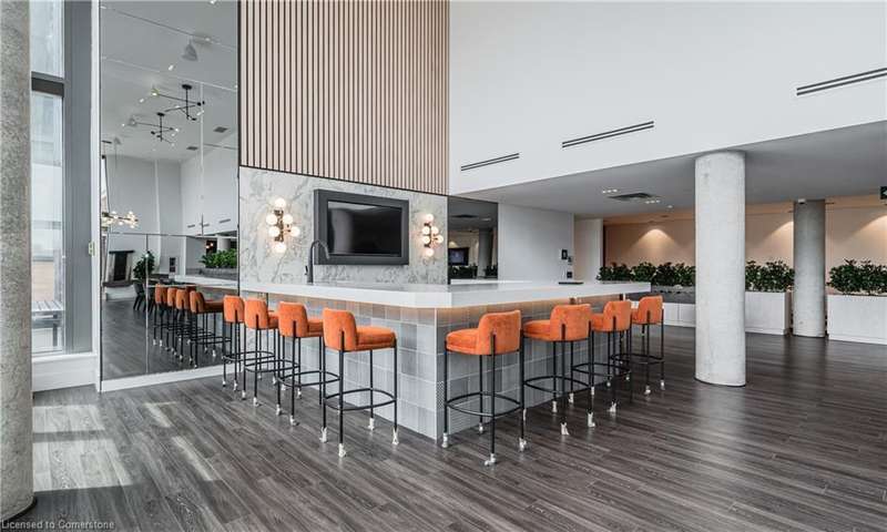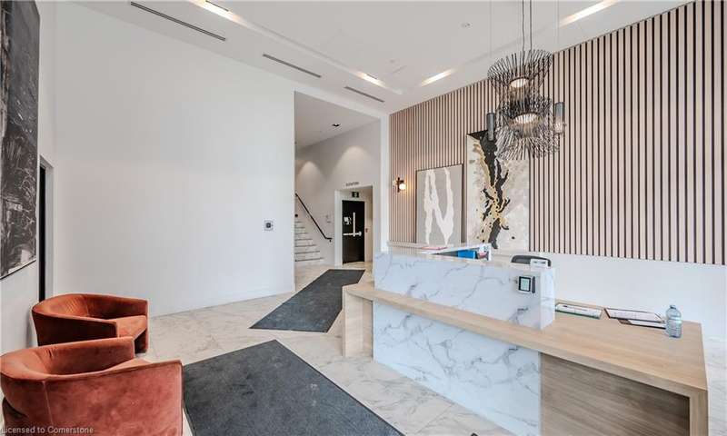 This modern 1 bedroom plus den condo at Station Park in downtown Kitchener offers a perfect blend of urban convenience and contemporary living. The unit features an open concept layout with a spacious living area, a sleek kitchen with stainless steel appliances and granite countertops, a cozy bedroom with ample closet space, and a versatile den that can be used as a home office. Large windows allow plenty of natural light to illuminate the space, creating a bright and inviting atmosphere. Enjoy the convenience of in-suite laundry, a private balcony overlooking the city skyline, and access to a range of building amenities which include: Two-lane Bowling Alley with lounge, Premier Lounge Area with Bar, Pool Table and Foosball, Private Hydropool Swim Spa & Hot Tub, Fitness Area with Gym Equipment, Yoga/Pilates Studio & Peloton Studio , Dog Washing Station / Pet Spa, Landscaped Outdoor Terrace with Cabana Seating and BBQ’s, Concierge Desk for Resident Support, Private bookable Dining Room with Kitchen Appliances, Dining Table and Lounge Chairs, Snaile Mail: A Smart Parcel Locker System for secure parcel and food delivery service. With its prime location steps away from transit, restaurants, shops, and entertainment venues, this condo offers the ultimate urban lifestyle in the heart of Kitchener.