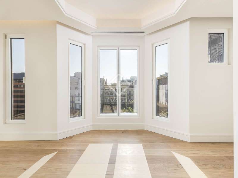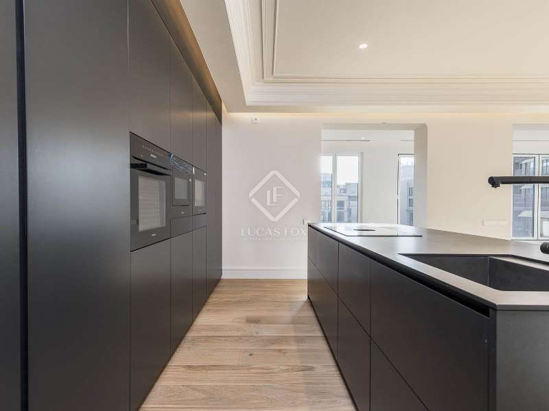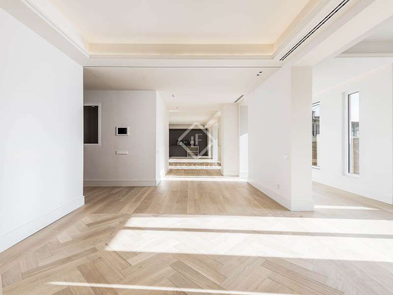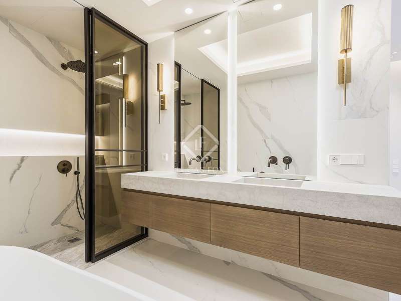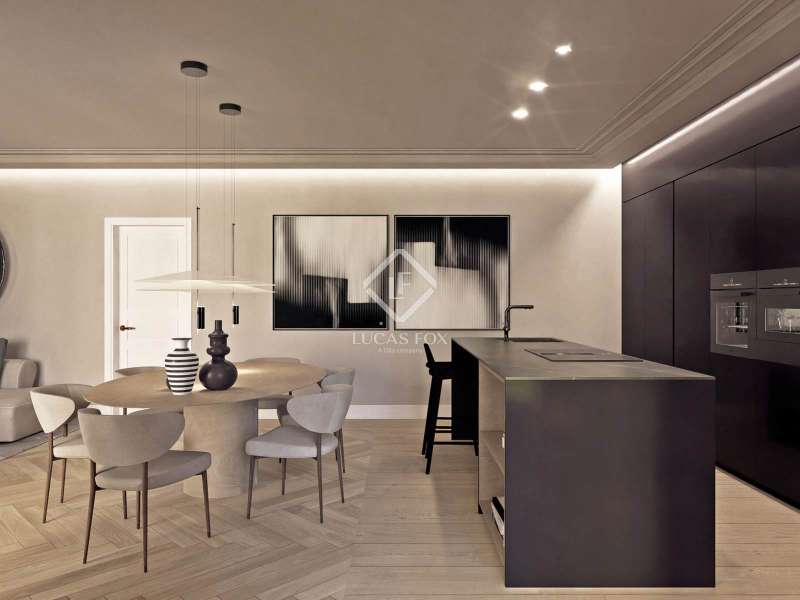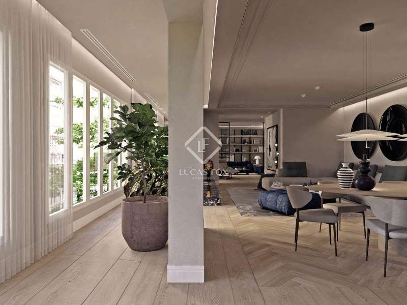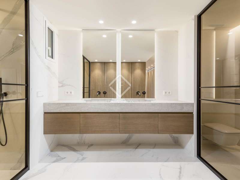 This impressive property of more than 270 m² renovated with top quality finishes is located in one of the most sought-after areas of the city, just a few meters from the iconic Passeig de Gracia. It stands out for its functional layout , as it has no corridor and makes the most of the space. This way, it guarantees an incredible flow of natural light into all its rooms. The day area, facing southeast, offers privileged views of the Mandarin Hotel gardens. It also has a majestic open-plan space of more than 110 m² that integrates a living room, dining room and a spectacular open kitchen with a large central island. The connection to the closed gallery, equipped with accordion-style windows, allows you to enjoy the Mediterranean climate in a unique atmosphere. The night area consists of three spacious suites with private bathroom and dressing room. They face the quiet street Consell de Cent, a recently pedestrianised area from where you can admire partial views of the exclusive Passeig de Gracia. The elegant and functional entrance hall has ample storage space and a discreet guest bathroom , as well as access to one of the suites. The property is equipped with state-of-the-art technology, such as an aerothermics system for ducted air conditioning, underfloor heating with independent control, a water softener and an osmosis system for optimal water quality. It also includes advanced home automation, which guarantees comfort and efficiency. La Finca is in an impeccable state of preservation and has a concierge service. This offers an ideal routine for discerning residents seeking exclusivity, space and an unbeatable location in the centre of Barcelona.