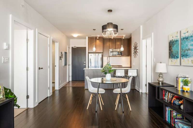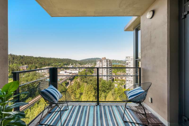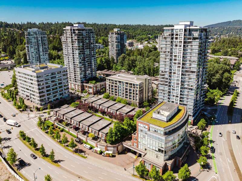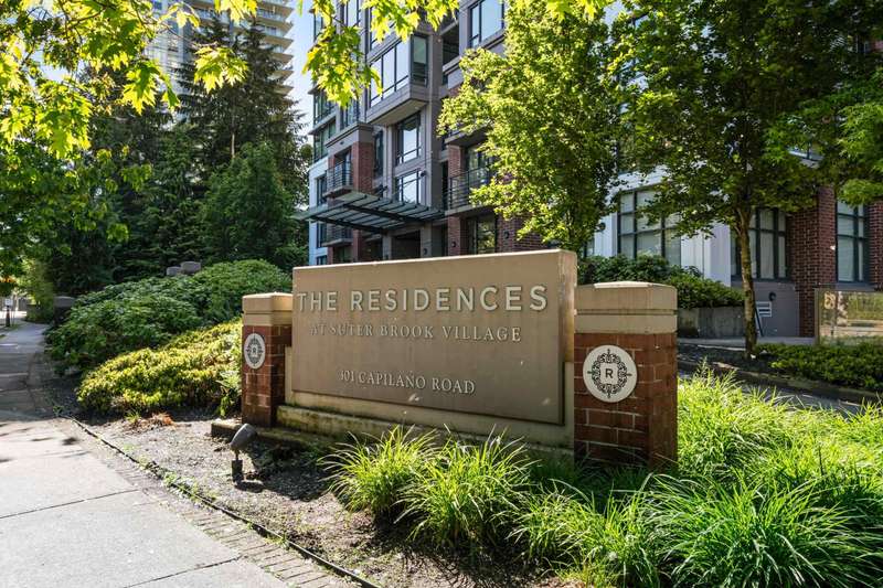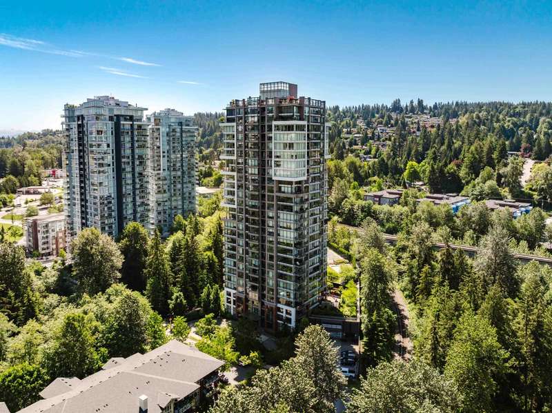 The pinnacle of luxury living with stunning WATER & MOUNTAIN views at The Residences, where nature & urban sophistication converge on the exclusive 22nd floor. Nestled in the heart of Port Moody's vibrant Suter Brook Village, this 2 bedroom & den has a layout for living, working & relaxing. Daytime fills the space w/natural light through floor-to-ceiling windows. Nighttime offers unobstructed wine-infused sunsets over the water from the balcony/indoors. High-end amenities: gym, sauna, steam room, tennis court, conference room, theater/party room, outdoor BBQ & guest suites. Prime location w/trendy shopping & steps from Rocky Point park, trails, Brewers Row, Inlet skytrain & West Coast Express. 2 parking, storage & access to 5 EV stalls. Make your dream lifestyle a reality!