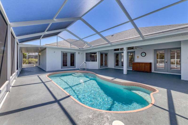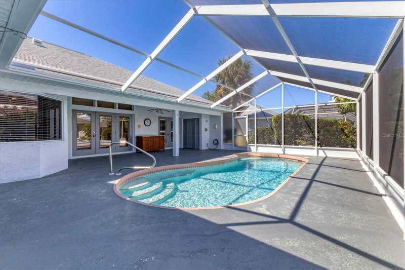One or more photo(s) has been virtually staged. Welcome to Gulf View Estates, a sought-after neighborhood known for its friendly community of all ages, low HOA fees, no CDD fees and close access to Manasota Beach just shy of 3 miles away. The moment you walk through the front door, you are greeted with a sizable living area that promises pool access in the lanai just behind. The sizable main bedroom and bathroom are tucked away directly to your left upon entry with the guest bedroom and bathroom to the opposite right side of the home with the kitchen and second living area separating the two sides. This split-floor plan allows for both you and your guests to enjoy the comfort of each other's own space in their visit. The second living area is located just outside of the guest area so not only do your guests have their own bedrooms and bathrooms but their own living area just outside the kitchen as well. This is the true definition of a split floor plan! With a sizable pool and east-facing patio in your backyard lanai, you can truly welcome the morning sun in all Florida has to offer. Whether you are looking for a cozy footprint to call home, close access to the beach or a home that is welcoming to you and yours, this property is ready to be called home. Call for your private showing!