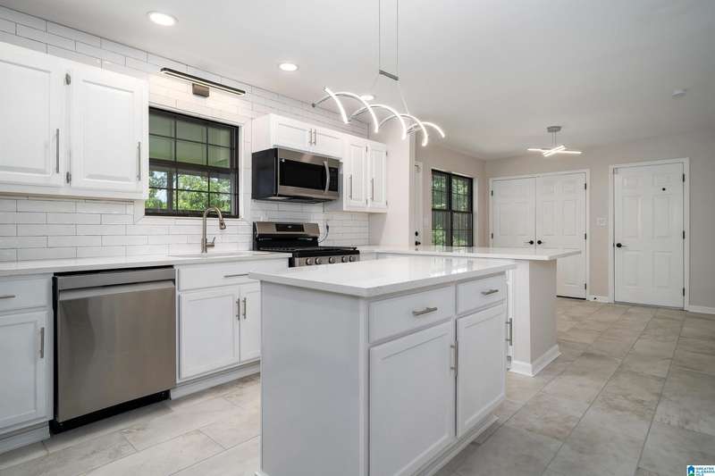 Newly updated MOVE IN ready home boasts an open, airy main level, perfect for everyday living! Virtually staged. The family room is a cozy retreat, new elegant black fireplace, new flooring, paint, complete with gas logs for an inviting ambiance. Adjacent is the dining area, flows seamlessly with French doors into a sunroom filled with natural light. The spacious kitchen features all new stainless steel appliances and floors, beautiful quartz island, ample space for food prep and casual dining. Main lvl includes a laundry closet, updated half bath, and a luxurious master suite with an updated bathroom, Smart LED mirror and expansive walk-in closet. Upstairs, 2 updated bedrooms, updated bathroom, pull down and walk-in attic storage space. Complete basement could use as BNB, includes a fourth bedroom, full bath, a den/media space, a bonus room that could function as an office/play area. Situated on a corner lot, also features a 2 car garage on main level, basement garage, a covered deck!