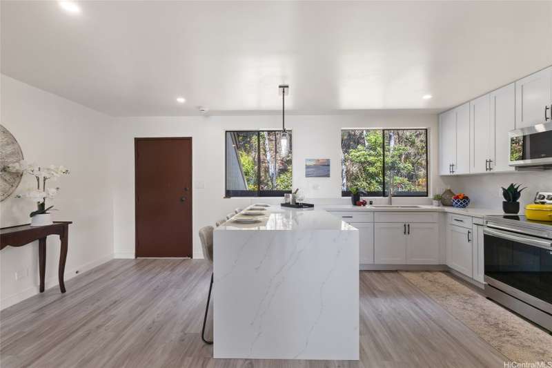 Welcome to this beautifully renovated townhome in popular Hawaii Kai!This bright and spacious 3-bedroom, 2.5-bath home features fresh paint, new kitchen cabinets, quartz countertops, stainless steel appliances, new water heater, updated bathrooms, light fixtures, new carpet, and washer/dryer.The primary bedroom has an ensuite bath and a loft-great for a home office or extra space. . Large windows offer lots of natural light.The open floor plan includes a living room, dining area, and a kitchen with lots of cabinets.Enjoy one covered parking stall with built-in storage, one open stall, and plenty of street parking.Close to Costco, restaurants, beaches, surf spots, and hiking trails. Must see to appreciate. Special Assessment $262.91 ends on Dec 2025.