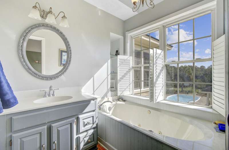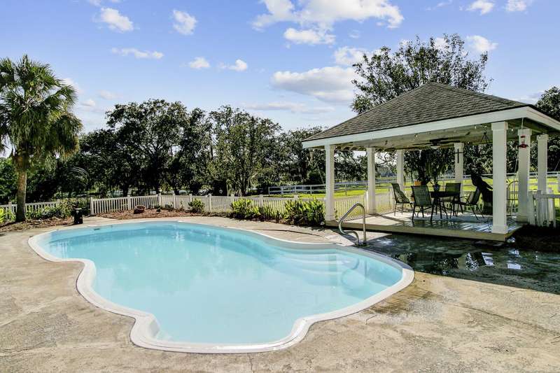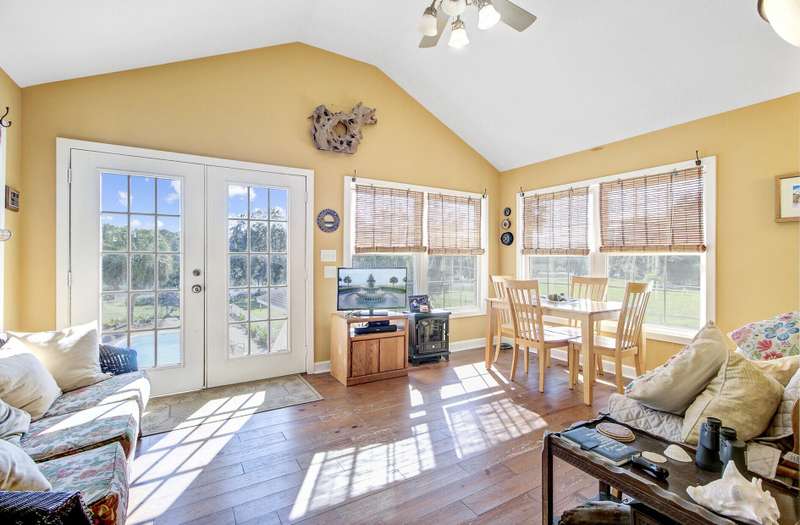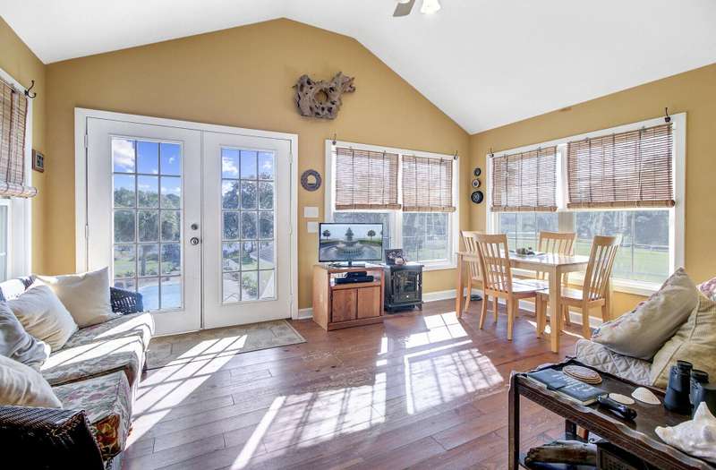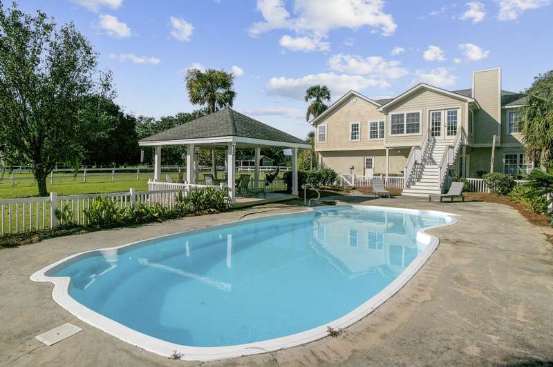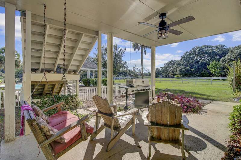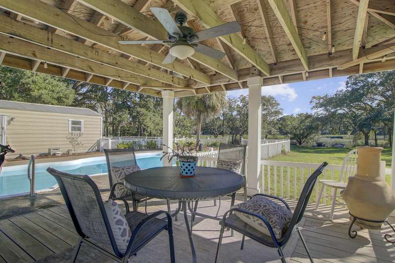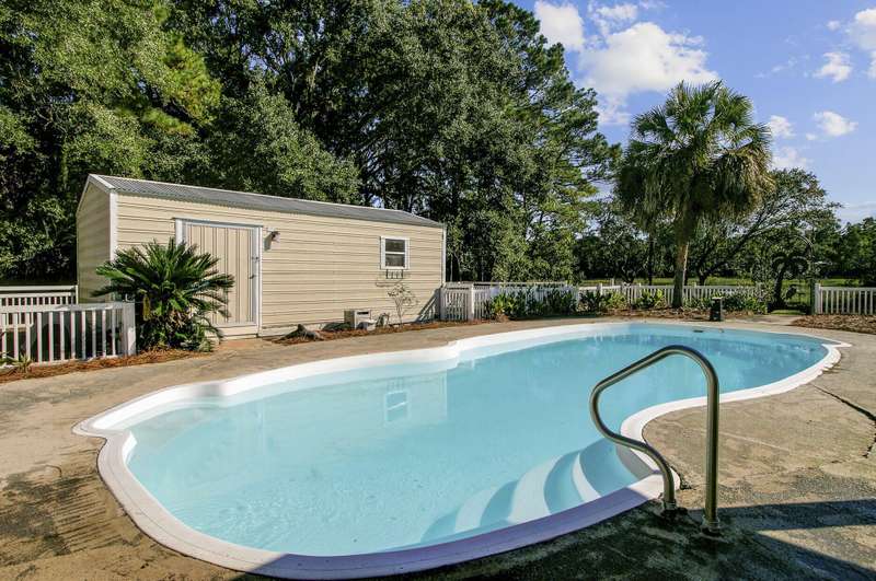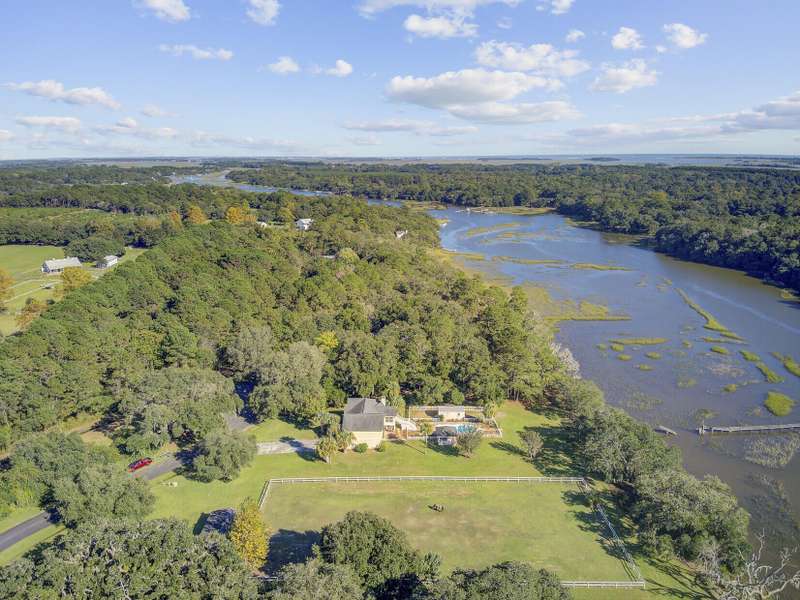 What makes this Johns Island property special? Come and see! The home is within Brickhouse Plantation and set on an estate sized creek front lot overlooking the Abbapoola Creek which leads to the Stono River. This beautiful property near the end of the cul-de-sac is fronted by the pastures of Charleston Area Therapeutic Riding Center with its gorgeous landscape and horses. The backyard is immense and overlooks the creek. A dock is in place that needs repairs and can access the deeper part of the creek. Beside the property is another private pasture with two horses owned by a nearby neighbor. This home exudes peacefulness and tranquility! Enjoy the abundant wildlife including wild turkeys, peacocks and deer in addition to the beautiful horses. The elevated home features vaulted ceilings, a gas fireplace and a sunroom overlooking the pool and Abbapoola Creek. The main living areas and bedrooms are on one level. Below the home is a generously sized 2 car garage and an enclosed heated and cooled recreation area and office. The fenced pool area has a gazebo for relaxing and for protection from the summer sun and there's also a fenced pet area. The neighborhood with only 8 homes on estate sized lots enjoys a community property with a boat ramp. Owner states the equestrian center offers boarding for the horses. These properties in Brickhouse Plantation rarely come on the market, so don't miss this opportunity! The home needs some updating and repairs and is priced accordingly.