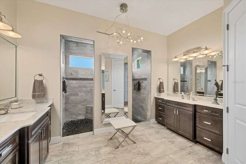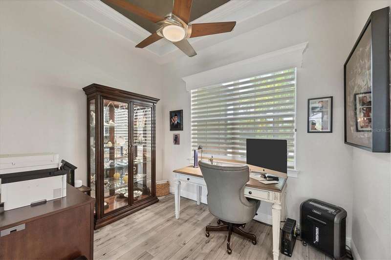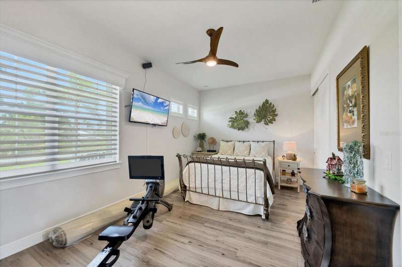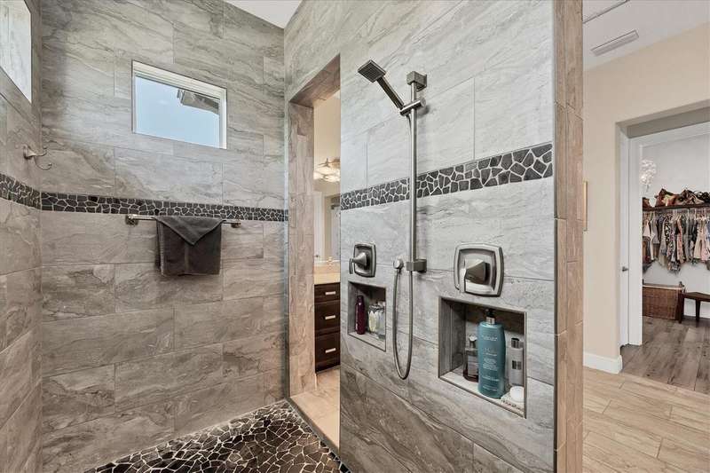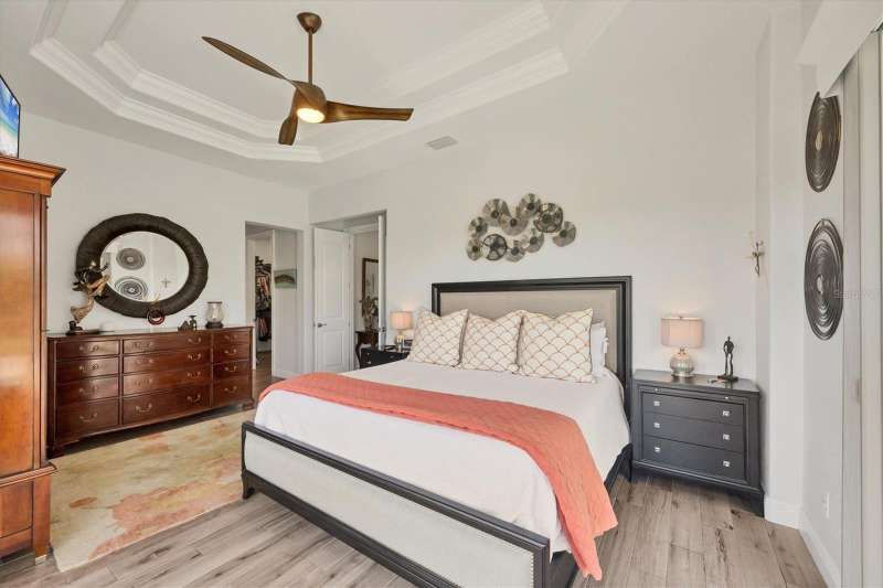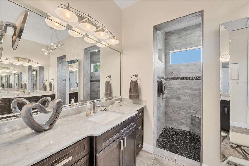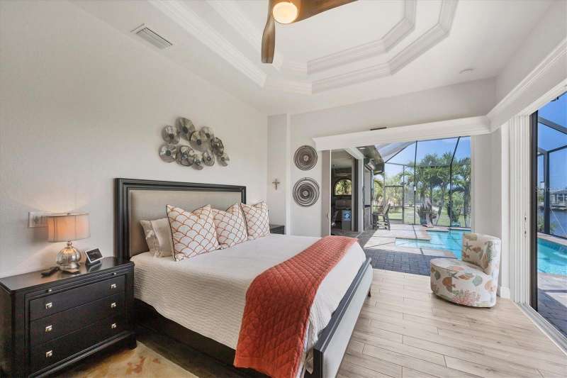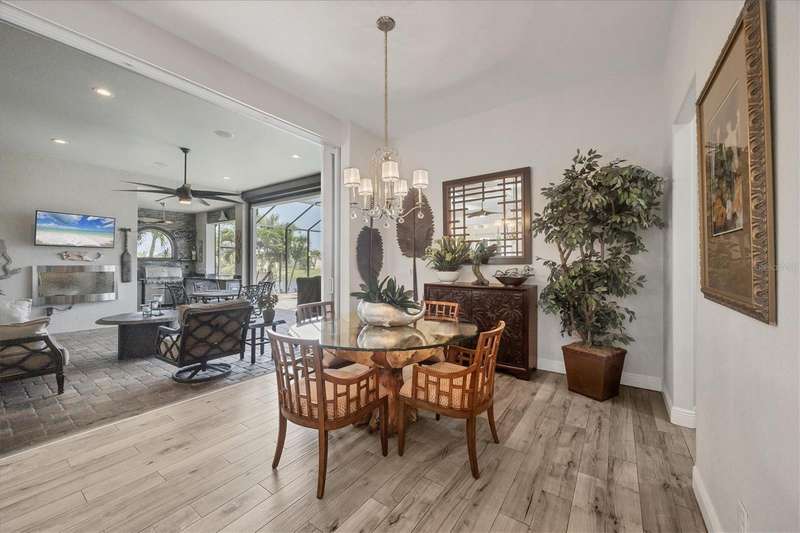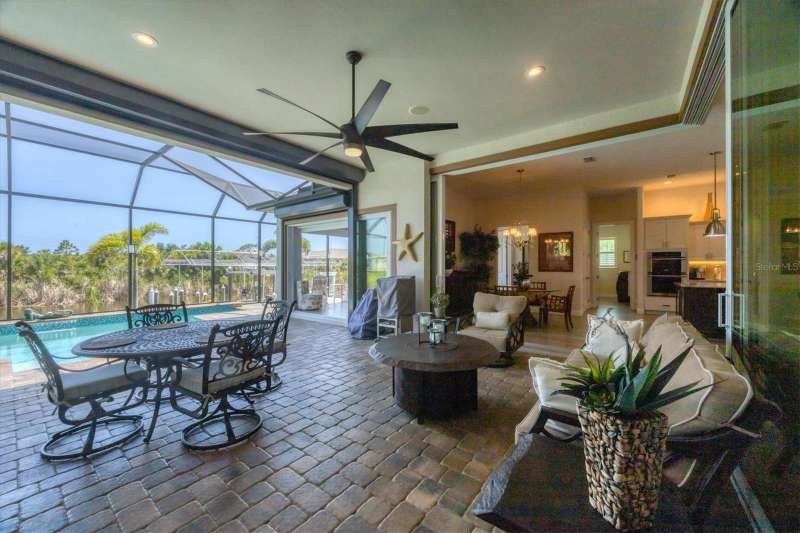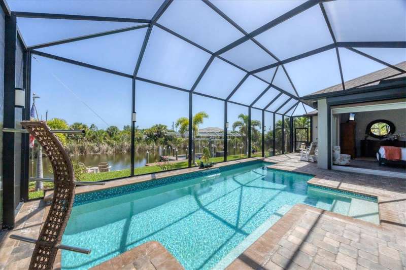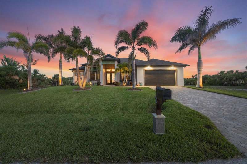 Tucked in a serene Florida waterfront community, this elegant 3-bedroom, 2-bath custom home is the perfect blend of luxury, comfort, and smart design. From the moment you arrive, it’s clear that every inch of this property has been thoughtfully crafted—from the paver driveway and travertine entrance to the gorgeous etched glass double doors that make a striking first impression. Inside, you’re greeted by rich wood-look tile flooring, custom tray ceilings, and a welcoming open layout that flows effortlessly from room to room. The living space is bright and open, with oversized sliders framing stunning water views that never get old. Whether you’re hosting a holiday party or simply relaxing by the electric fireplace with family, this home makes it easy to live beautifully. And the kitchen? It’s a chef’s dream. With a massive 9-foot quartz island, an Electrolux 5-burner induction cooktop, wall ovens, an oversized refrigerator/freezer, and high-end fixtures, cooking becomes a joy — not a chore. You’ll find yourself gathering here often, whether for morning coffee or sunset hors d'oeuvres. The primary suite is a peaceful retreat. Wake up to water views and step directly out to the lanai. The spa-style en-suite bathroom features an oversized walk-through shower, dual vanities, and a 13x8 walk-in closet so spacious it could be its own room. Across the home, two guest bedrooms ensure privacy and comfort for family or visitors. Step out onto the lanai and your private resort awaits. A heated saltwater pool with a soothing water feature invites you in for a dip. Entertain at the fully equipped summer kitchen with a Webber Summit grill and expansive bar space—perfect for laid-back evenings with friends. New pool screens installed in 2023 keep everything fresh and beautiful. And when a storm rolls in? Just press a button—automatic hurricane shutters protect everything, no need to move a single chair. As the sun sets, stroll down the lighted captain’s walk to your private 16-foot composite dock, complete with water and electric hookups and a walk-around 10,000 lb. boat lift—making every boat day easy and effortless. This home is not just beautiful, it’s built for peace of mind. From impact-resistant glass and electric shutters to Icynene insulation, Nest smart home features, and a newly painted exterior (2023), it’s as smart and secure as it is stunning. There are too many extras to list—but one walk through will show you: this is more than a home, it’s a lifestyle. Schedule your private tour today and experience the very best in Florida luxury living.