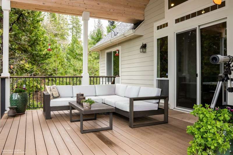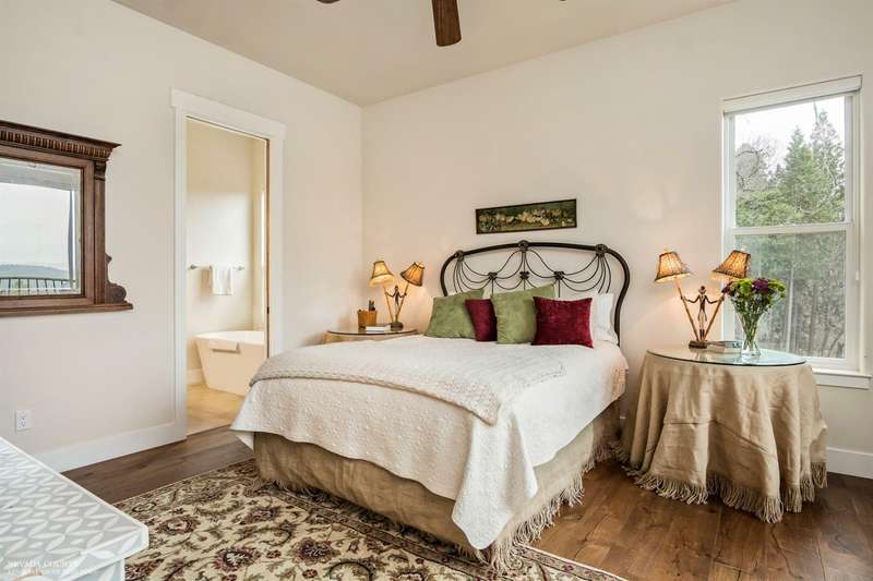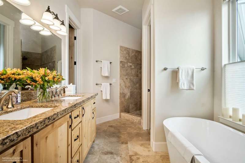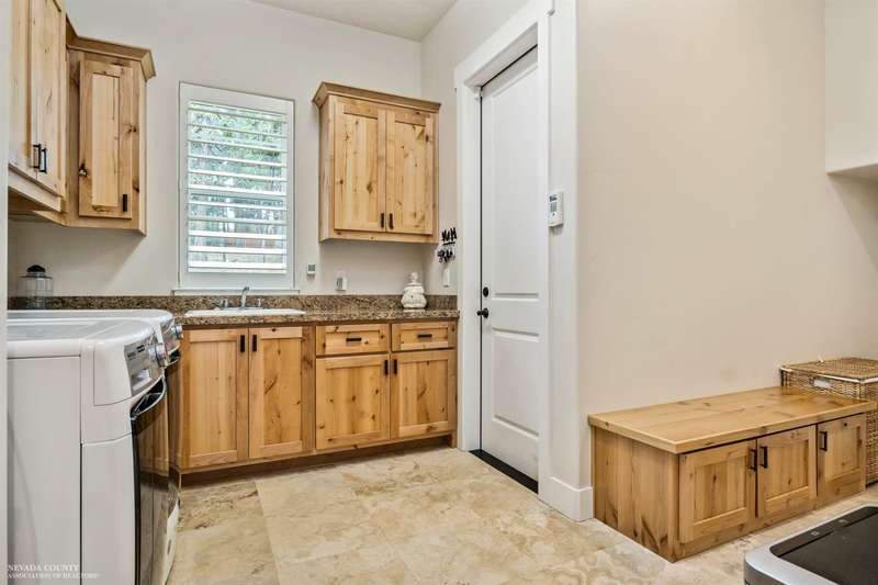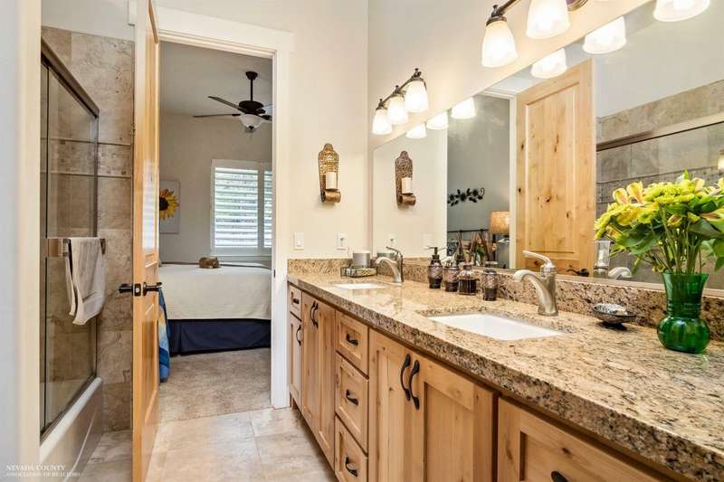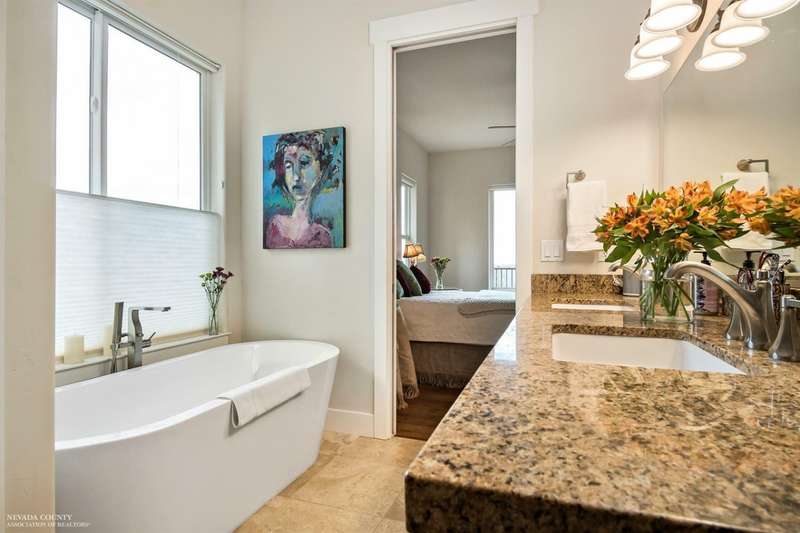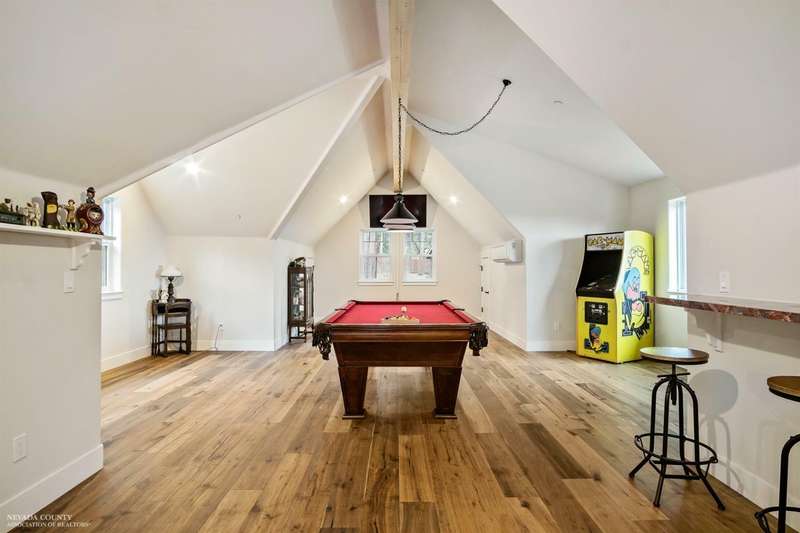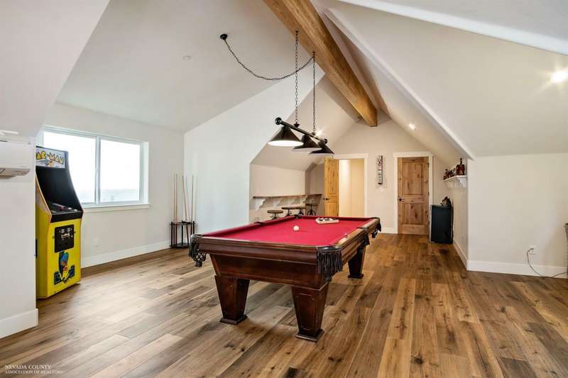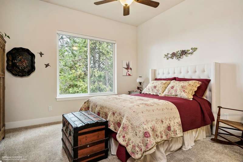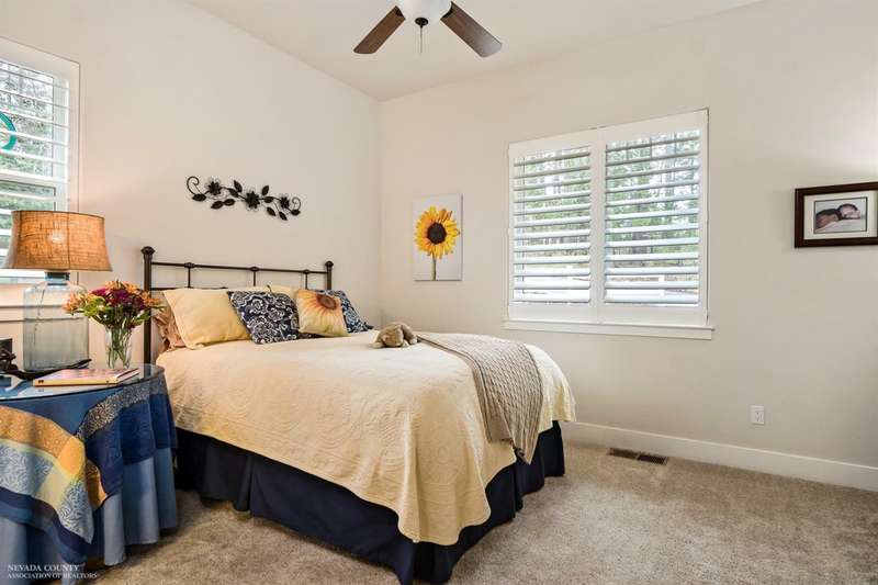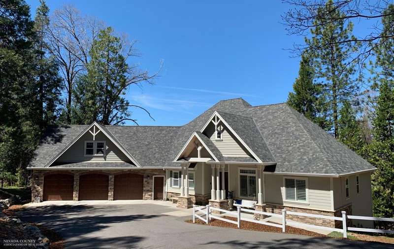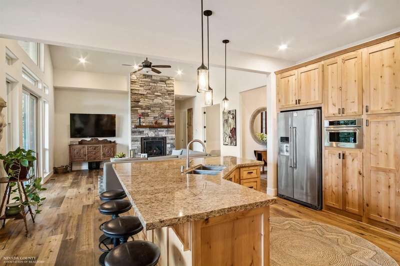Stunning Craftsman style home built in 2016 with one of the most beautiful views in Nevada City! Great open floor plan with 10'-18' vaulted ceilings, natural stone fireplace, solid Brazilian walnut hardwood floors and fabulous open entertainment kitchen with center island, alder cabinets, granite counters and stainless appliances. Oversized sliding glass doors lead to a large and very private covered deck with hot tub and spectacular sunset views for year-round enjoyment. All living is on the main level with a large Master suite with walk in closet, and huge master bath. Lovely and generous guest rooms with bath on opposite end of the house from the master, as well as an office off the main living area with alder cabinets and granite countertop. Huge upstairs bonus loft with vaulted ceilings and hardwood floors. 3+ car garage and additional parking for 4 vehicles on a low maintenance, 2 acre parcel with natural gas and public water. Tankless water heater. Fire suppression system