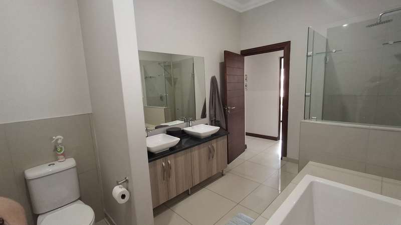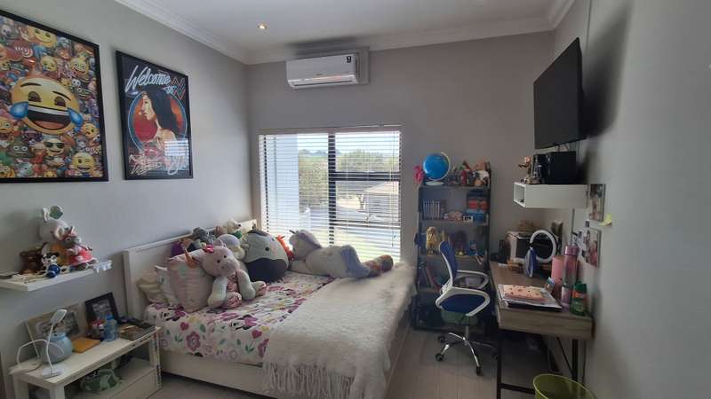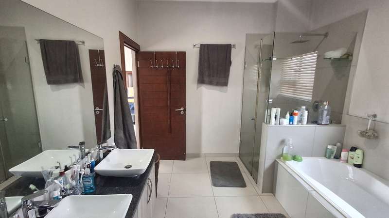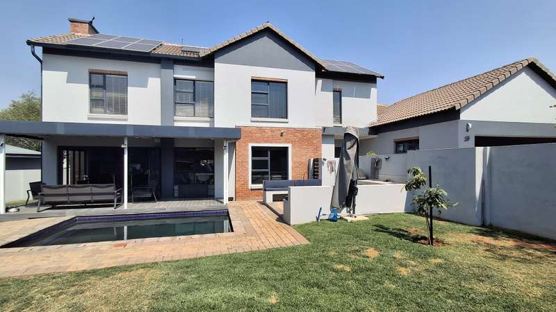 FOR SALE | EXCLUSIVE MANDATE BY REALNET MIDSTREAM Modern Family Living in the Heart of Midstream Hill Step into comfort and style with this beautifully maintained double-storey family home located in the sought-after Midstream Hill Estate. Offering a blend of luxury, functionality, and outdoor charm, this property is the perfect sanctuary for any modern family. PROPERTY FEATURES: • 4 Spacious Bedrooms (including guest suite downstairs) • 3 Modern Bathrooms (Main en-suite + guest bathroom) • Main Bedroom with Walk-in Closet • Linen closet at the end of the hallway upstairs • Air-conditioning in all 4 bedrooms and the main living area LIVING SPACES: • Open-plan Lounge / Family / Dining area • Stylish kitchen with Gas Stove, Electric Oven, and Separate Scullery/Laundry • Under-stair Storage Closet ENTERTAINMENT EXTRAS: • Enclosed Braai/Entertainment Room with built-in Braai and cosy island table • Stacking doors open to a beautiful, decked area with - Automatic Louvre Roof Canopy - Swimming Pool - Newly built Boma – perfect for relaxed evenings by the fire - Irrigated Garden with Water Feature SOLAR SYSTEM INCLUDED: • Sunsynk 8.8kW Hybrid Inverter • 3 x BSL 6.4kWh Batteries • 12 x 390W Solar Panels Say goodbye to load shedding! PARKING & EXTRAS: • Double Electric Garage • Additional parking for 4–5 vehicles • Blinds included throughout the home • Domestic quarters / Staff room with a separate bathroom Located in the secure and family-friendly Midstream Hill Estate, enjoy peace of mind and access to top schools, medical facilities, parks, and more within the greater Midstream community. Call Thiesa Prins at RealNet Midstream today for your exclusive viewing! Homes like this don’t come around often – act quickly before it’s gone!