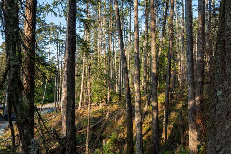 Arbutus Ridge is quickly becoming the place to be if you love contemporary architecture in a stunning setting of tall Douglas Firs & rocky outcrops. This 1.0 acre building lot is in its natural state which allows you to keep as many trees as you want for privacy, or thin them out to let in some more light – you choose. Currently, the property has beautiful filtered light all day long. Sunsets create vignettes that beg to be subjects of paintings. The terrain is gently sloping with a prominent rock bluff at the SE corner. A shared septic field is already installed on a nearby property with connection at the lot line. Walk to King Edward Bay Beach in about 10 minutes, where 2 private mooring buoys await (included). Forest bathe for hours with hiking with trails at your doorstep.