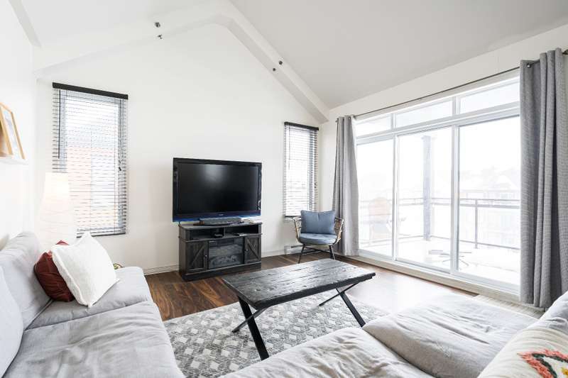 Welcome to this stunning and bright top-floor condo, offering a perfect blend of comfort and style. The spacious living area is highlighted by cathedral ceilings that create an airy and open feel throughout. With 2 well-sized bedrooms and a large, beautifully appointed bathroom, which features both shower & bathtub, this home provides the ideal space for relaxation and convenience.The primary bedroom also features a large walk-in closet, offering plenty of storage. See Addendum