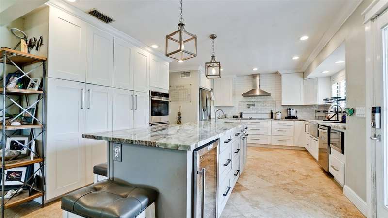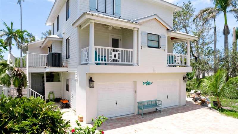 Looking for the perfect property to build a boat dock on Palma Sola Bay? There is a Coastal charm in this waterfront home! Tucked along the shores of Palma Sola Bay, this beautiful residence offers sweeping water views, custom finishes, and versatile living spaces — including a private Airbnb-ready suite on the first floor with a strong rental history! Upstairs, the heart of the home features a gourmet kitchen with custom cabinetry, thick granite countertops, pot filler and center island. Entertain in the open-concept living area or unwind on the second-floor lanai with Palma Sola Bay views. Also on this level, each bedroom includes an en-suite bathroom and private porch, offering ideal accommodation for guests. The luxurious primary suite is a retreat with elegant tray ceilings, coffee bar, huge walk-in closet, and spa-inspired bathroom complete with a freestanding tub, double vanity, and separate glass shower. Additional highlights include a spacious walk-in laundry room. Step into the backyard and onto your private kayak dock — perfect for fishing, kayaking, or paddle boarding in the serene bay waters. Whether you are seeking a luxurious primary residence, a multi-generational home, or a profitable rental opportunity, this Palma Sola Bay gem checks every box. Outdoor living is just as impressive, with storage space for yard tools and pool gear right off the lanai. Extras include fire pit, metal roof car port, and planation shutters throughout.