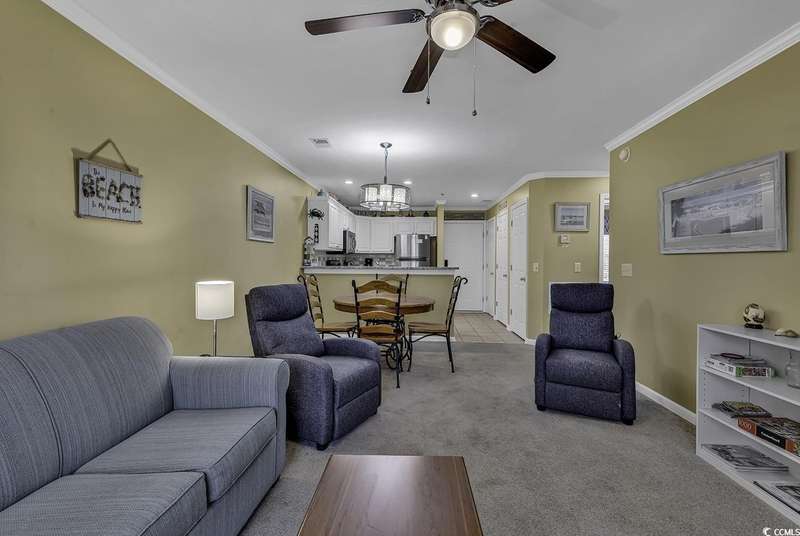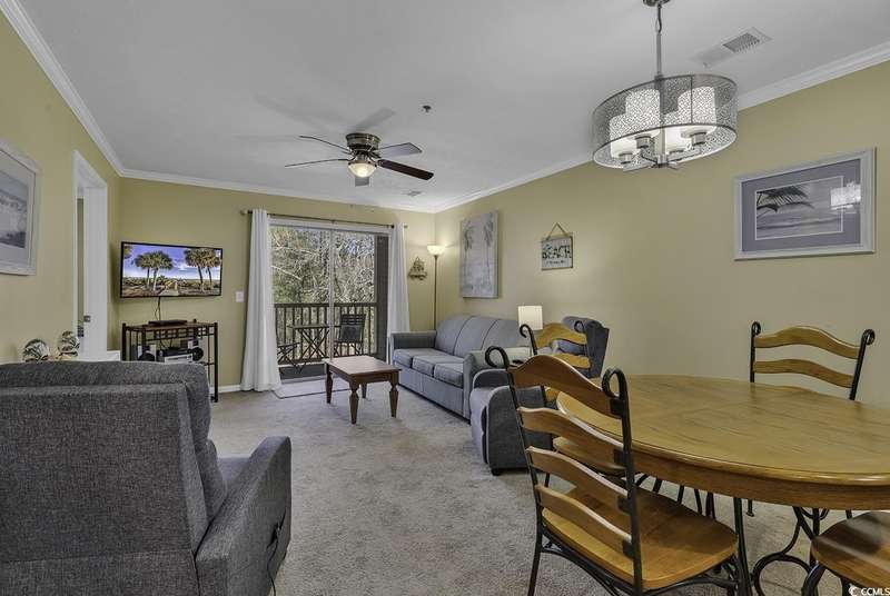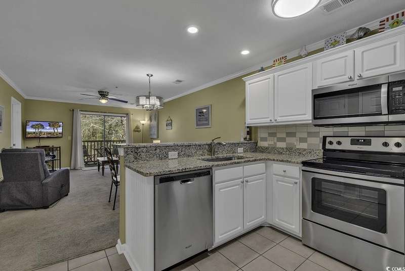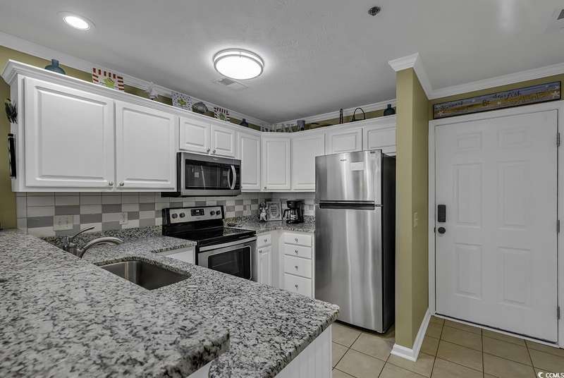 Welcome to 562 Blue Stem Drive, Unit 54-K, a beautifully updated and fully furnished 2-bedroom, 2-bath villa in the heart of Pawleys Island in the sought-after True Blue Community. This spacious second-floor unit offers a bright and airy living area, providing a quiet and relaxing retreat. The updated kitchen boasts stainless steel appliances, granite countertops, and updated cabinetry, making it both stylish and functional. The Master Bedroom features a luxurious King-size bedroom set and private bath. The second bedroom is furnished with two Twin beds and offers ample space for guests. Both bathrooms are updated with granite countertops. Step out onto the shaded screened porch, perfect for enjoying the tranquil surroundings at any time of day. The unit overlooks the golf course and woods at True Blue Golf Club, ranked one of the top 100 public courses in America by Golf Digest, offering scenic views and a peaceful atmosphere. Located just off Highway 17 with easy access to Kings River Road, you'll find the beautiful True Blue and Caledonia golf courses nearby, along with 6 other courses within a 10-minute drive. Shopping, dining, and beach activities are all within close proximity. For nature lovers, world-famous Brookgreen Gardens and Hobcaw Barony are just a short drive away. Myrtle Beach is a quick 45-minute drive to the north, while historic Charleston is only 90 minutes to the south. The True Blue community offers access to golf, tennis, pools, and hot tubs. Don't miss out on this fabulous opportunity to experience everything True Blue and Pawleys Island have to offer!