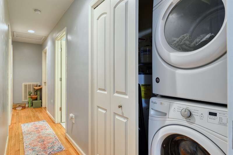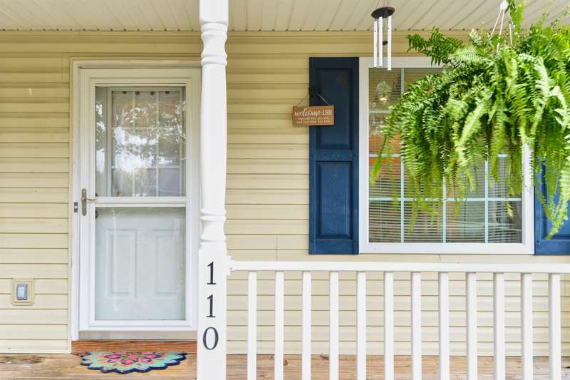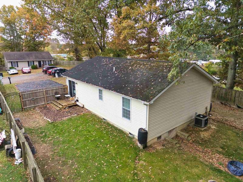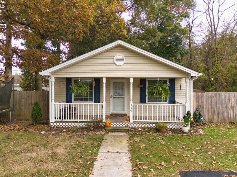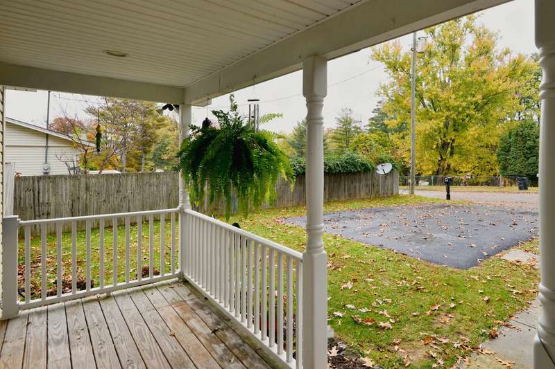 Welcome to this lovely home, offering comfort, privacy & efficiency-all on one convenient level! The spacious eat-in kitchen provides plenty of cabinet & counter space, perfect for cooking & entertaining. The open floor plan connects the kitchen & dining area w/ the living room creating a warm & inviting space for gatherings. Step outside onto the side deck to enjoy relaxing evenings or morning coffee. The primary bedroom features its own private bath, while two additional bedrooms share a well-appointed hall bathroom. The laundry area is conveniently located in a hall closet for easy access. You'll appreciate the energy efficiency of 2x6 exterior walls with the addition insulation. Paved driveway offers ample parking & the privacy fence on three sides makes the backyard a peaceful retreat. A covered front porch provides the perfect spot for a couple of rocking chairs or porch swing! The storage building has lots of space too. Located at end of a cul-de-sac offers additional privacy!