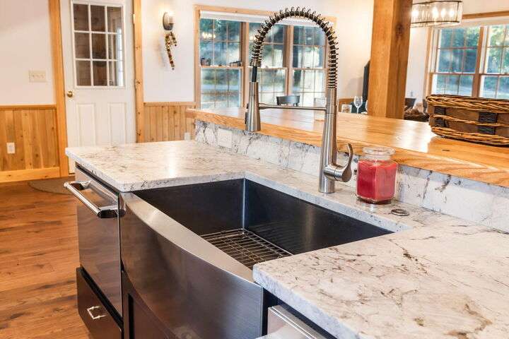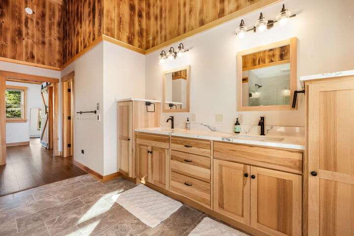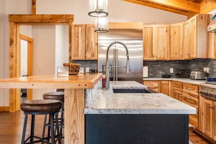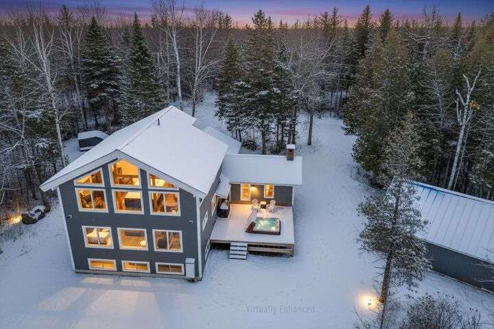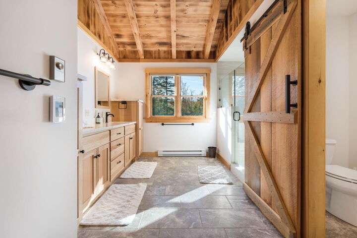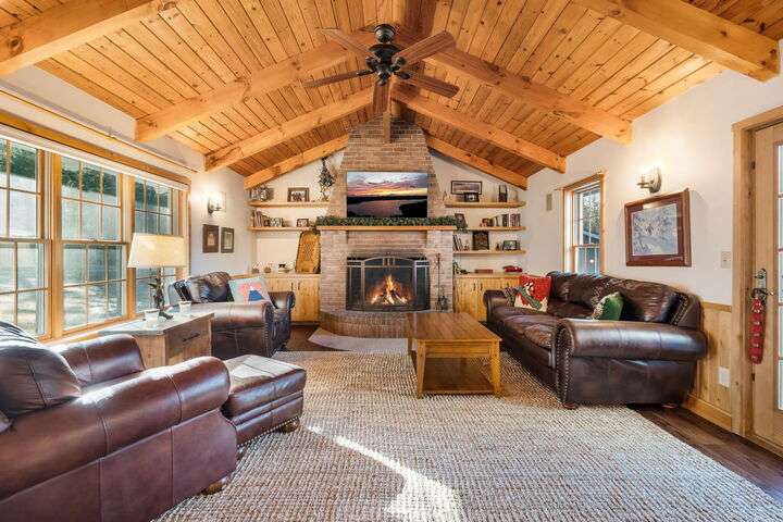 CARRABASSETT VALLEY - Your dream ski retreat awaits in this turnkey 4-bedroom, 4-bath home in Sugarloaf Village! Step inside and fall in love with its spacious layout, showcasing beautiful exposed white pine beams and tongue-and-groove ceilings. The custom kitchen is a chef's delight, featuring granite countertops, a stainless farmhouse sink, a high-end gas range, and custom hickory cabinets. From there, the wood flooring leads you seamlessly to the open living and entertaining area, complete with an impressive Maine stone fireplace and hearth that brings all the charm of a mountain lodge. ** SUGARLOAF SHUTTLE STOPS Right at the house!** This home includes two well-appointed bedrooms, along with an exquisite primary suite. Floor-to-ceiling atrium windows offer sweeping views, letting you enjoy the soft fall of snow on the pines as you relax by your private fireplace. The craftsman-style ensuite provides a tranquil escape, perfect for unwinding after a day on the slopes, or enjoy a soak in the hot tub for ultimate relaxation. Additional amenities include a detached garage with ample storage and private guest quarters, providing convenience and privacy. Tucked away in the foothills of Sugarloaf Mountain, this home combines modern comforts with the cozy ambiance of a mountain retreat—don't miss your chance to make it your own!
