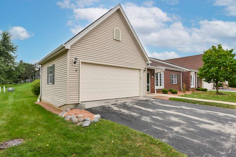 This inviting 2-bedroom, 2-bathroom condo offers comfort, convenience, and style. Inside, you?ll find all new flooring throughout and a bright, open layout. The kitchen features a convenient breakfast bar, perfect for casual dining or entertainment. Living room boasts vaulted ceilings and a gas fireplace, creating a warm and inviting space with patio doors. The spacious primary bedroom includes a walk-in closet and en suite bathroom. Main floor laundry adds ease to everyday living. An unfinished basement provides plenty of storage or the opportunity to create additional living space. This end-unit location provides extra privacy and natural light, making it a wonderful place to call home.