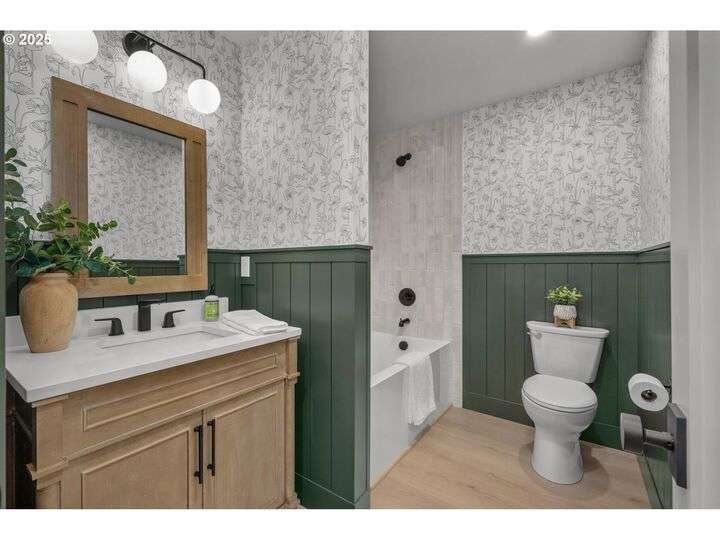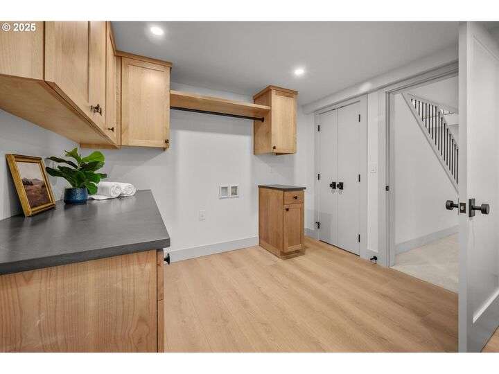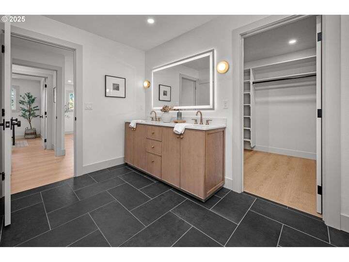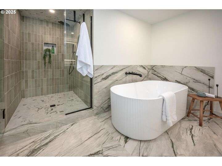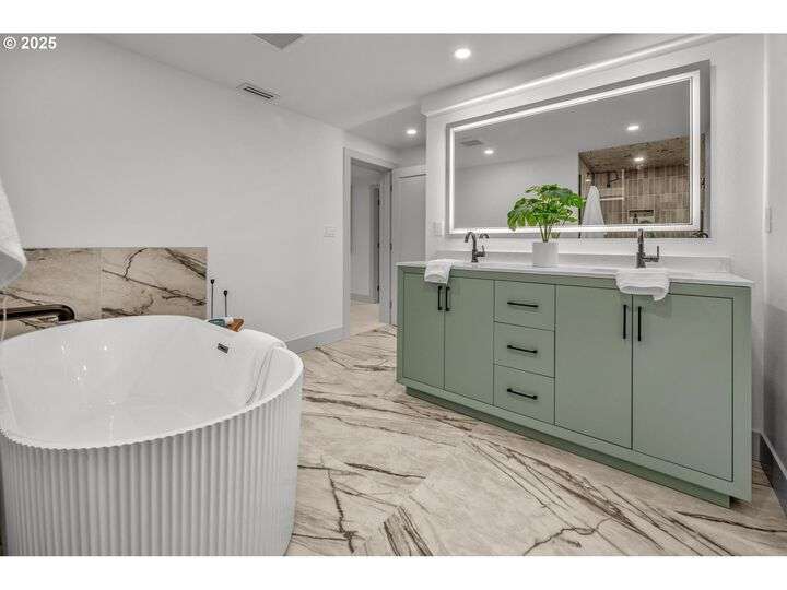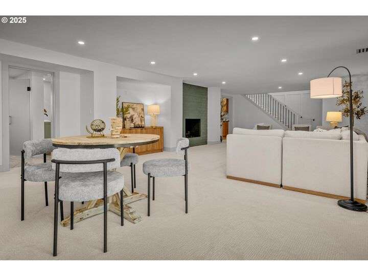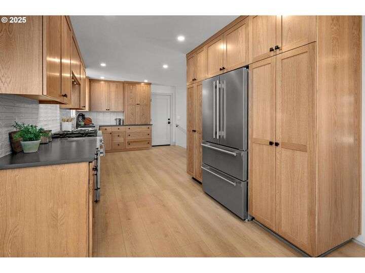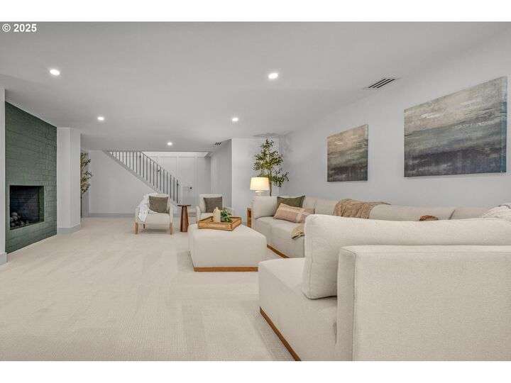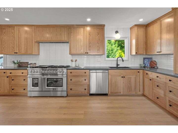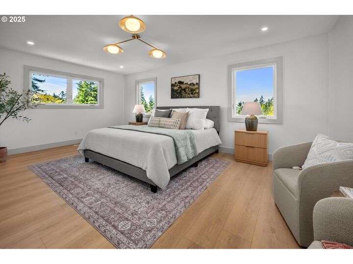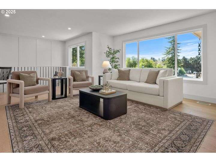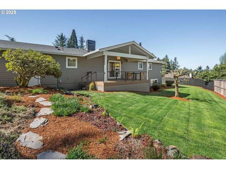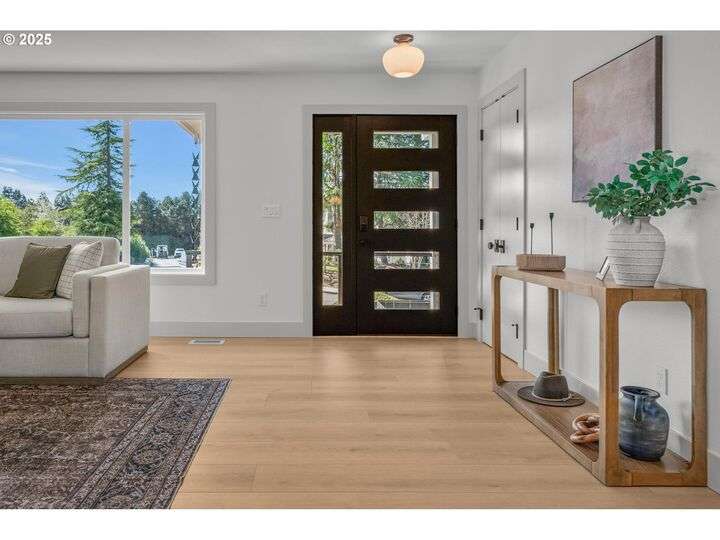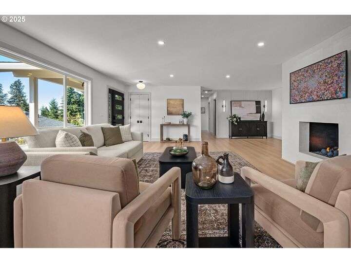 Tucked away on a quiet cul-de-sac in a highly sought-after neighborhood, this beautiful home has been remodeled down to the studs, blending modern luxury with peaceful surroundings. The open-concept main level features a sun-filled living room, plastered fireplace with cannonball insert, custom white oak cabinetry in the chef’s kitchen with an 8-burner stainless steel gas range, appliance garage and pantry. The luxurious primary suite offers convenient main-level living with attached generously sized bathroom and walk-in closet. Downstairs, enjoy a spacious family room with a second Cannonball gas fireplace, two oversized bedrooms, a full bath with soaking tub, and a large laundry room with ample storage. Step outside to beautifully landscaped grounds with new irrigation, updated decks, and fencing—perfect for entertaining or relaxing on 1/3 acre lot. Recent updates include a new roof, upgraded insulation, and central A/C for year-round comfort. With direct access to scenic trails and Marylhurst Heights Park, this move-in-ready home offers the ideal blend of lifestyle and location.