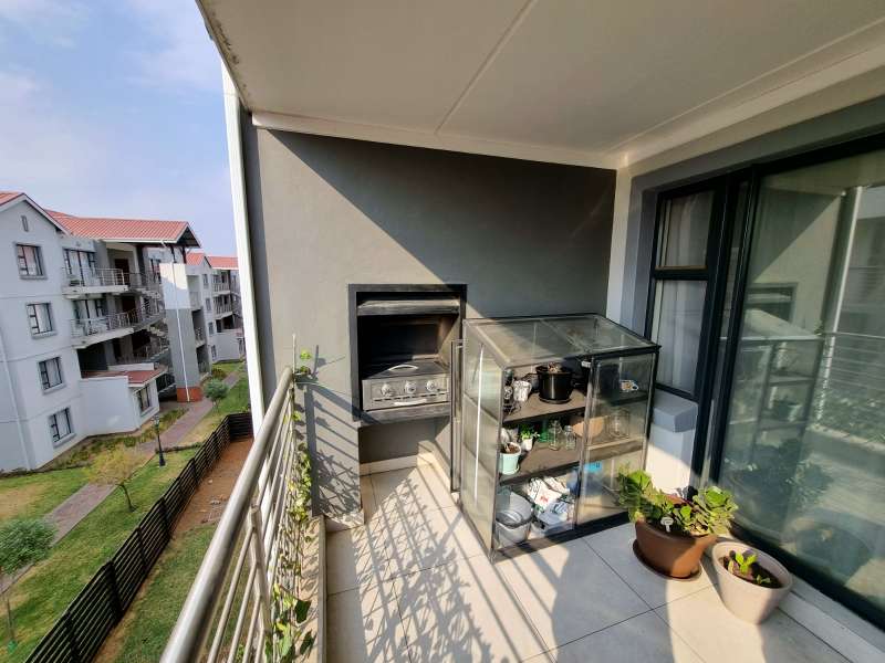 The BIG one bedroom apartment in Red Ivory Lane, Modderfontein . Open plan living , with kitchen finishes in white stone & Sahara Melamine cupboards . Kitchen appliances included.: DEFY washing machine, tumble dryer & fridge / freezer. Gas cooking , prepaid electricity. Fibre installed. Large, undercover patio with great views and privacy, with built in gas braai.Full bathroom, including bath. and shower. Complex features biometric and controlleld access. Pool, braai area and clubhouse In proximity to Flamingo Shopping Centre & Go Ape. Also, Greenstone Mall, Green Valley Shopping Centre, Stoneridge Mall , Greenstone Crescent & Modderfontein. Excellent access to N3 Highway and well as the N12 to OR Tambo Airport. Significant business and commercial estates in the area including: Longmeadow, Linbro Park & Meadowview, as well as the forthcoming Modderfontein developments. Schools in the area include: Edenglen Primary, Hurlyvale Primary, Edenglen High, Edenvale High, Curro School & Founders Hill College. Other significant nearby landmarks are the Modderfontein Golf Course, Modderfontein Nature Reserve & Gautrain bus stops.