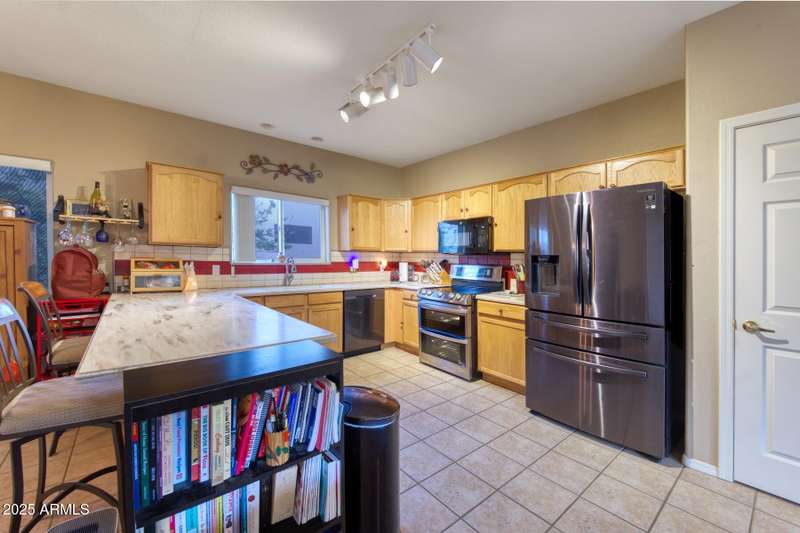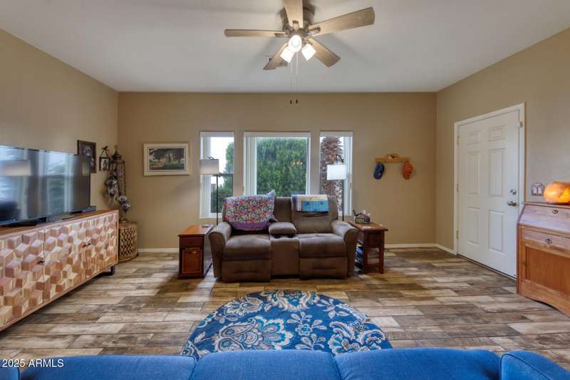 Come see this charming 2BD/2BA, 1,408 sq. ft. home with office/den offering thoughtful updates and move-in ready comfort. Enjoy a spacious kitchen with Corian counters, a double oven and stainless appliance suite. Open living with kitchen, dining and living area, updated tile floors and baths, plus newer HVAC (2024) and routinely maintenanced flat roof. This premium lot backs to a green space, offering privacy, desert views, and a covered patio for outdoor living. Block wall fencing surrounds the yard, while the 2-car garage provides convenience. Located in Sierra Vista's gated 55+ Vista View Resort, you'll love the clubhouse, heated pool/spa, pickleball, trails, dog park, and active social calendar. Monthly resort fee, no HOA. You own your home, but no land ownership = no property taxes