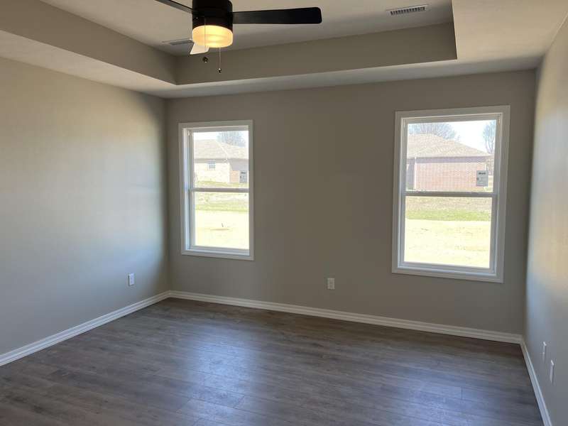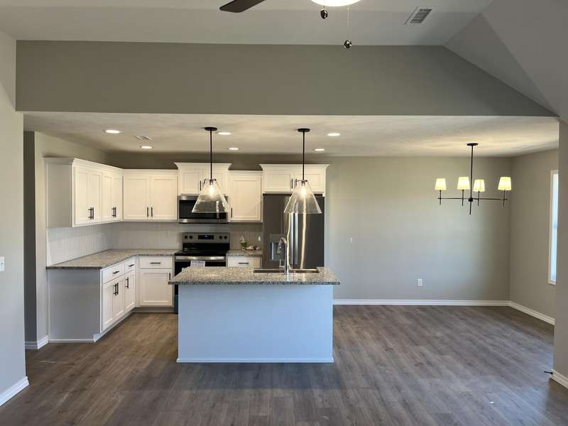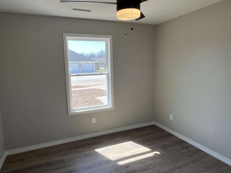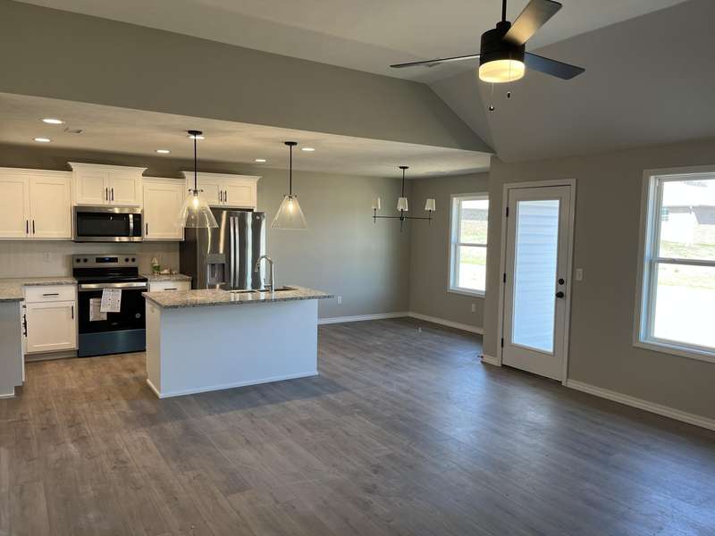 Nearly-new construction (finished May 2025!). Currently a RENTAL with excellent tenants. Willard Schools!! Don't miss out on this beautiful home! 1371 sq ft plan, 3 bed, 2 bath, 3 car garage Environmentally friendly, Energy Star Certified Home! Full irrigation, sod front yard! Beautifully painted white cabinets. LVT flooring throughout the entire house. Granite countertops in kitchen overlooking an open floorplan. Black hardware and lighting. Interior paint color is Turner Holland Gray. Buyer to due diligence on schools. Some photos are of different house with similar floorplan. Actual photos are toward the end.